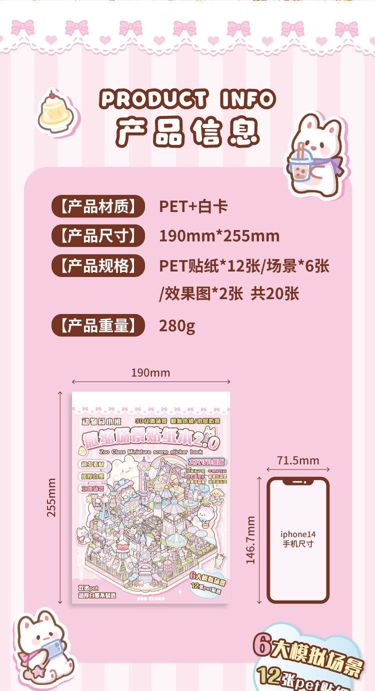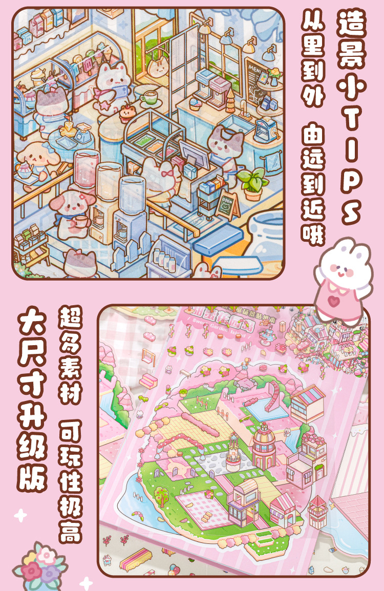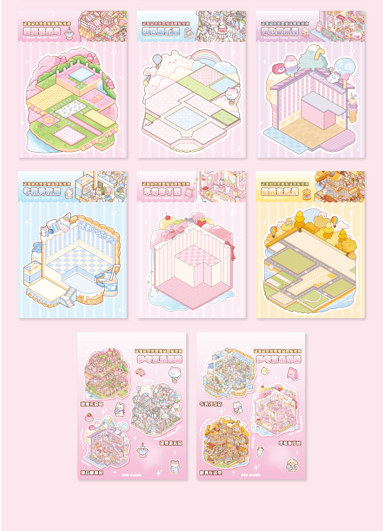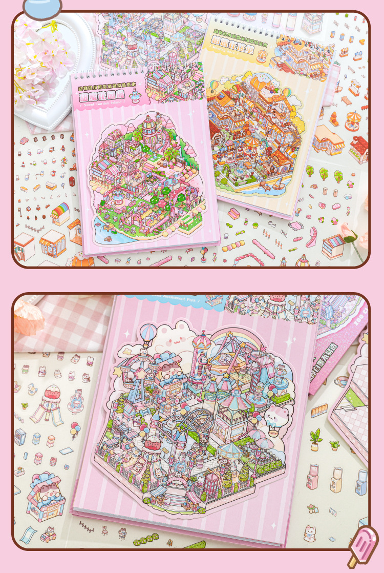 Escena en miniatura de rastro de papel 2.0 libro de pegatinas zoológico clase pequeña 3d casa tridimensional libro de pegatinas de decoración de paisaje de bricolaje