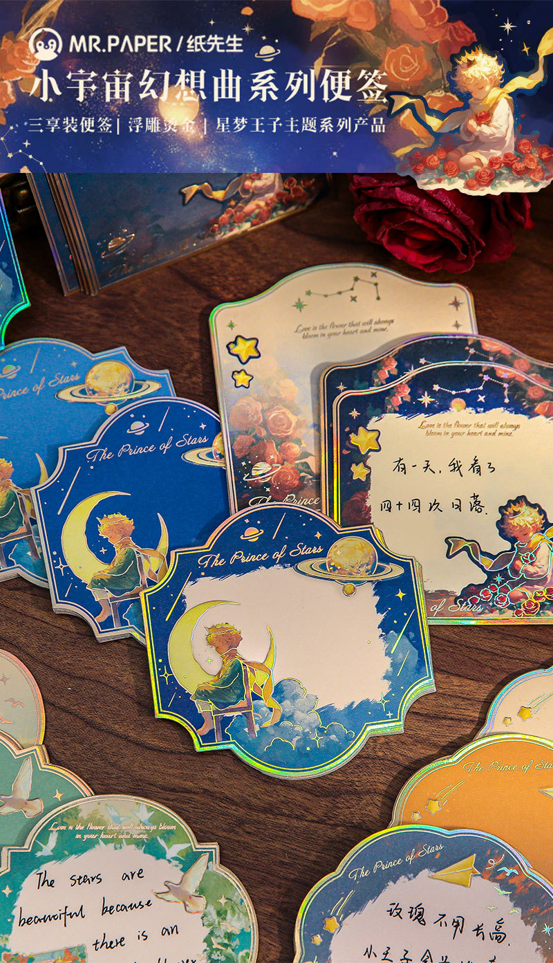 Papel Sr. Tres disfrutar de relieve estampado nota serie de fantasía del pequeño universo de los estudiantes de la nota de forma especial
