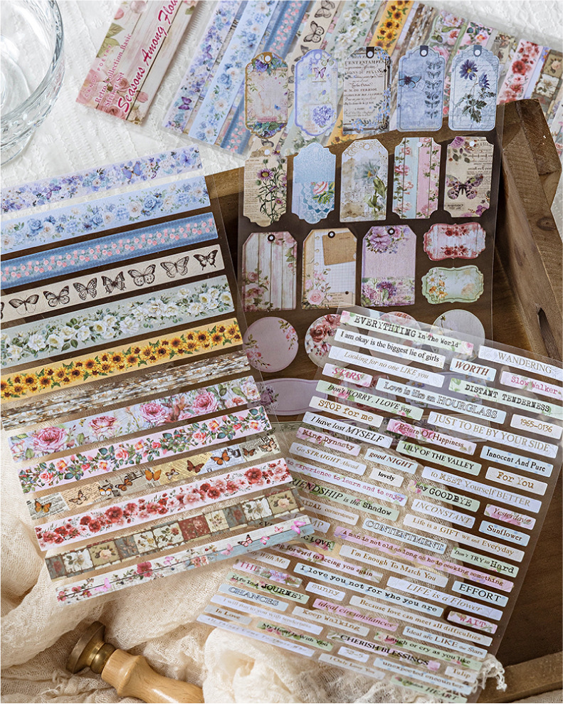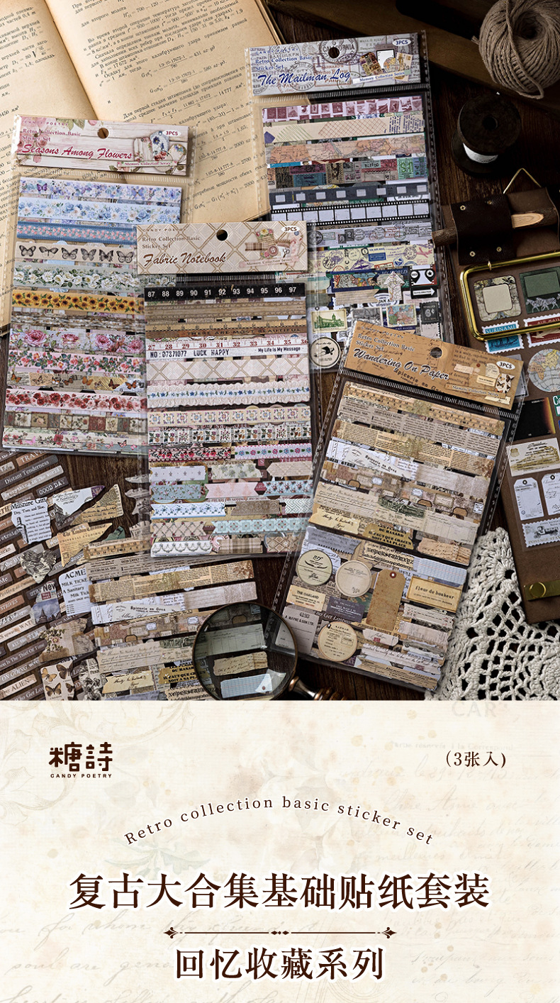 Colección de pegatinas de colección grande de papel de tela de poesía de azúcar, serie de colección de recuerdos, pegatinas de material de base de cuenta manual de ins retro