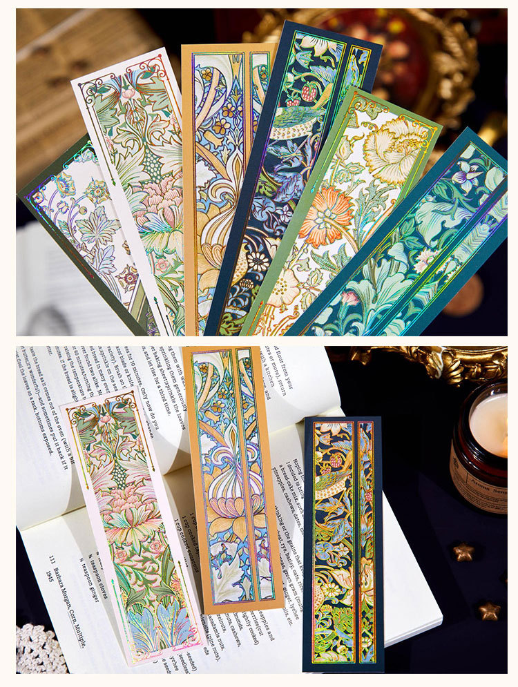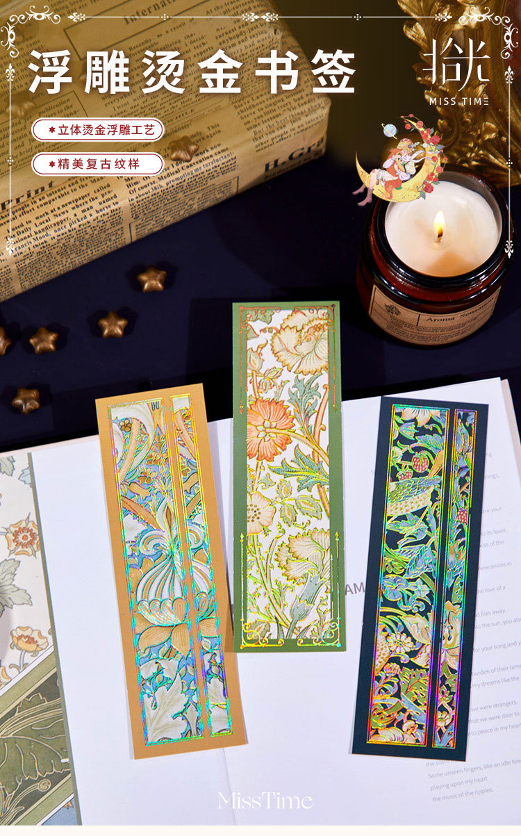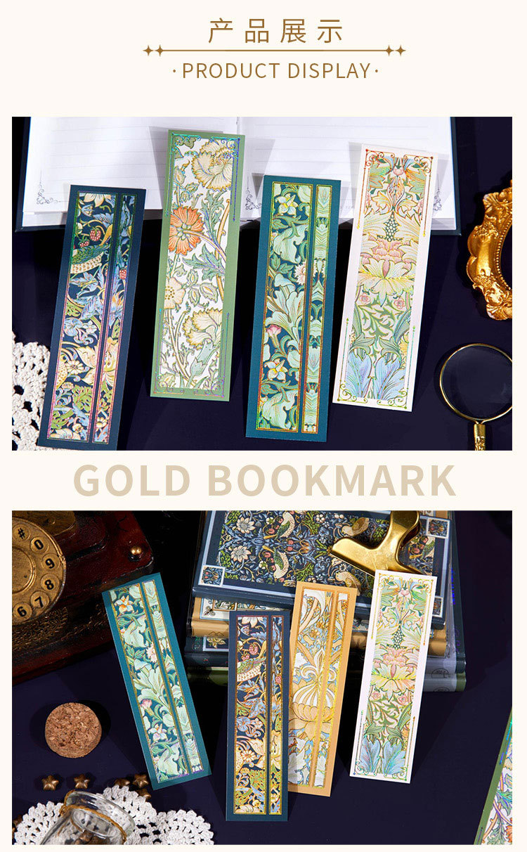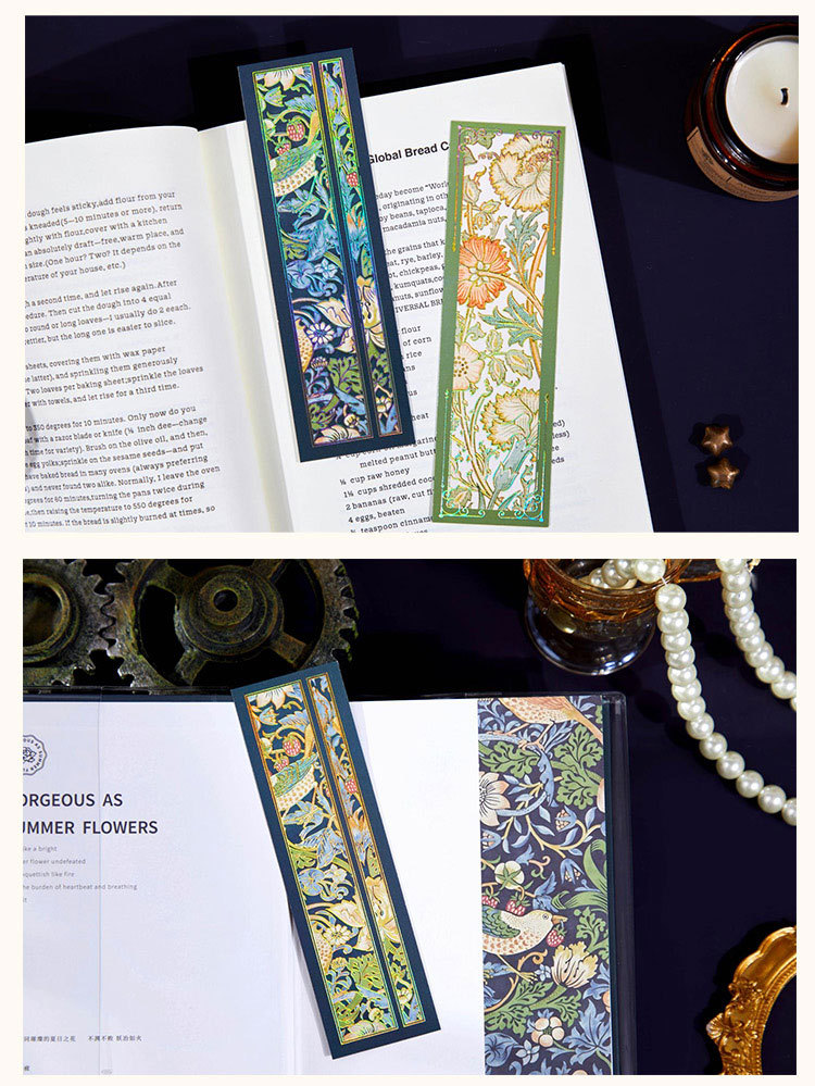 Recoger el marcador de estampado en caliente en relieve Strawberry Thief Series Patrón retro Leyendo para estudiantes Marcador de material