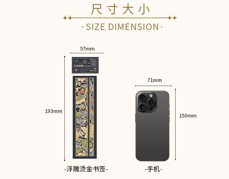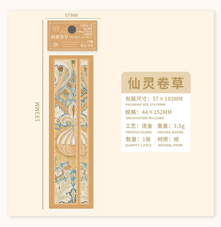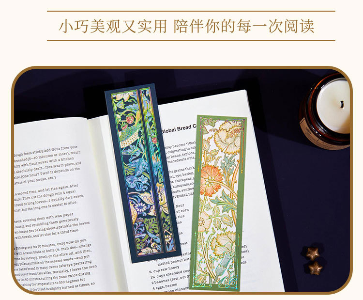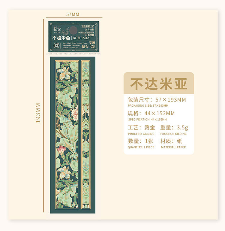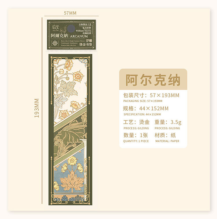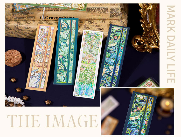 Recoger el marcador de estampado en caliente en relieve Strawberry Thief Series Patrón retro Leyendo para estudiantes Marcador de material