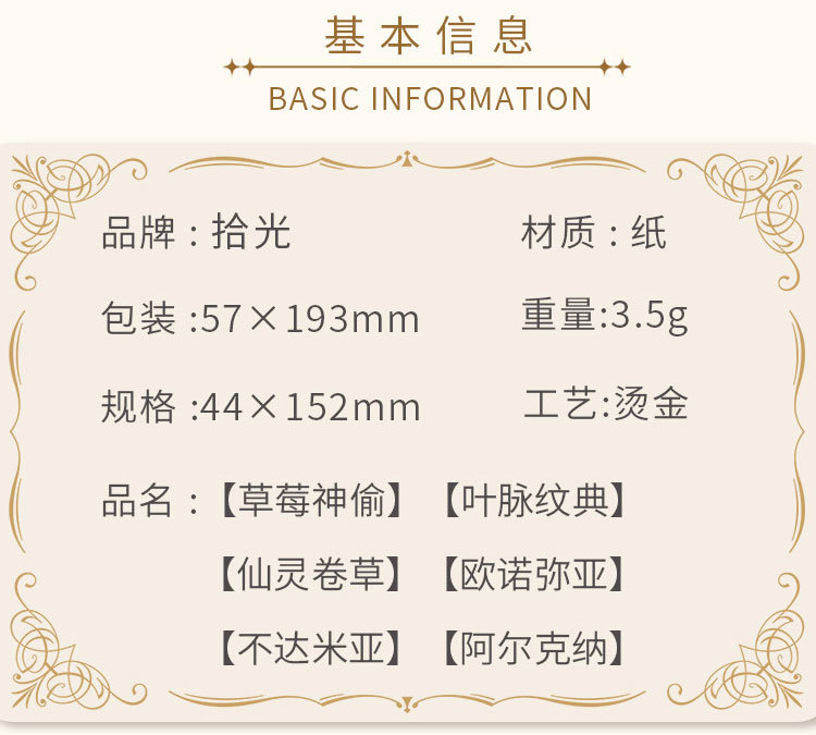 | Colores | Ladrón de fresas,Patrón de venas,Hierba de hadas,Onohia,No.,Alkner |