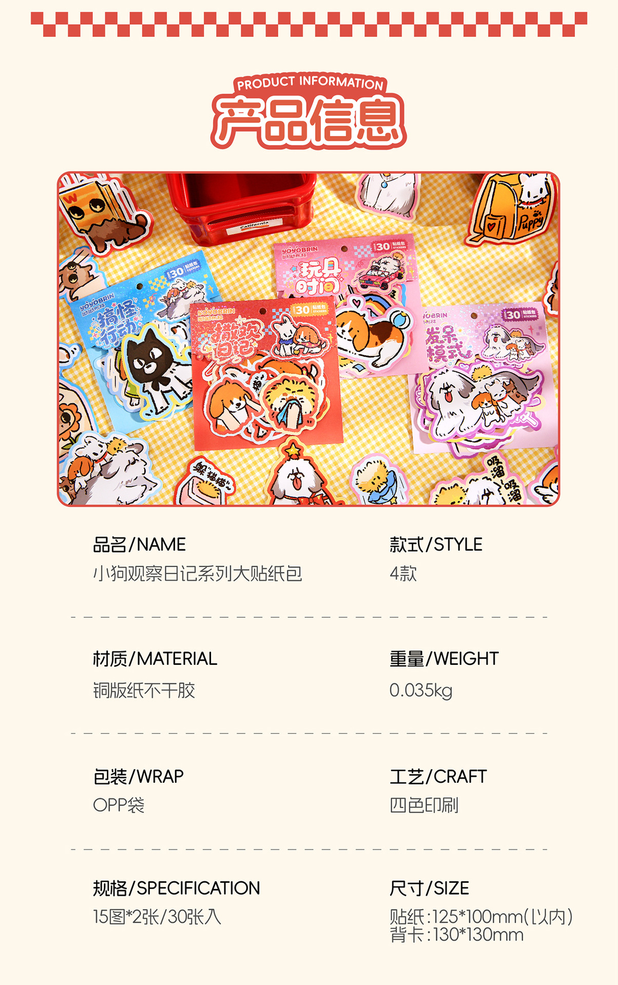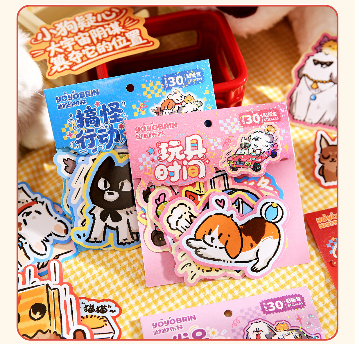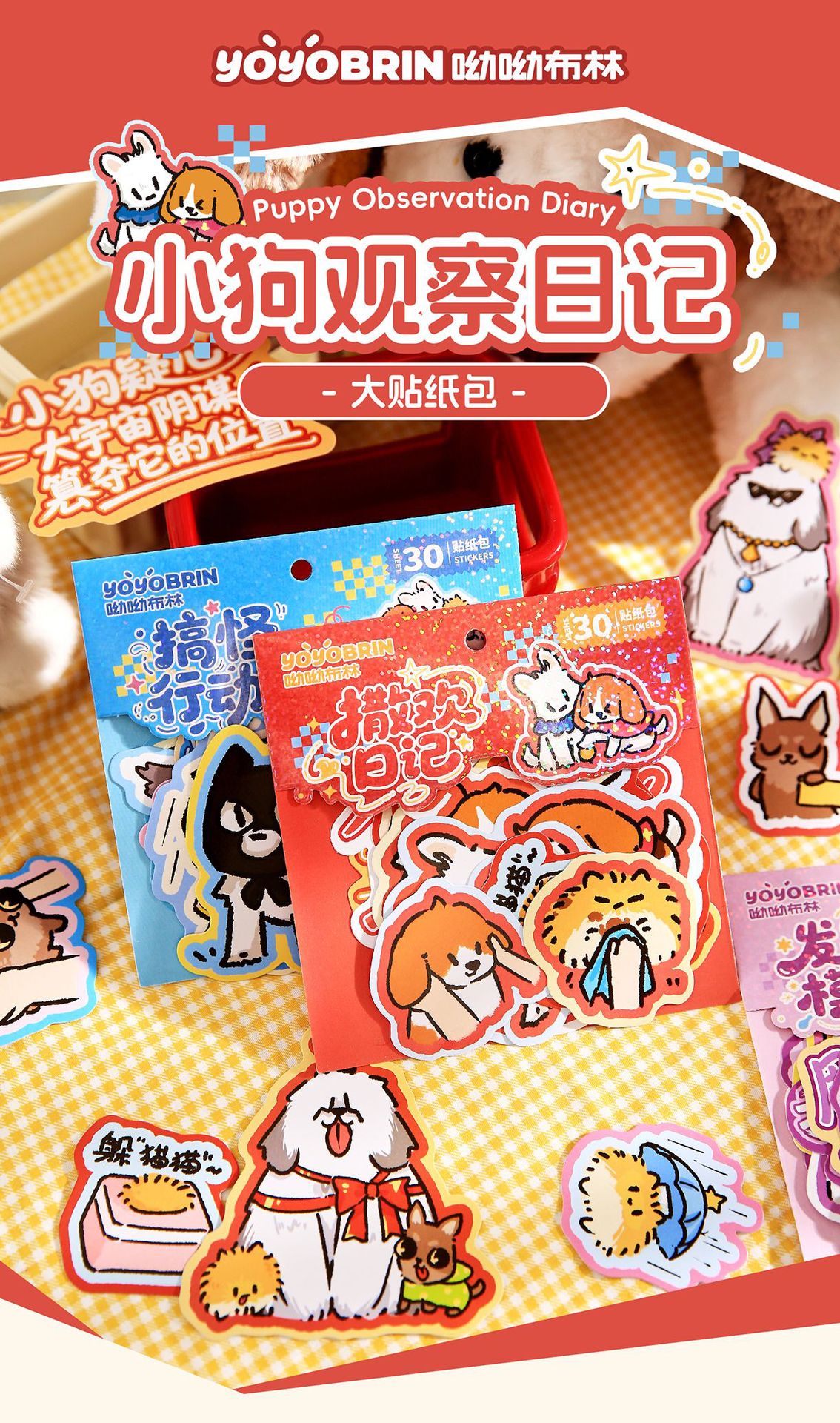 Yoyo Brin Big Sticker Pack Diario de observación de cachorros Paquete de emoticonos de cachorros divertidos Pegatinas de texto de bendición diaria