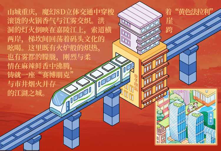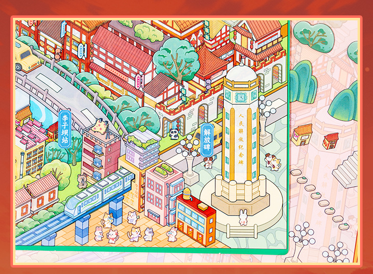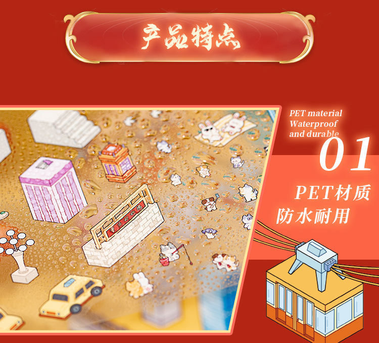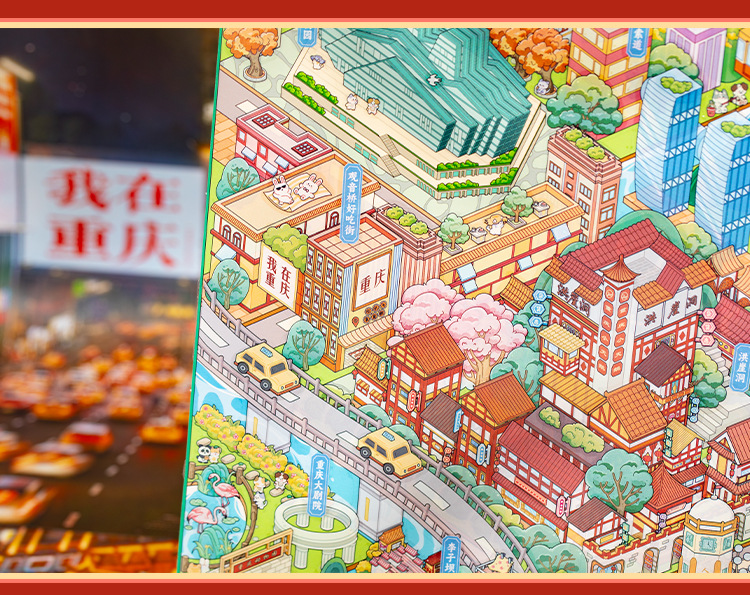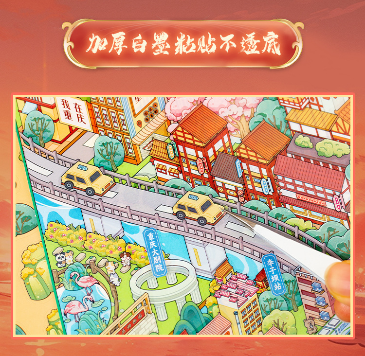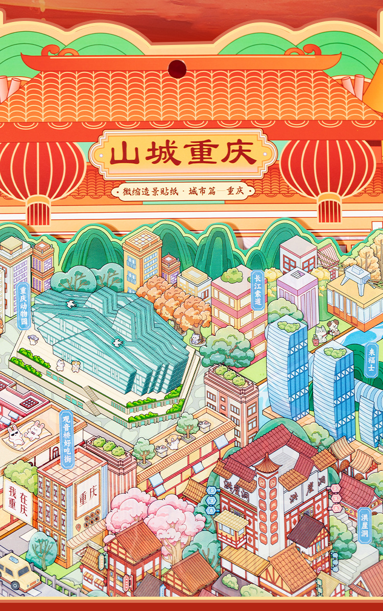 Etiqueta engomada de paisajismo grande en miniatura de Yu Xian Capítulo de la ciudad 6.0 Chongqing Estéreo 3D Cabaña apilada para niños Etiqueta engomada de juguete