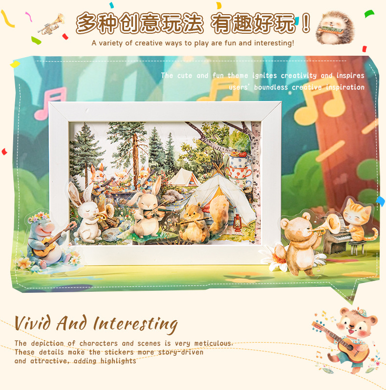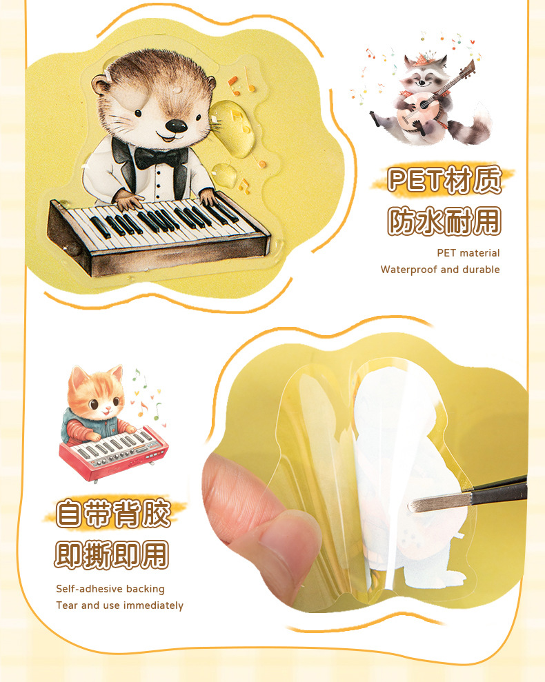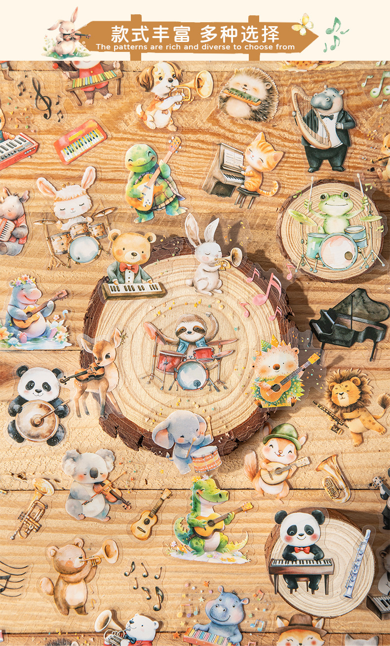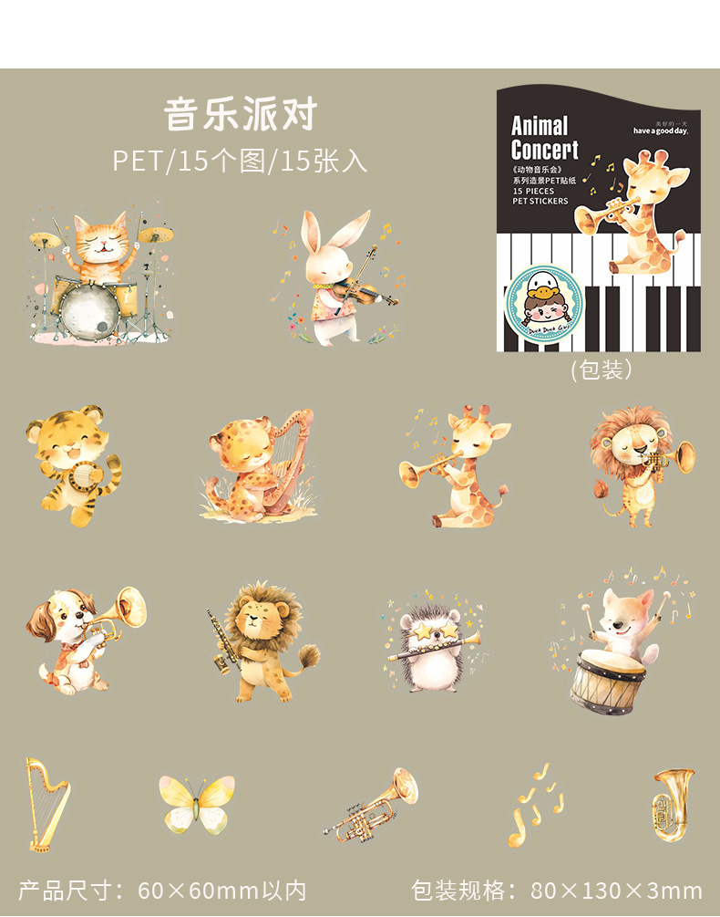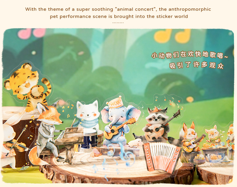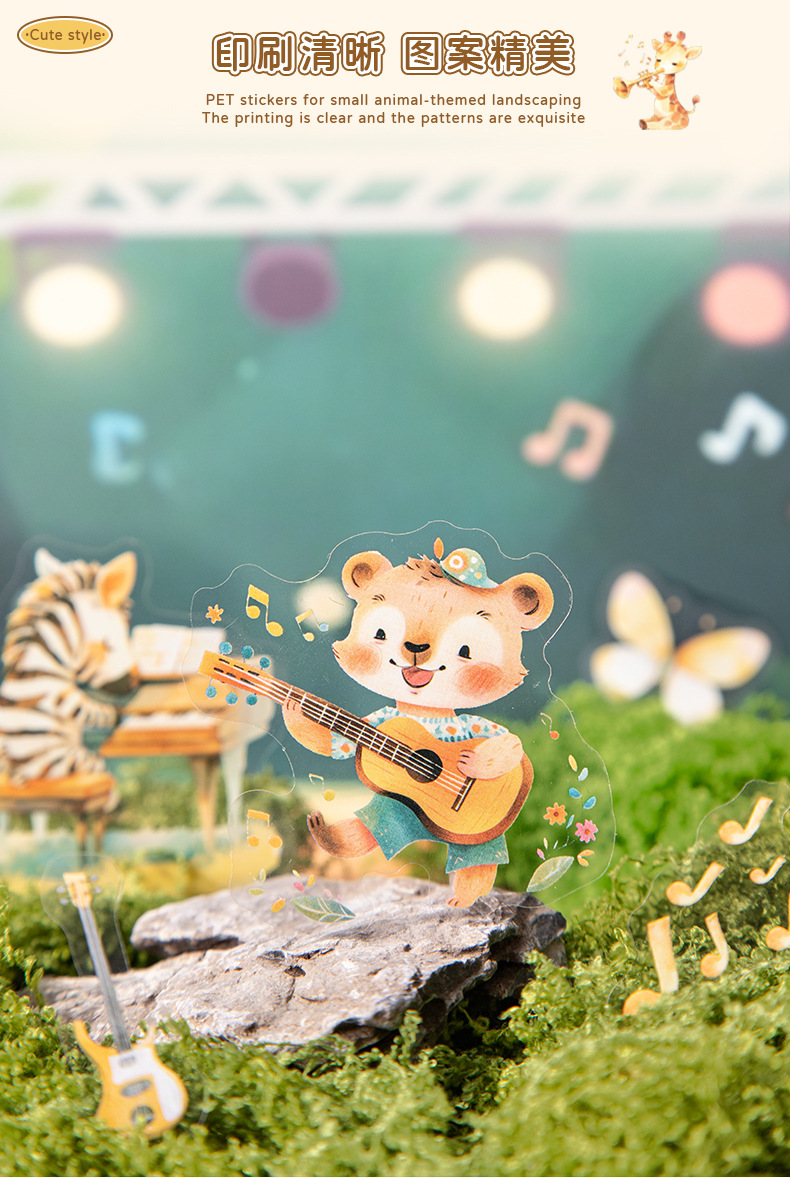 Hermoso día serie de conciertos de animales paisajismo PET pegatinas 6 lindo material de decoración de bricolaje base