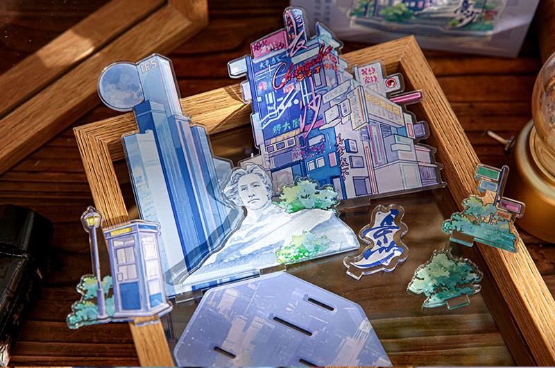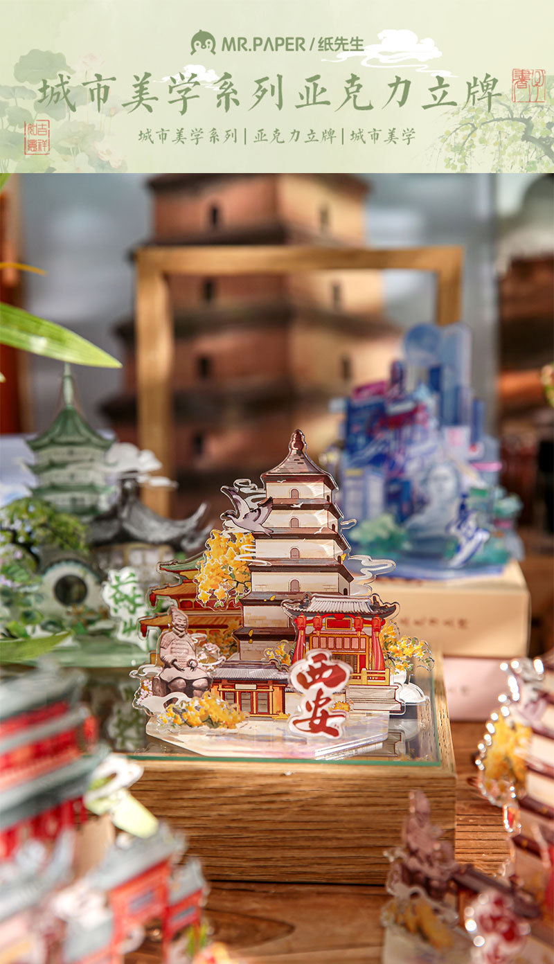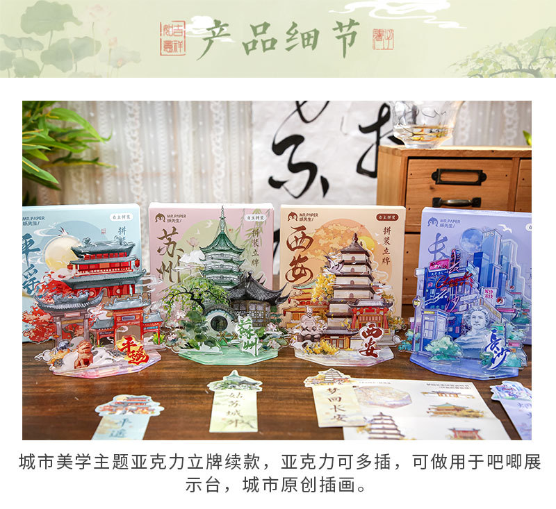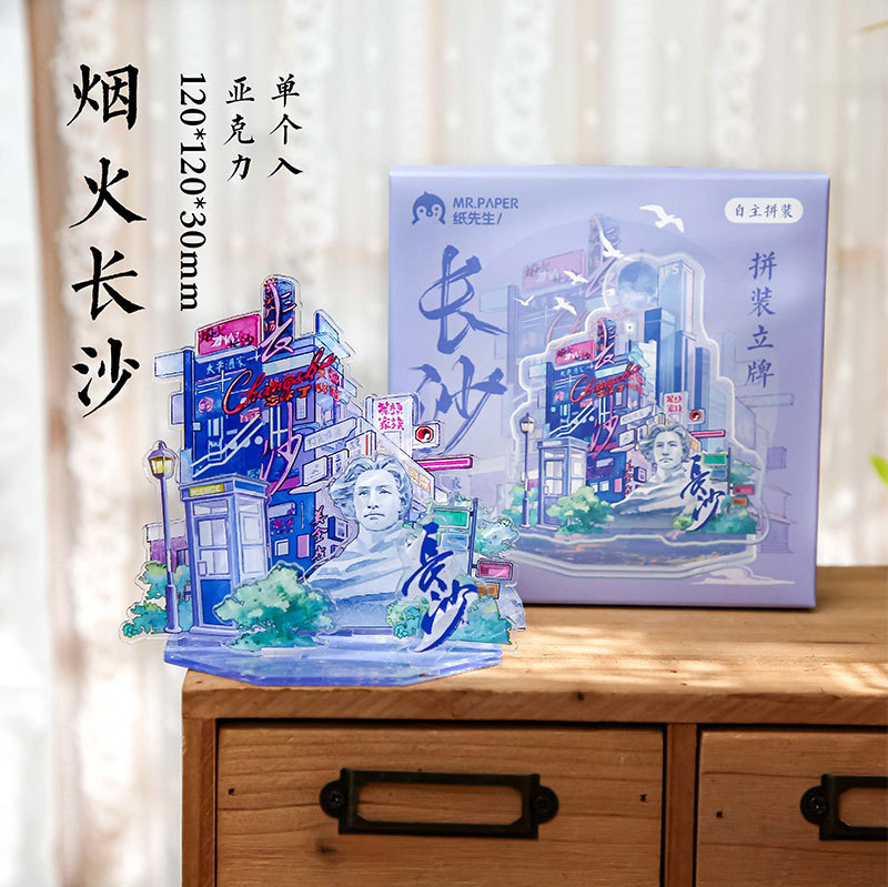 Sr. papel acrílico insertar tarjetas estéticas de la ciudad segunda serie de bombas de escritorio acrílico decoración de tarjetas