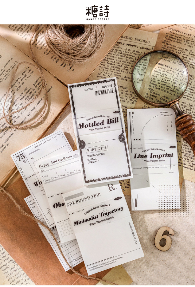 Poesía de azúcar papel kraft libro de notas de la serie de teatro de años retrógrado mensaje simple papel de notas de cuentas de mano