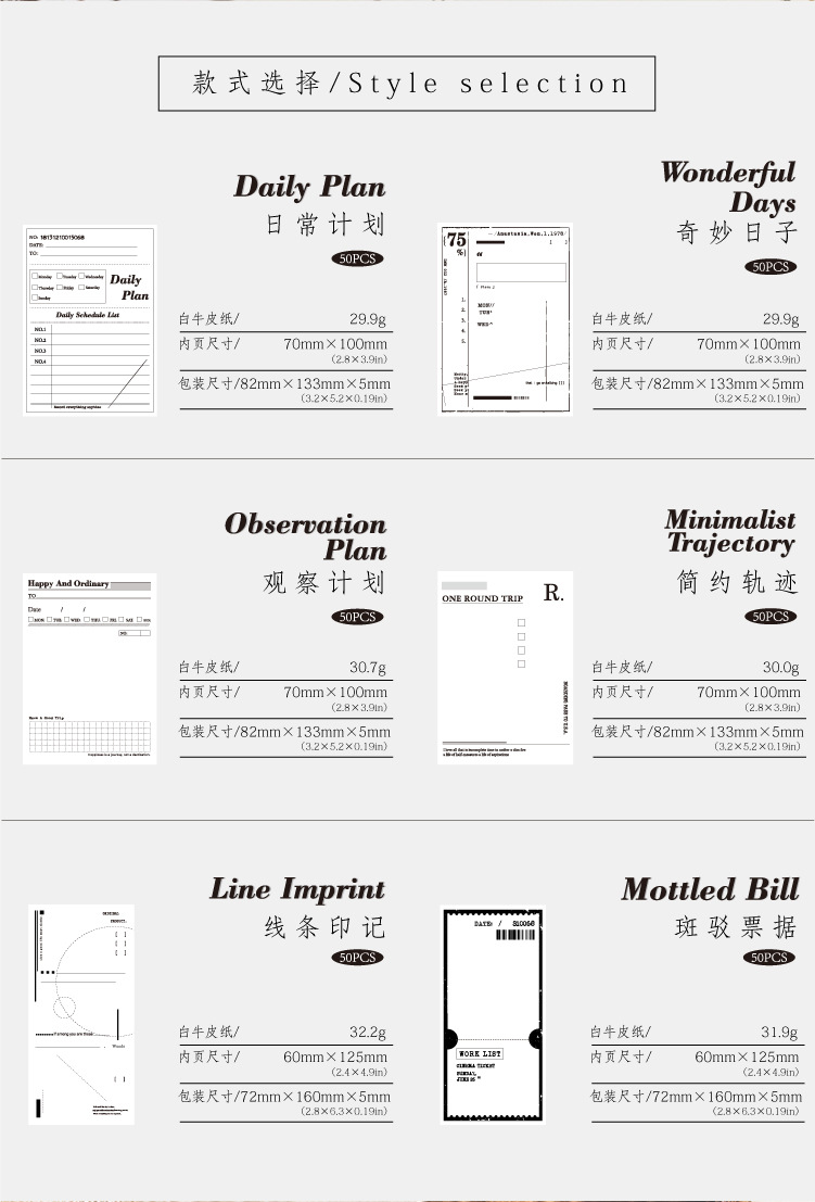 | Color de la portada | Planes diarios, días maravillosos, planes de observación, marcas de líneas, billetes moteados, trayectorias simples |