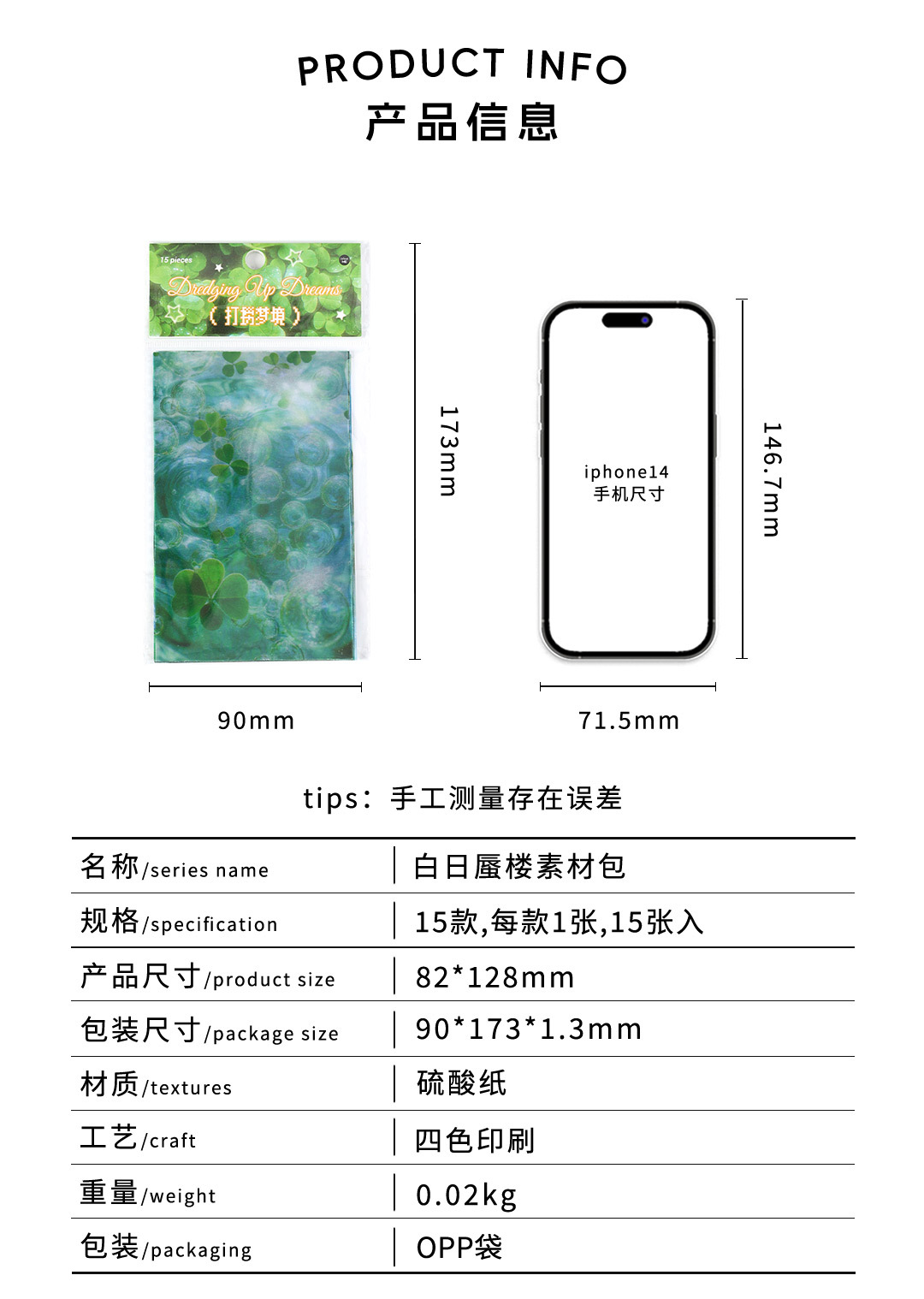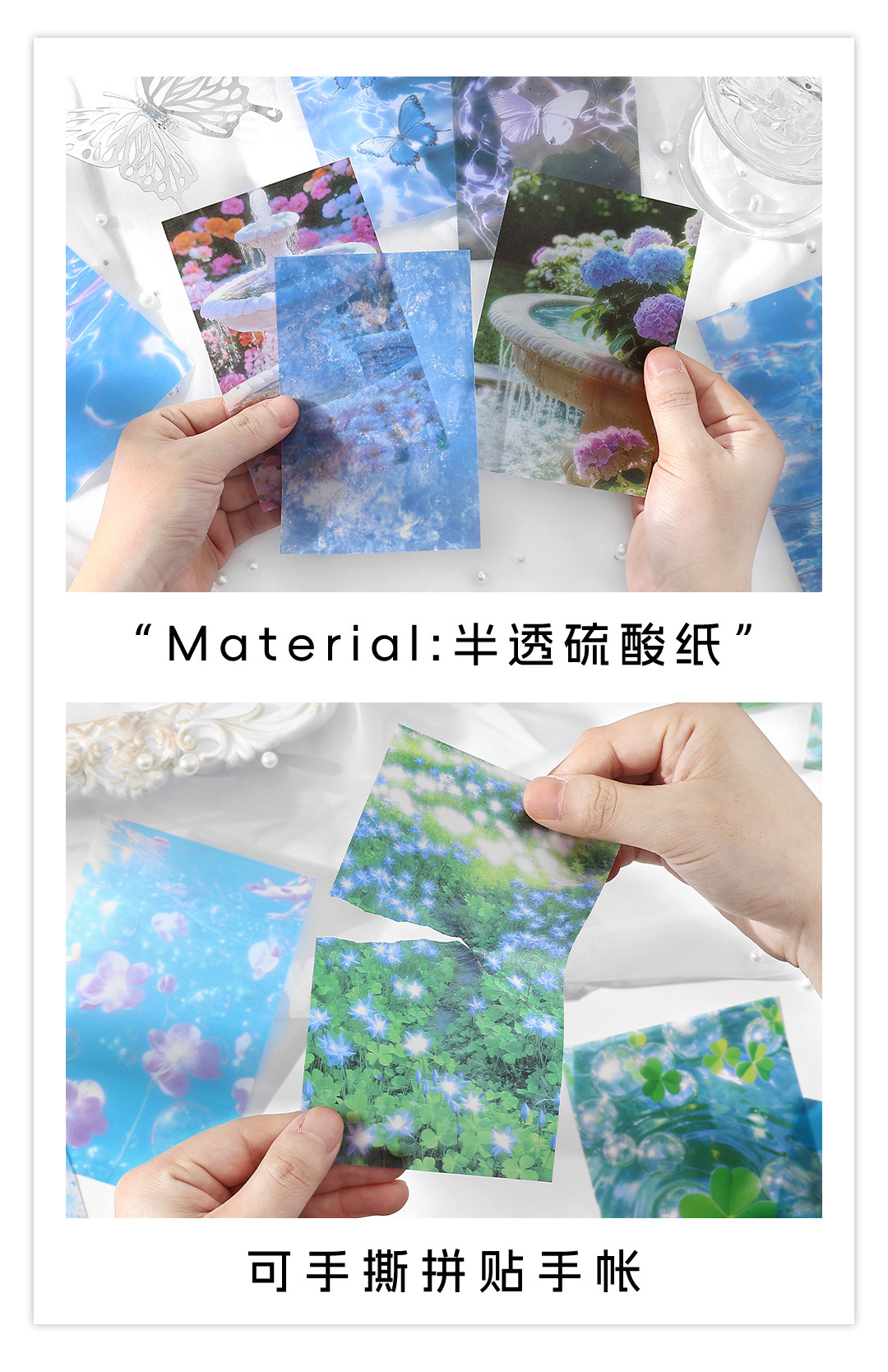 Infeel.Me Paquete de material de papel de sulfato Mirage blanco Tema natural Caja del teléfono móvil Decoración Cuenta de mano Material de bricolaje