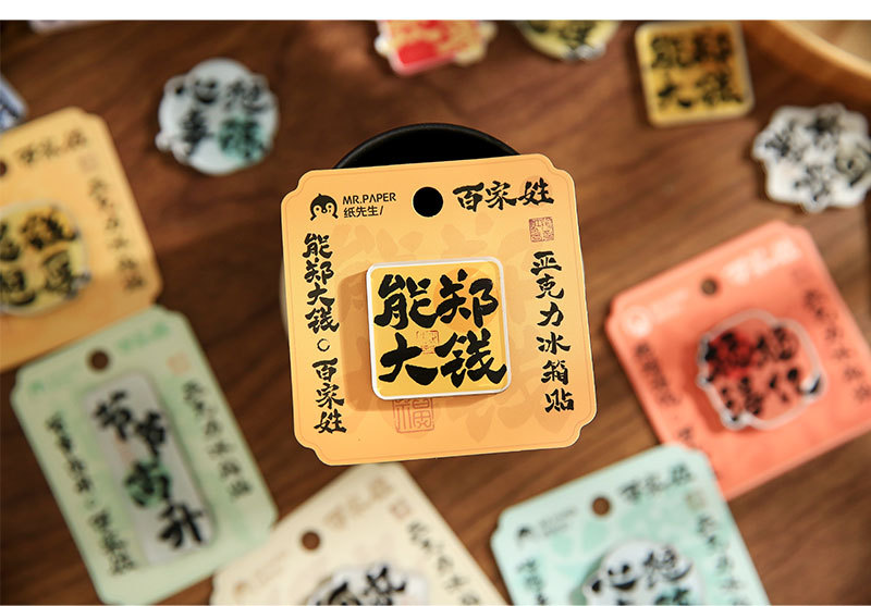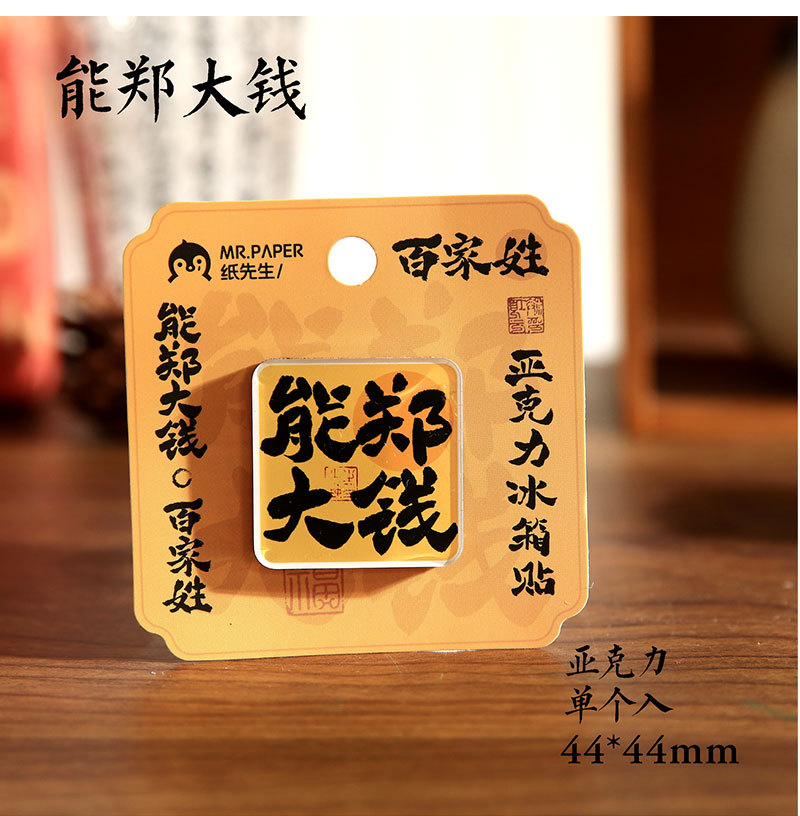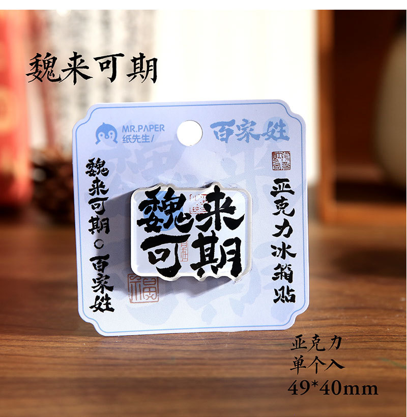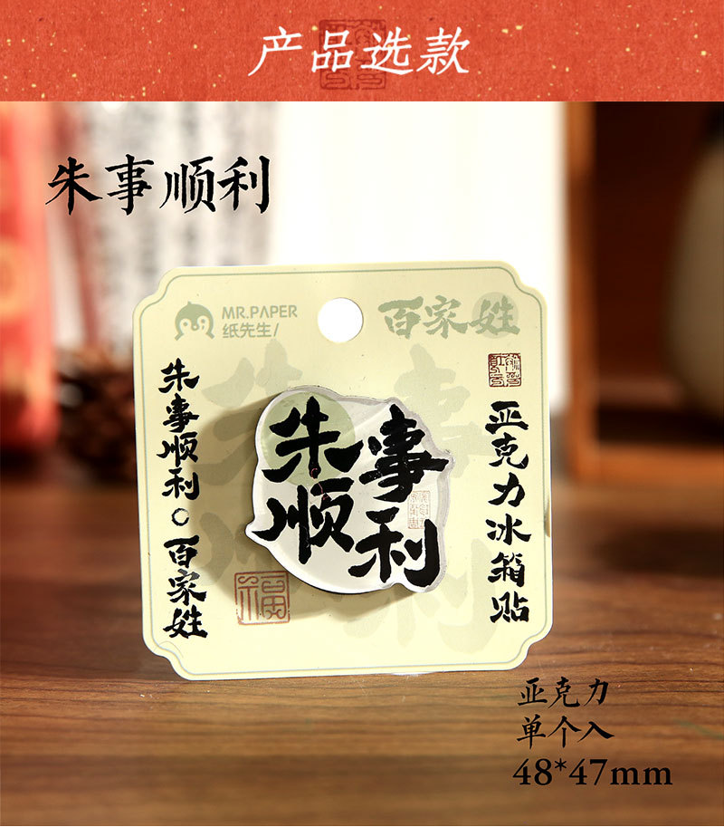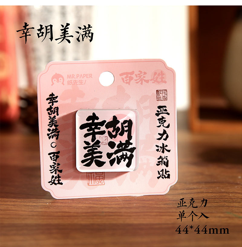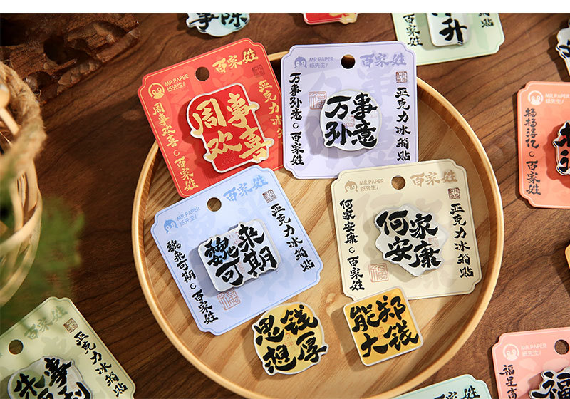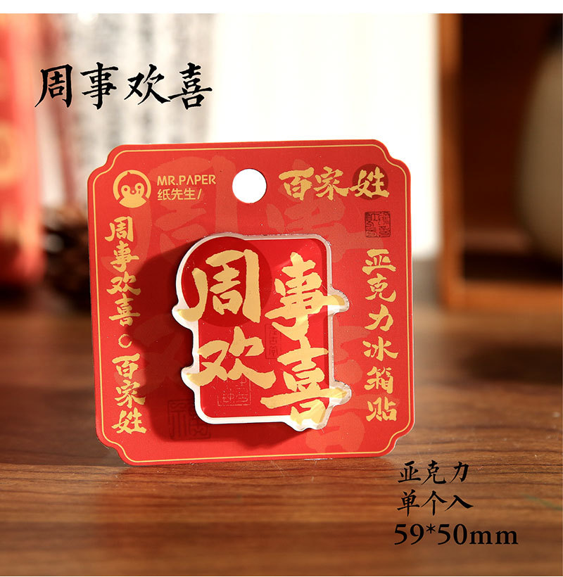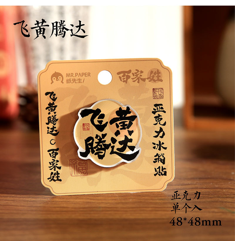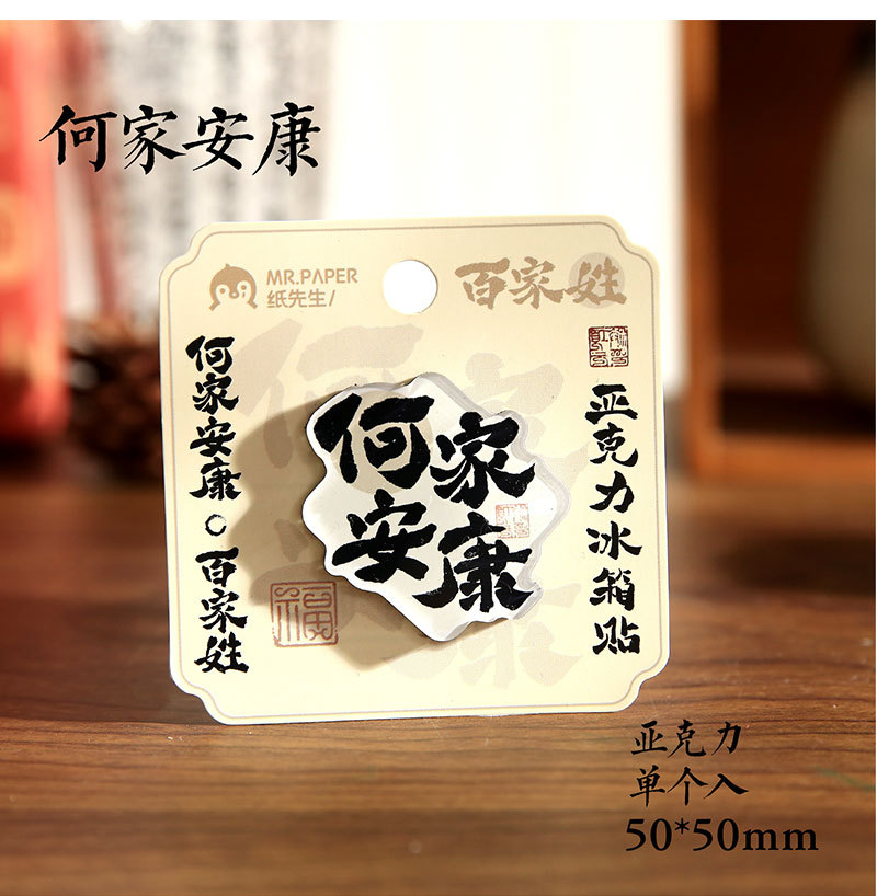 Sr. Paper Estilo nacional Cien apellidos Palabras de bendición Pegatinas para refrigerador Serie de apellidos Cien pegatinas decorativas para refrigeradores magnéticos de forma especial