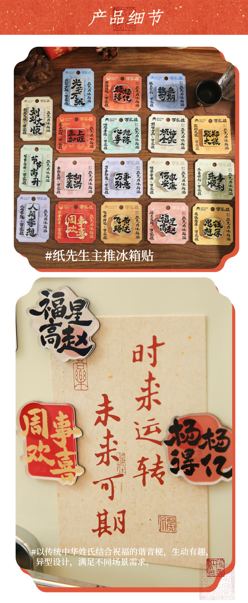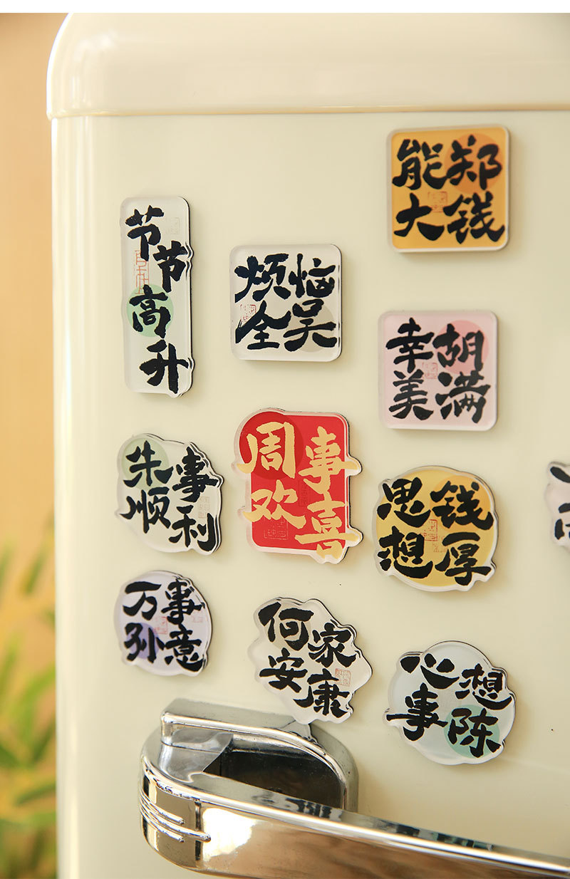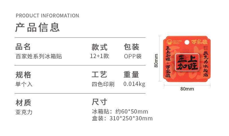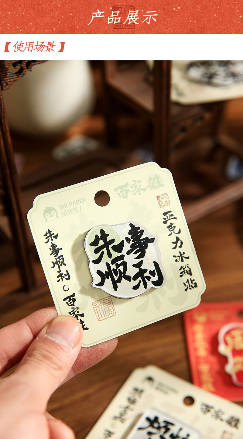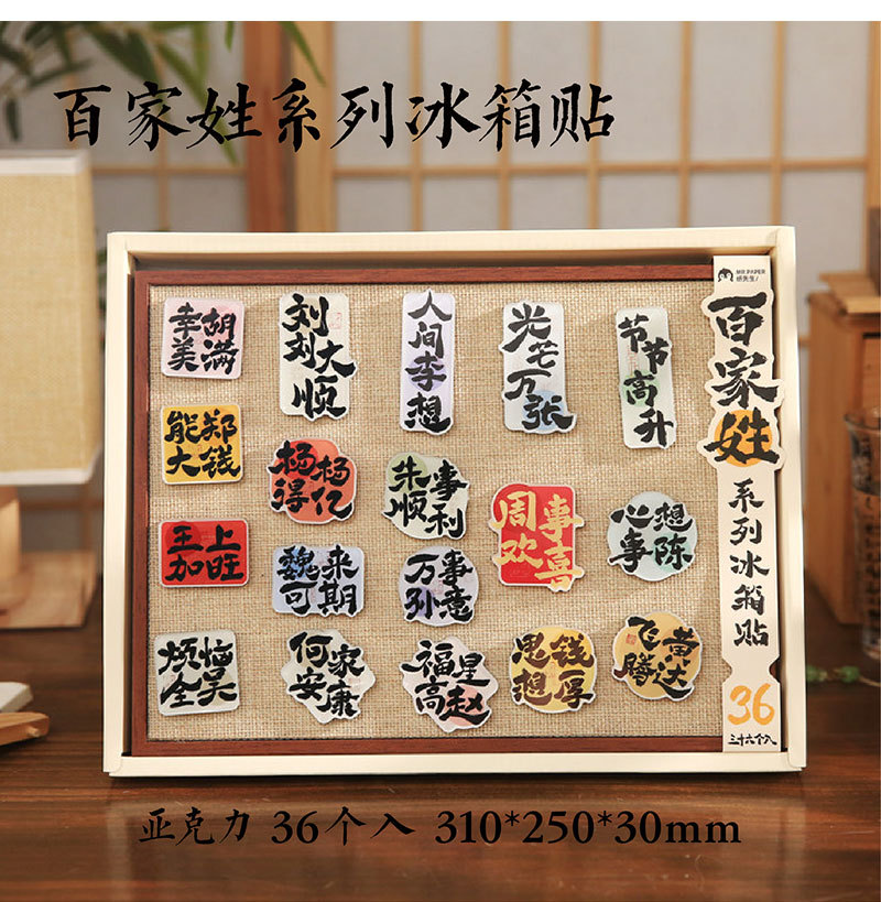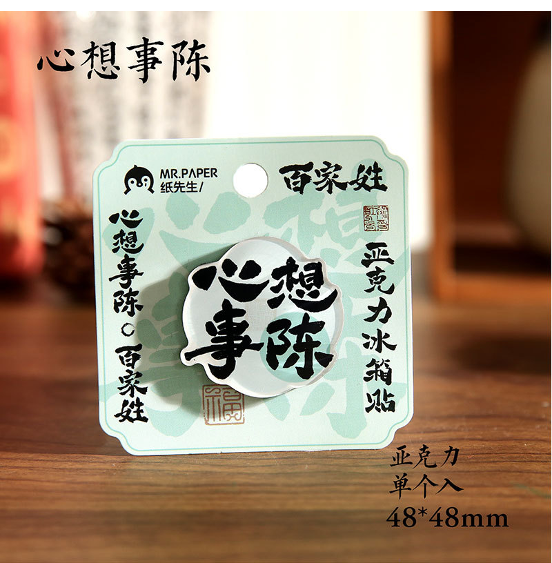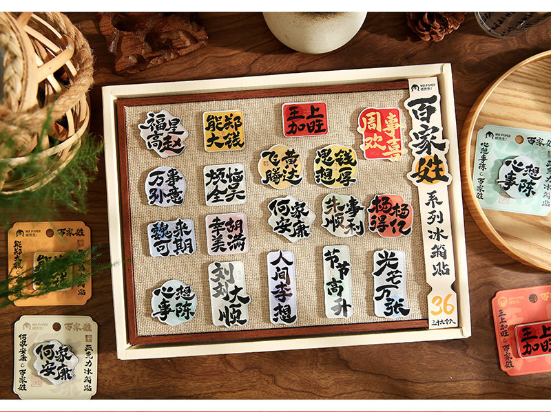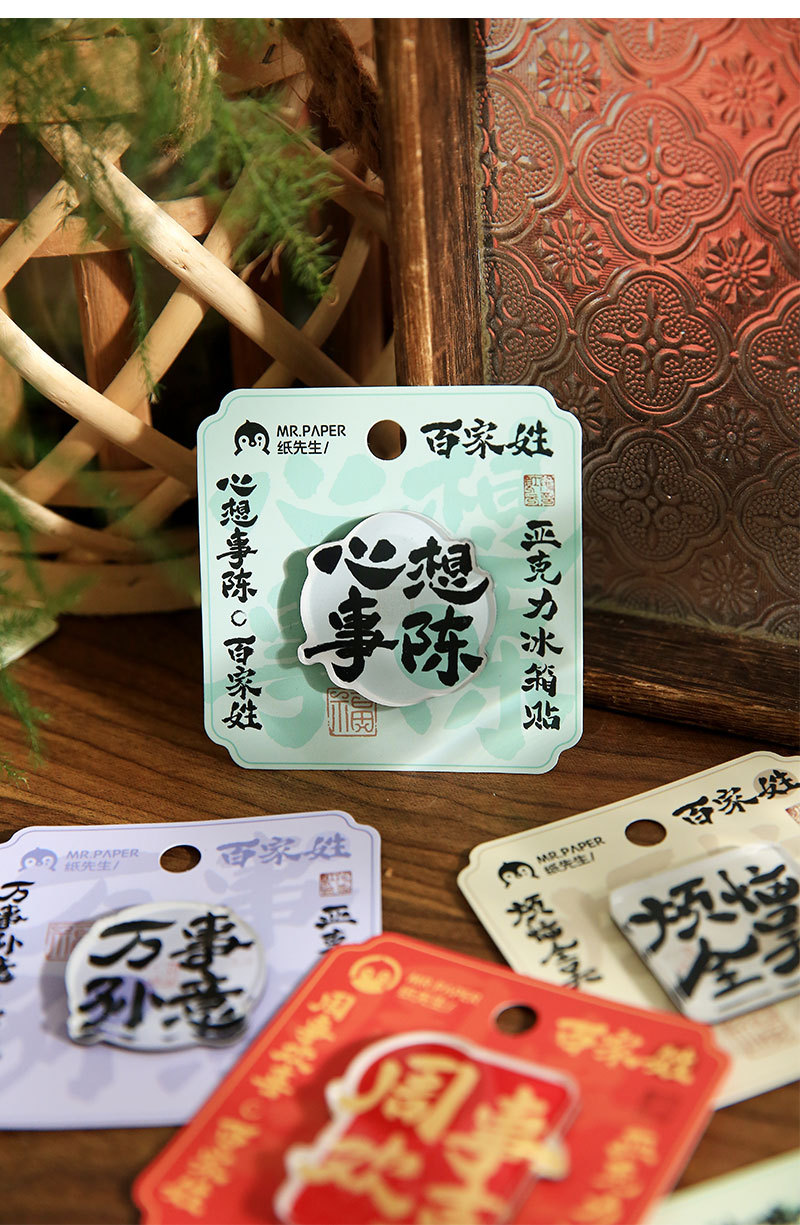 Sr. Paper Estilo nacional Cien apellidos Palabras de bendición Pegatinas para refrigerador Serie de apellidos Cien pegatinas decorativas para refrigeradores magnéticos de forma especial