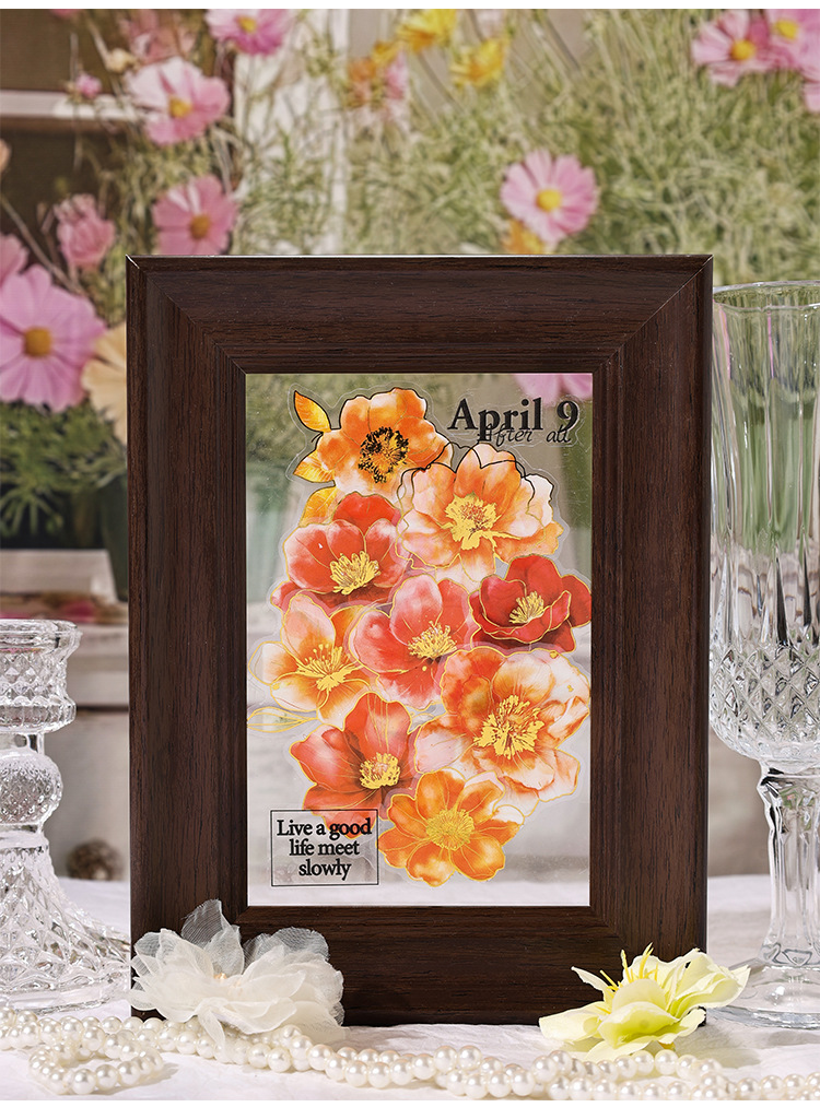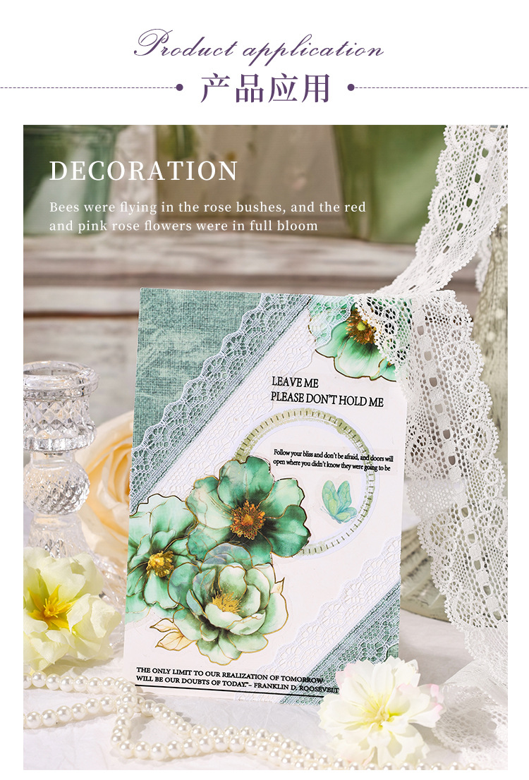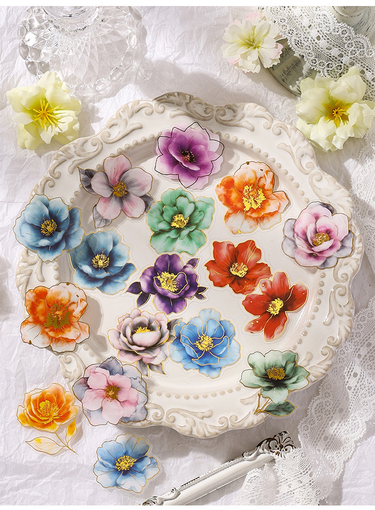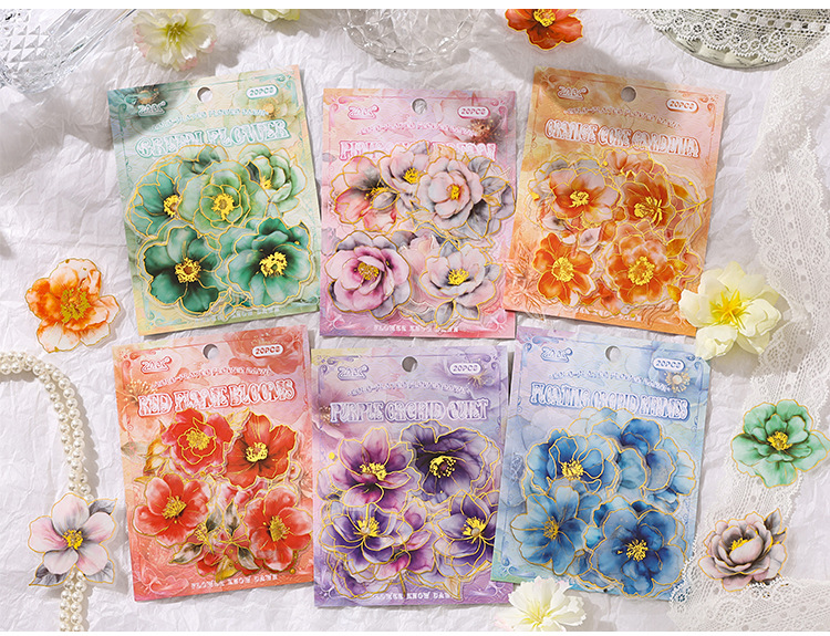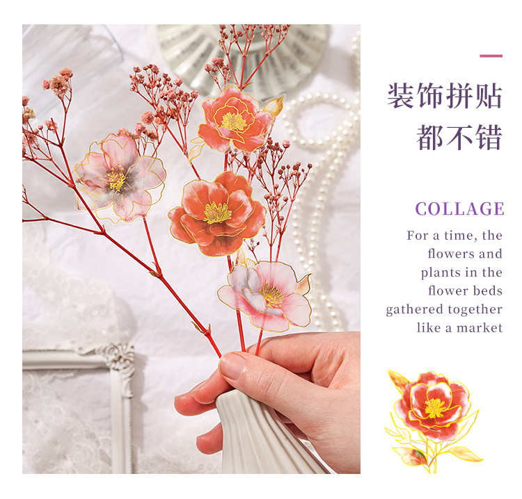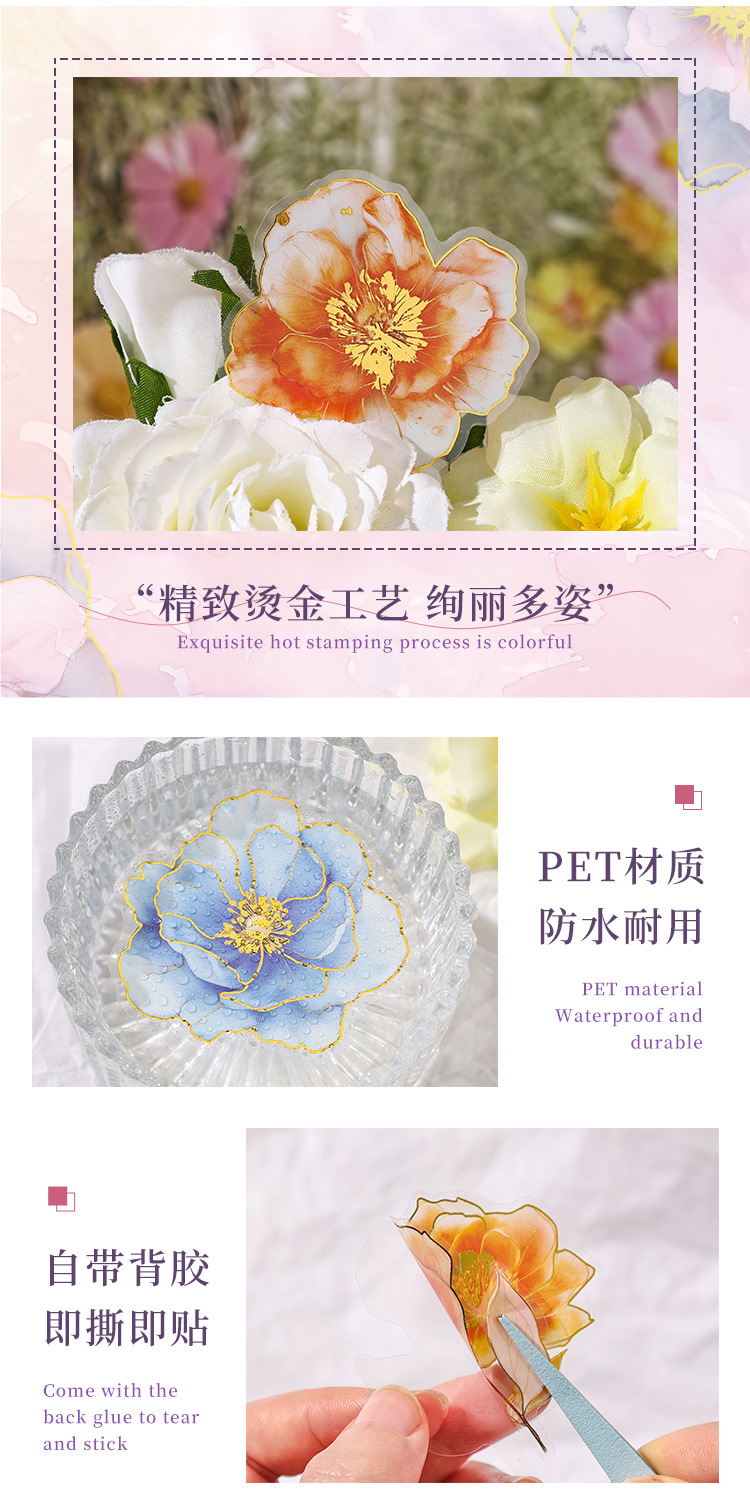 Yue Zhen retro bolsas de pegatinas de flores de viento, serie de pegatinas de película de corte de decoración de la mano de estampado de oro