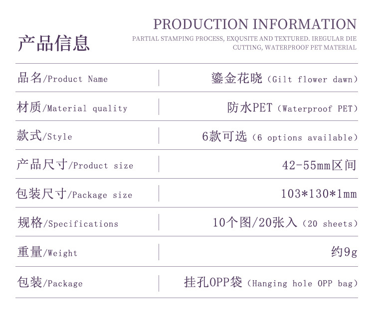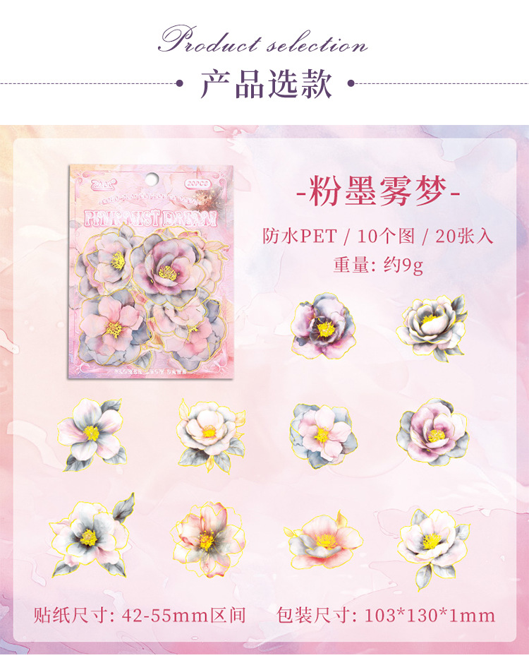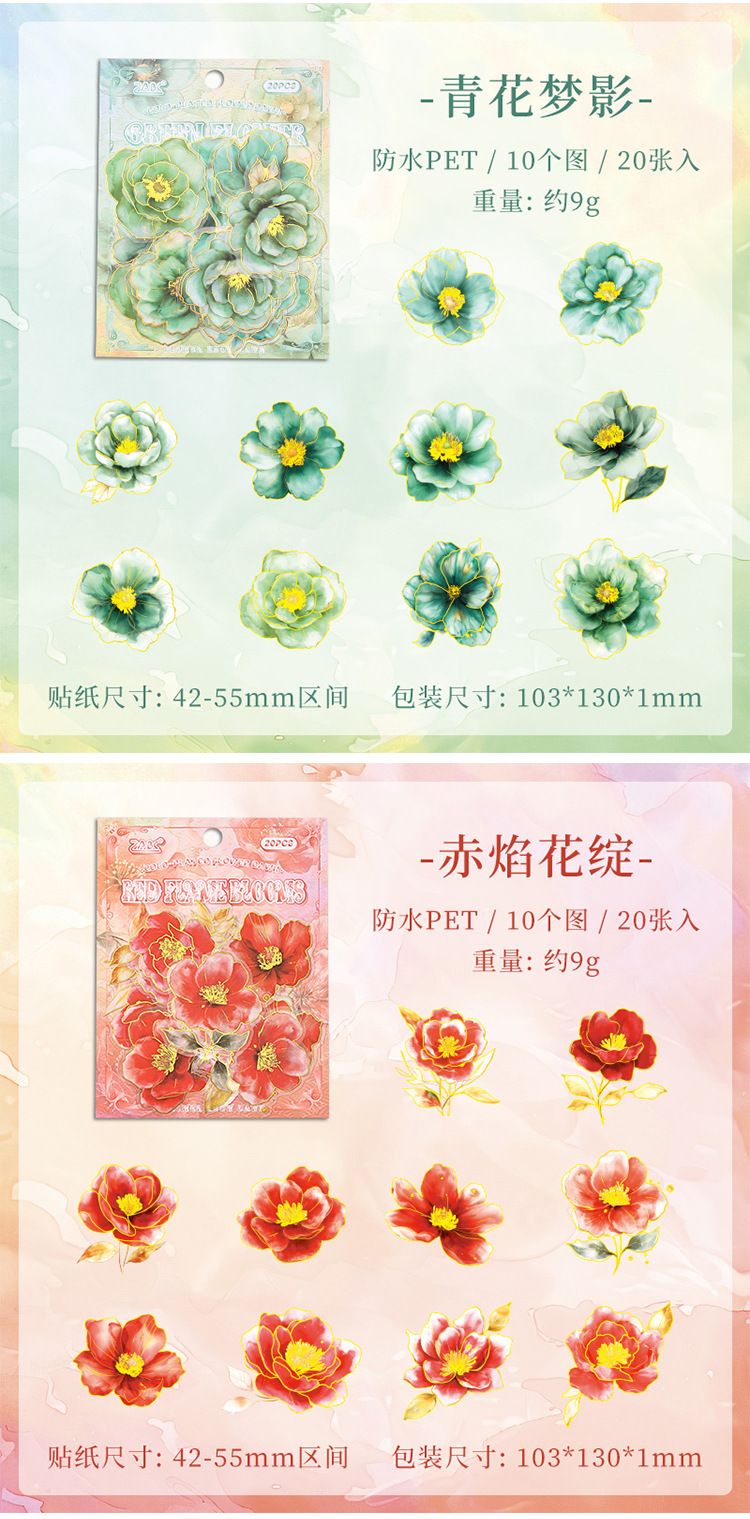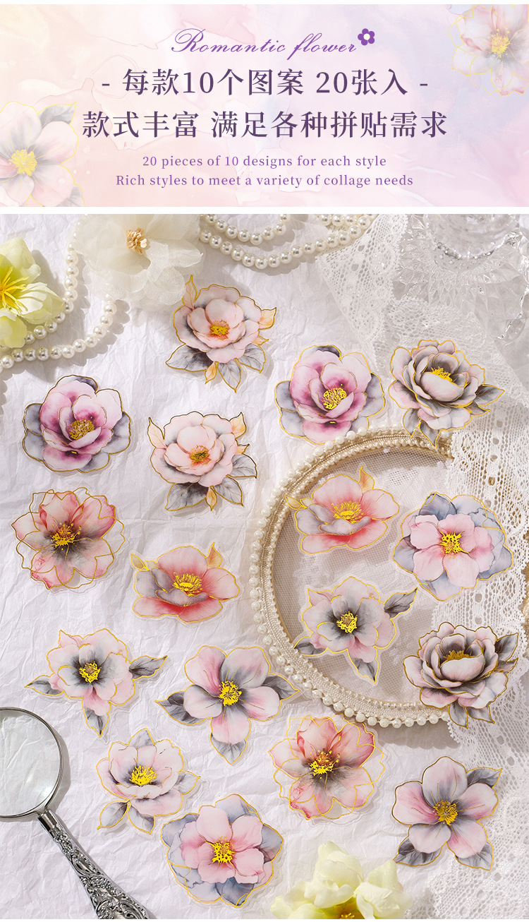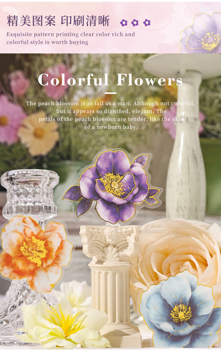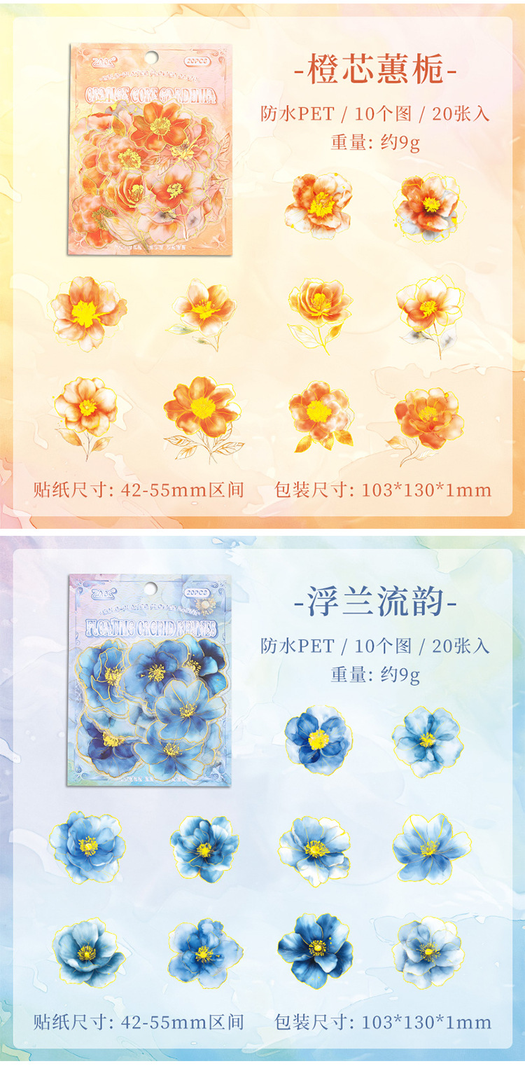 Yue Zhen retro bolsas de pegatinas de flores de viento, serie de pegatinas de película de corte de decoración de la mano de estampado de oro