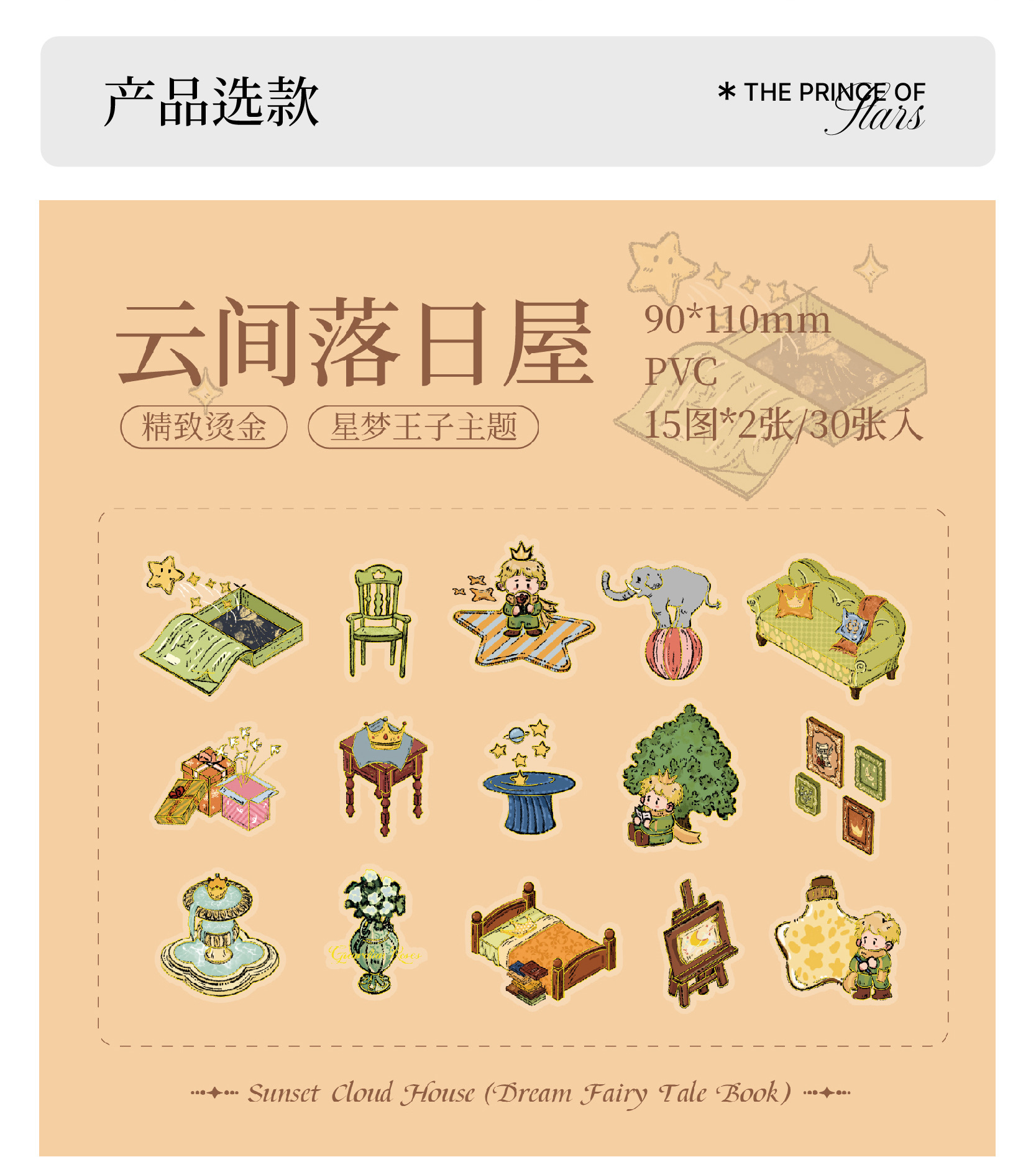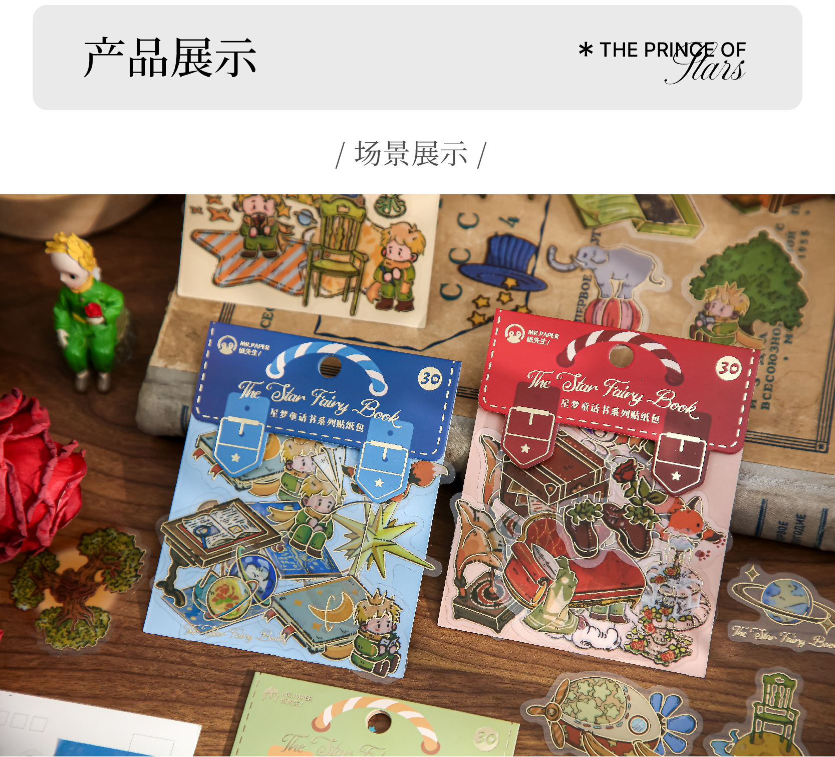 Mr. Paper Cute Rose Theme Sticker Pack Star Dream Fairy Tale Book Series Handbook Material DIY Sticker Pack