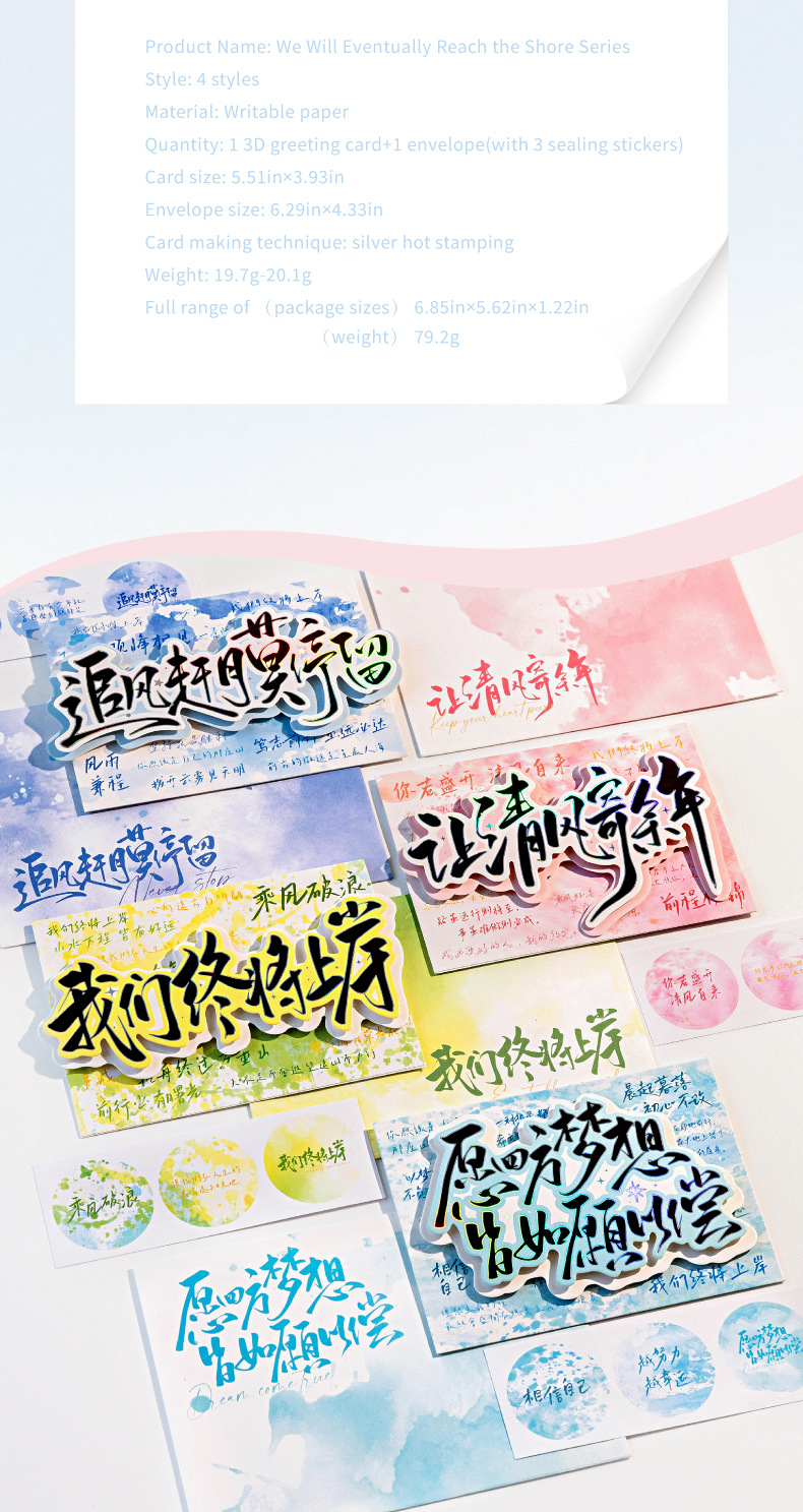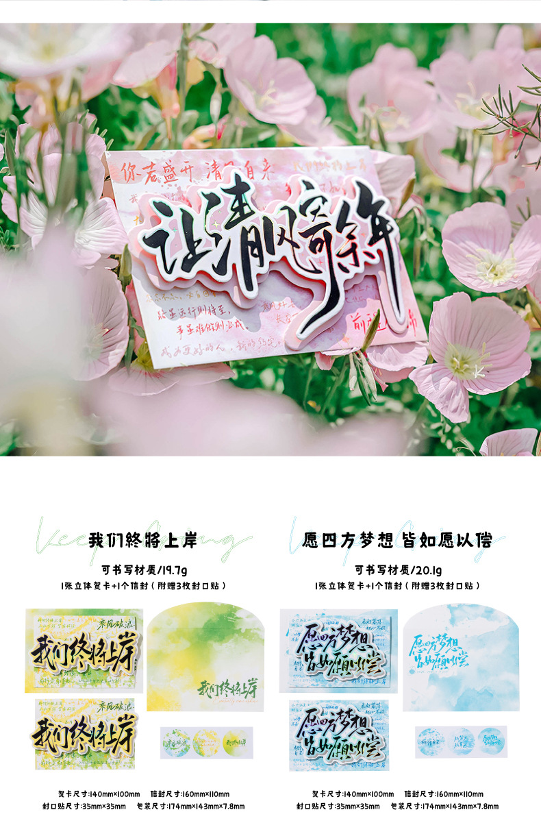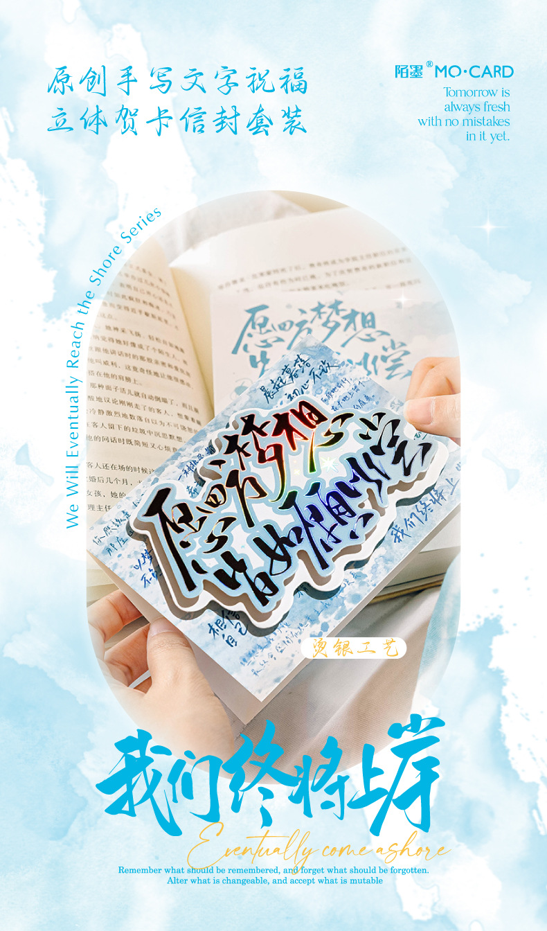 Juego de sobres de tarjeta de felicitación tridimensional de plata caliente Mo Mo, terminaremos en tierra, temporada de exámenes, temporada de graduación, tarjeta de felicitación de bendición