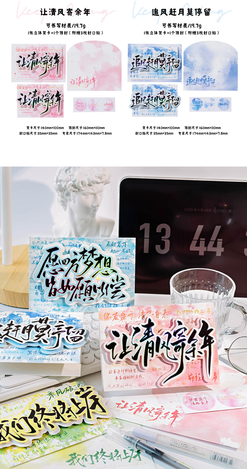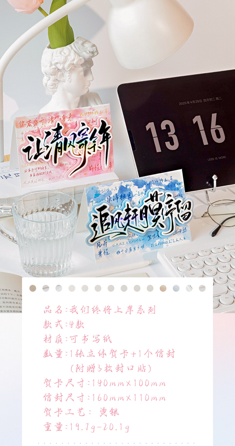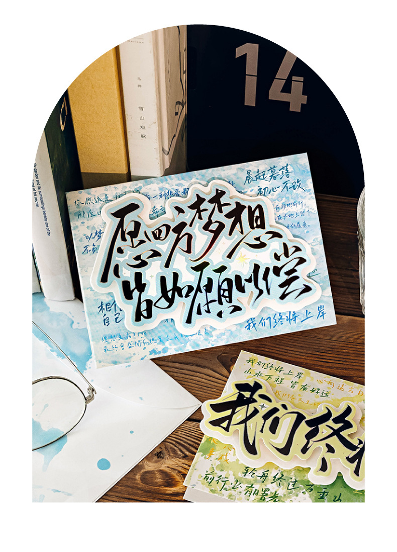 Juego de sobres de tarjeta de felicitación tridimensional de plata caliente Mo Mo, terminaremos en tierra, temporada de exámenes, temporada de graduación, tarjeta de felicitación de bendición