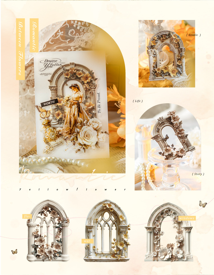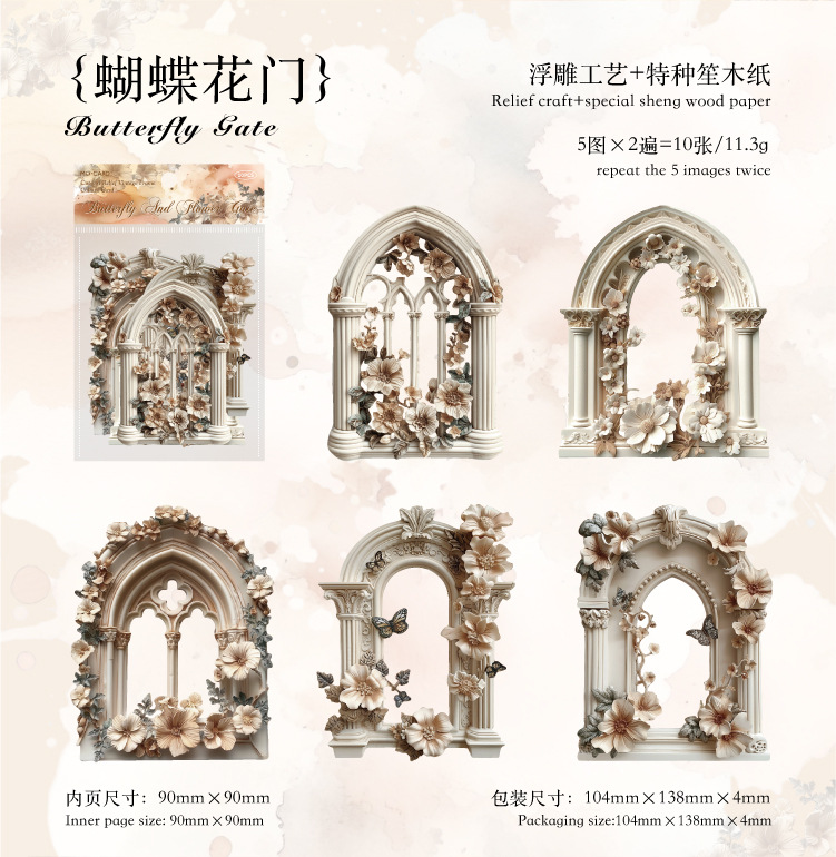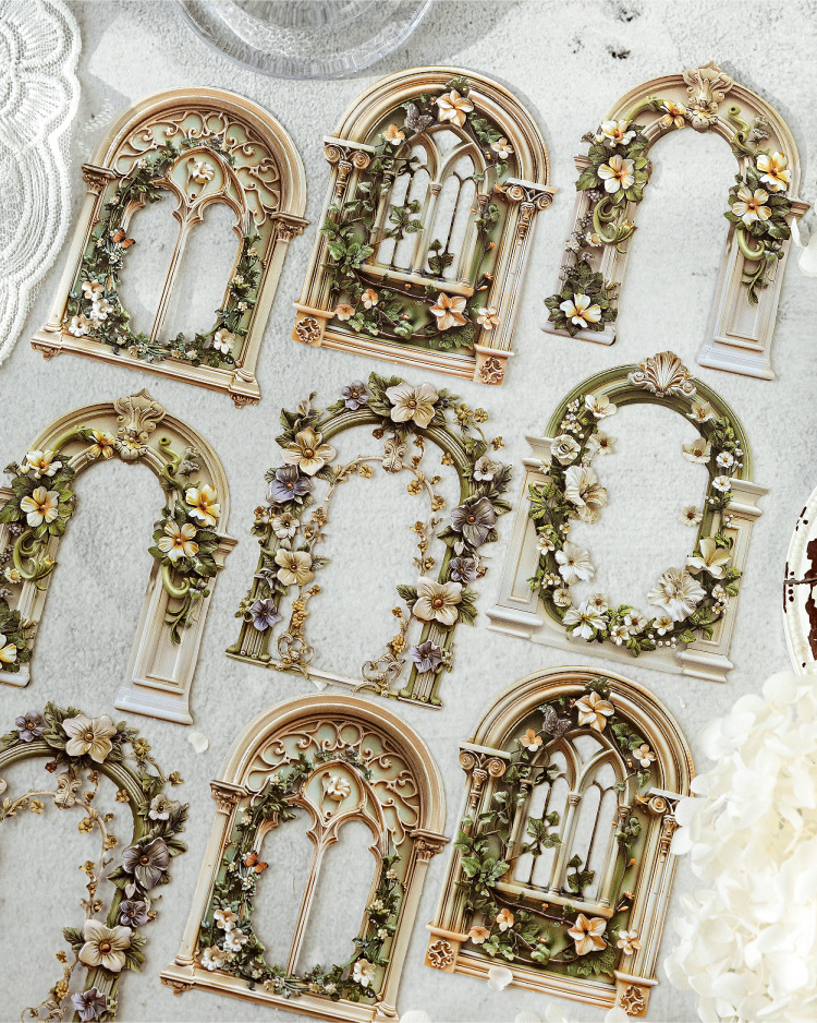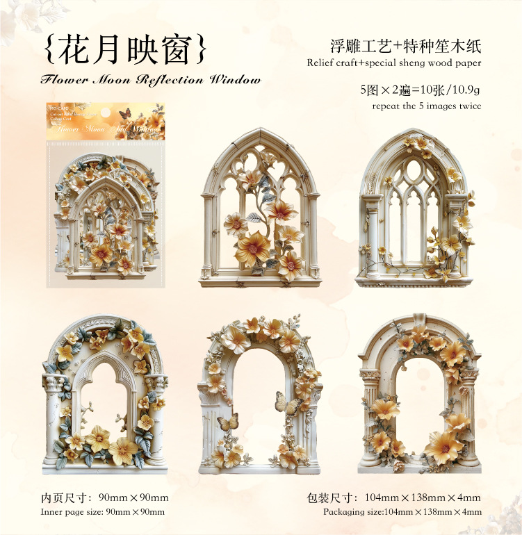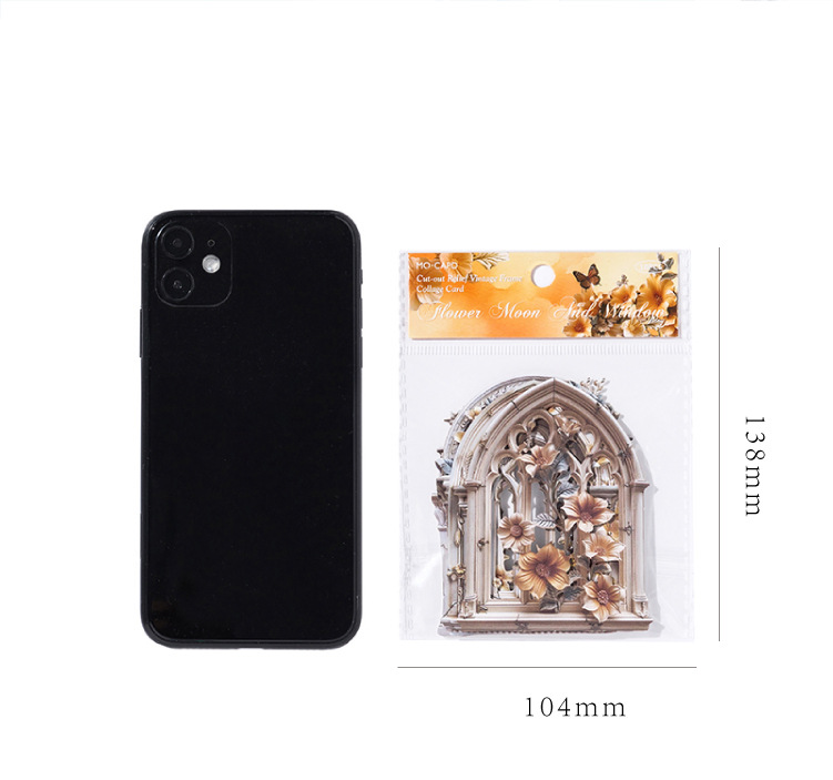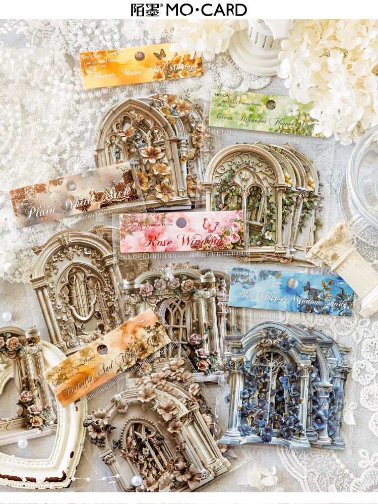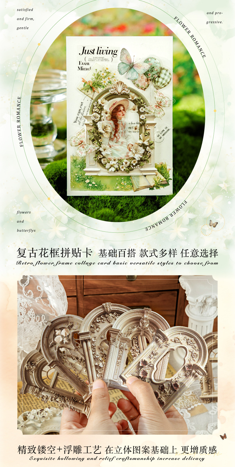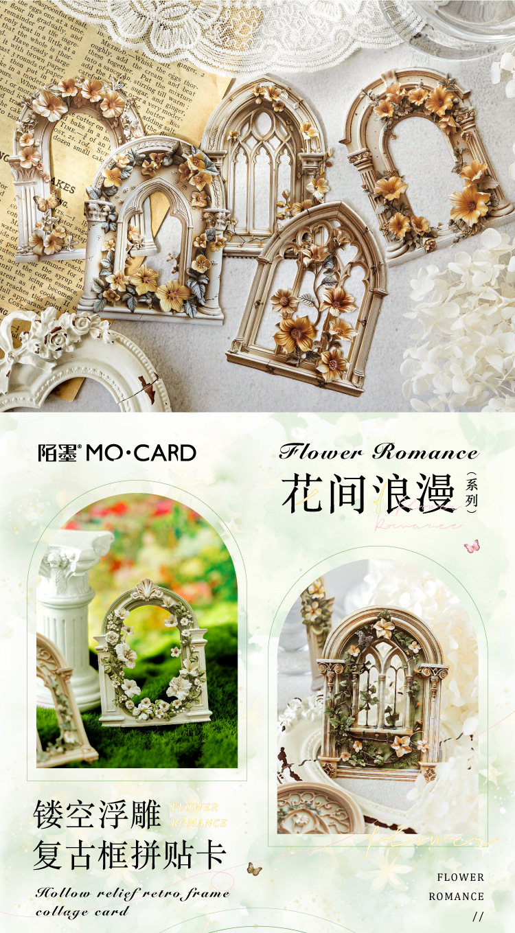 Mo Mo Sheng Impresión de madera en relieve collage tarjeta de flor romántica serie retro agujero pegatinas decorativas de contabilidad