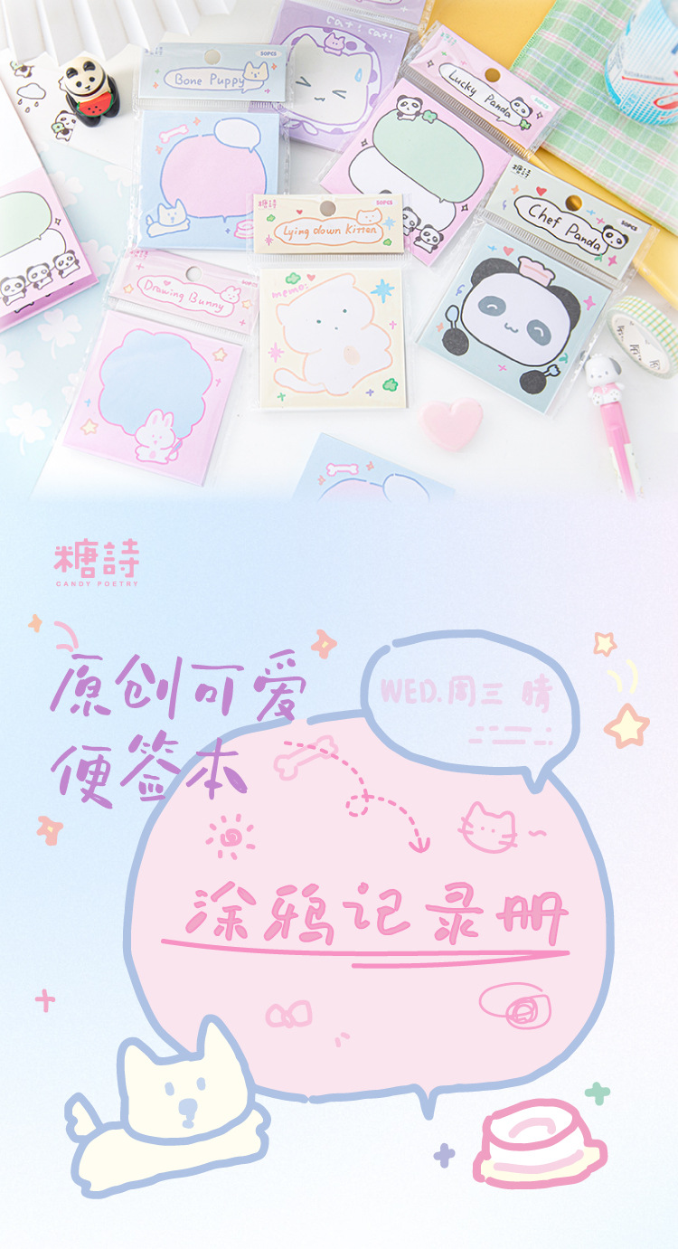 Sugar Poetry Super White Kraft Paper Bloc de notas Libro de registro de graffiti Cute Animal Message Paper Papel de material de decoración de cuenta manual