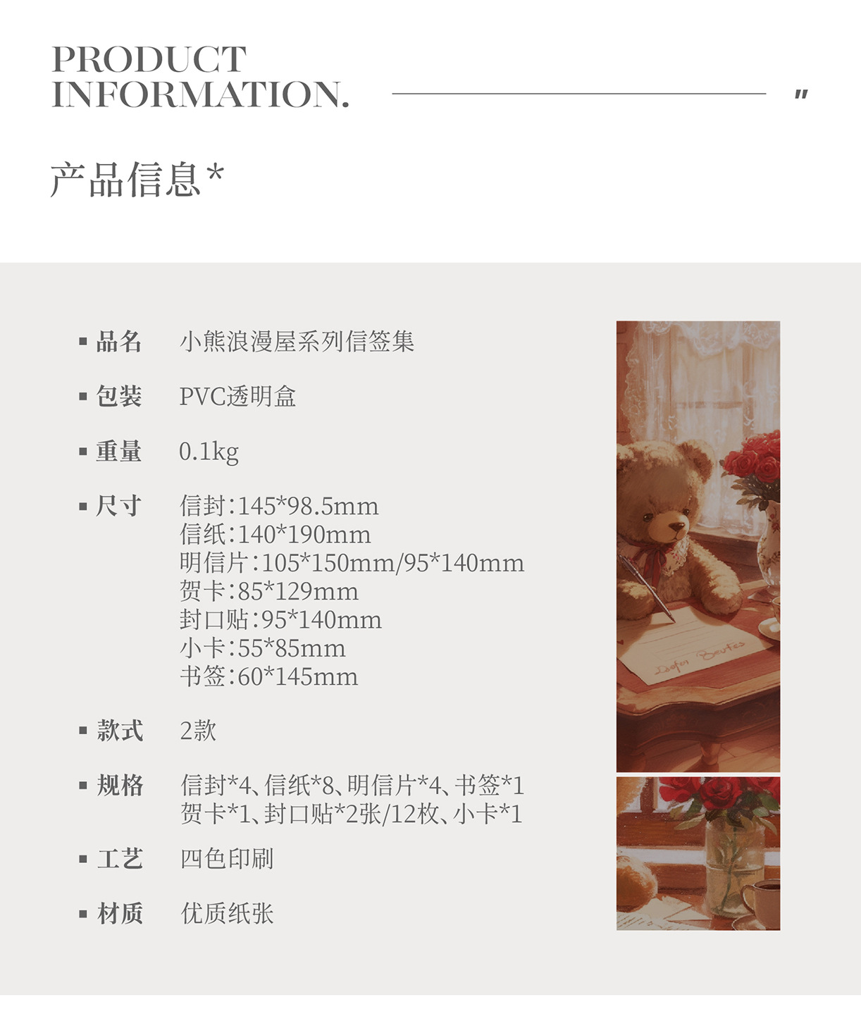 Mr. Paper Letter Collection Bear Romantic House Carta de valor alto original Sello de papel Pegatina de sellado Material de juego de membrete