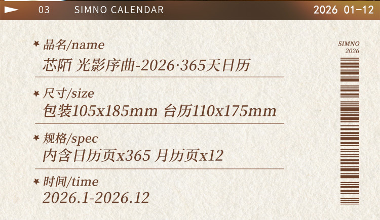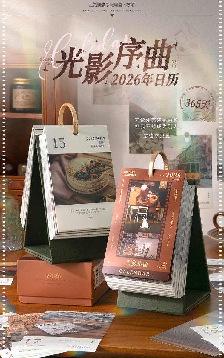 Xinmo 2026 · Calendario de 365 días Calendario de decoración de escritorio de estilo simple Plan de oficina Calendario de escritorio básico de negocios