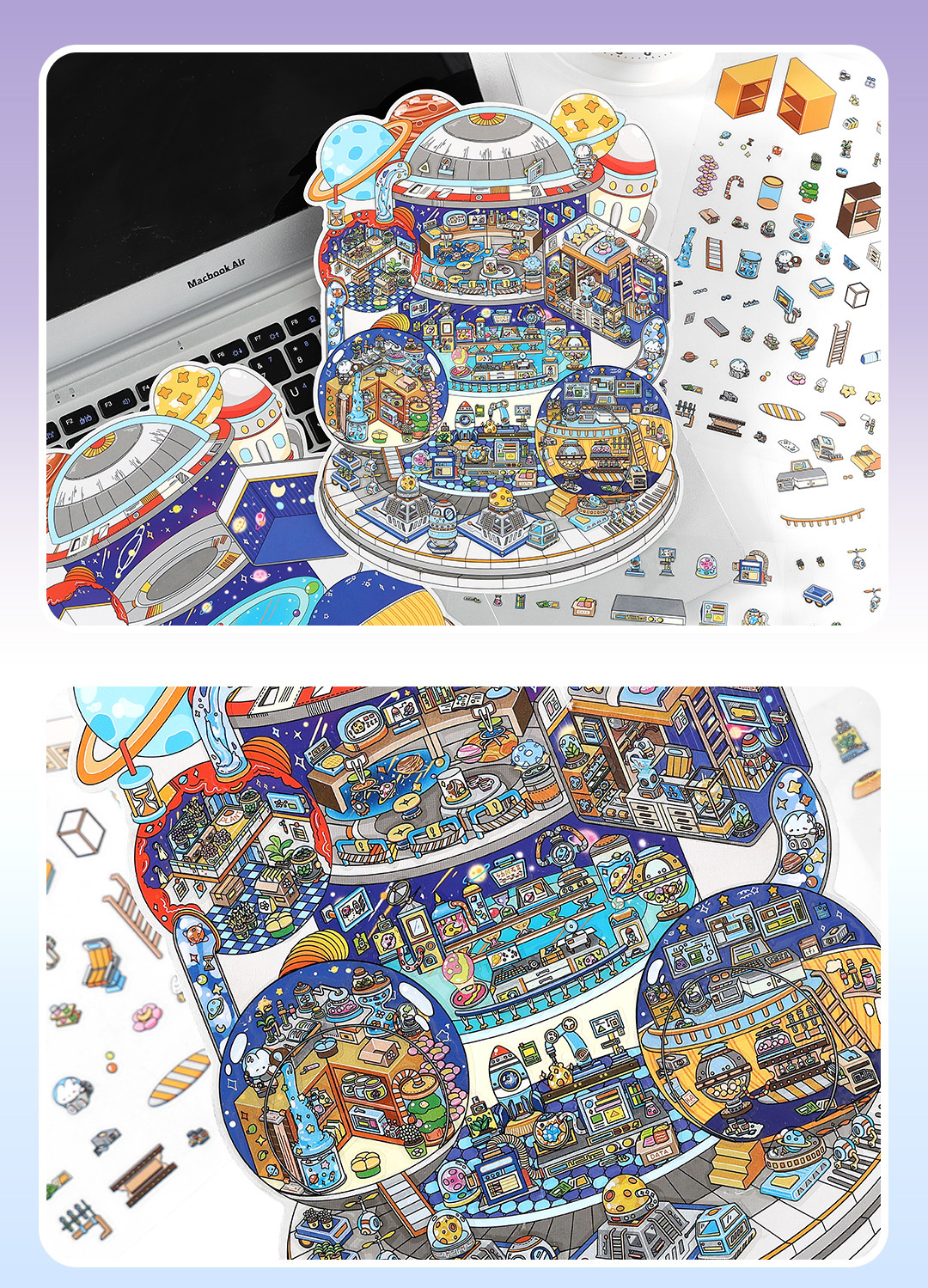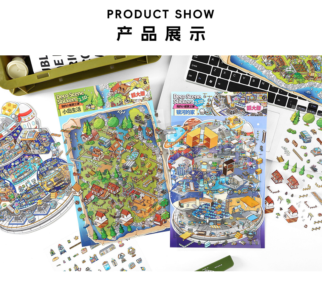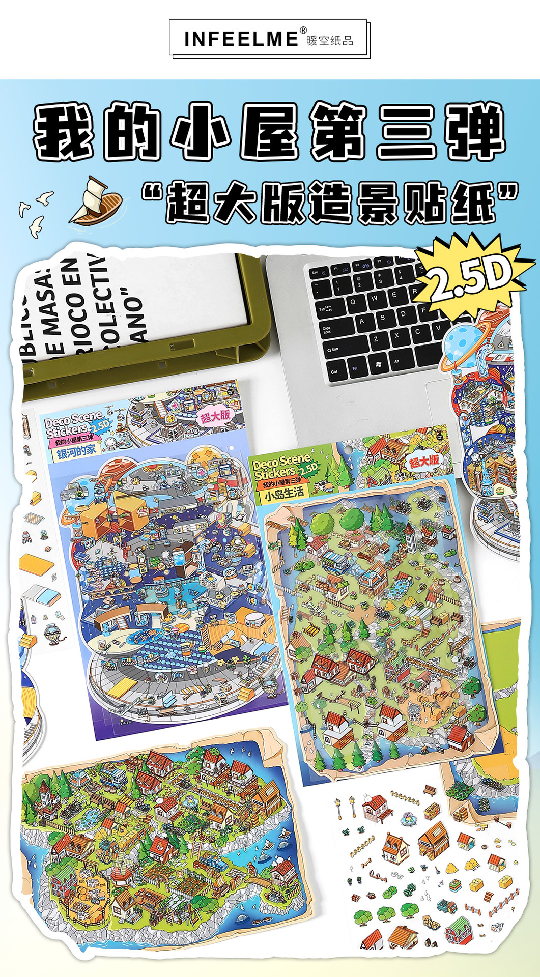 Mo Yan Infeel.Me 2.5D pegatinas paisajísticas de gran tamaño mi cabaña tercera bala pegatinas de cabaña apiladas