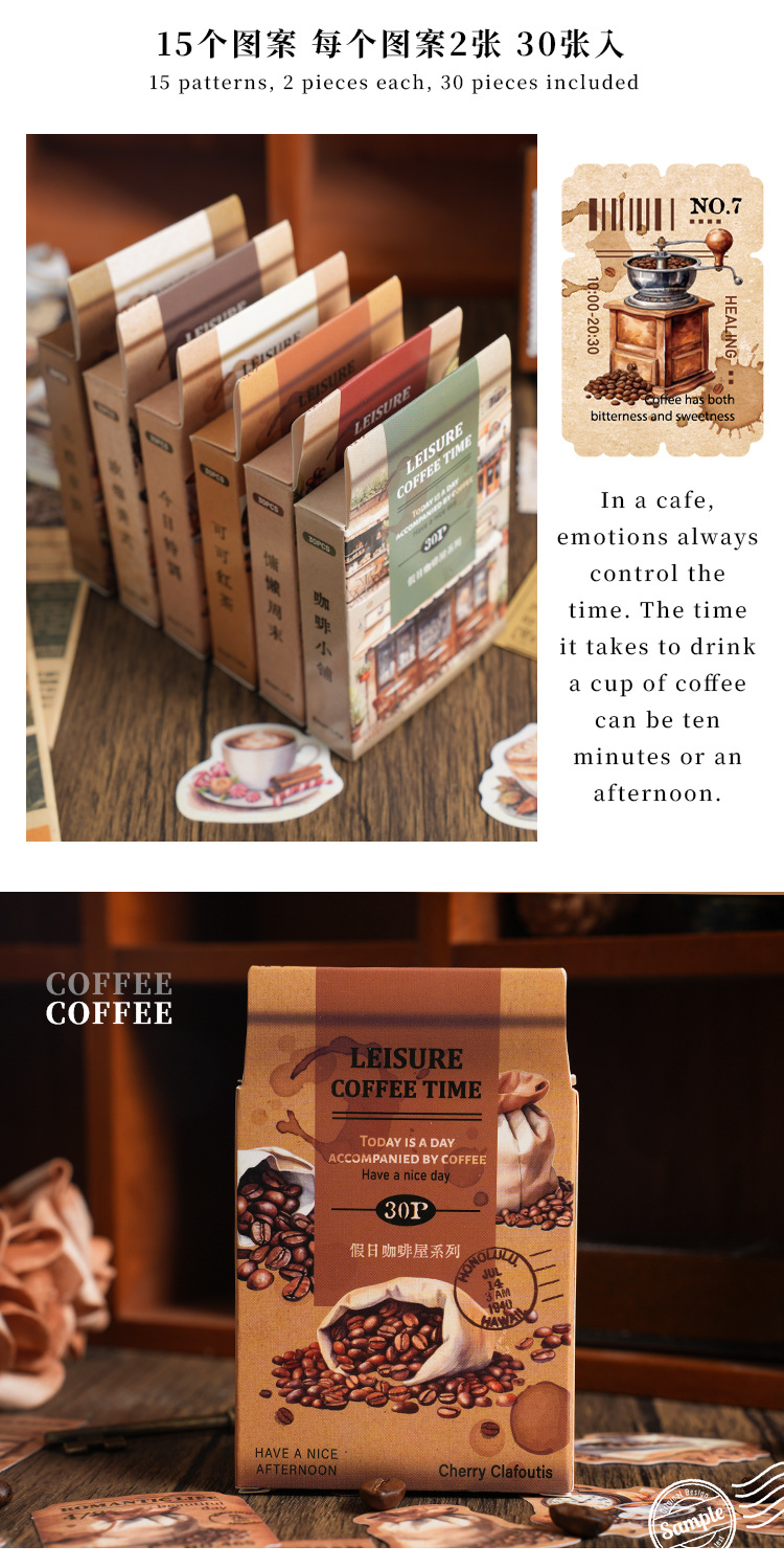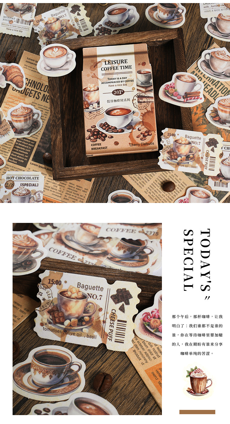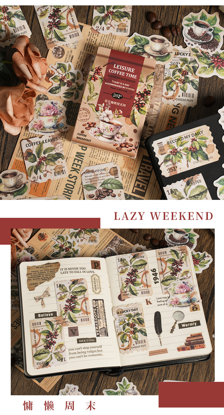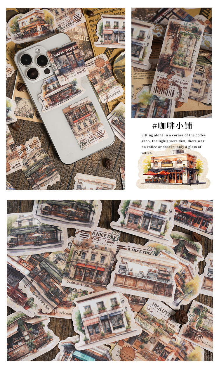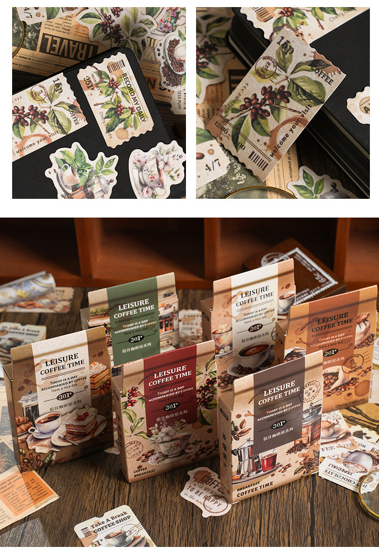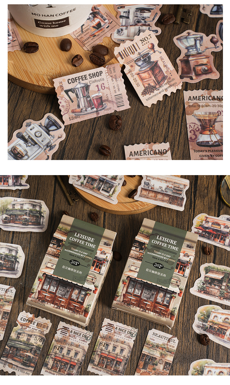 Yaniao papel en caja pegatinas vacaciones café serie vintage café decoración sellado pegatinas diario paisaje pegatinas