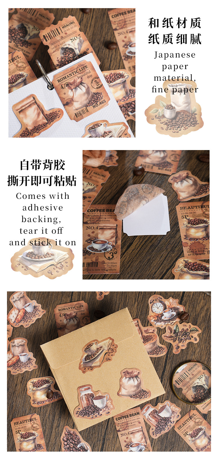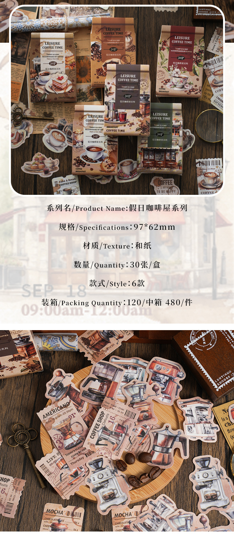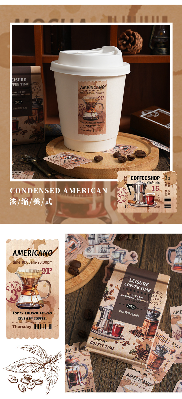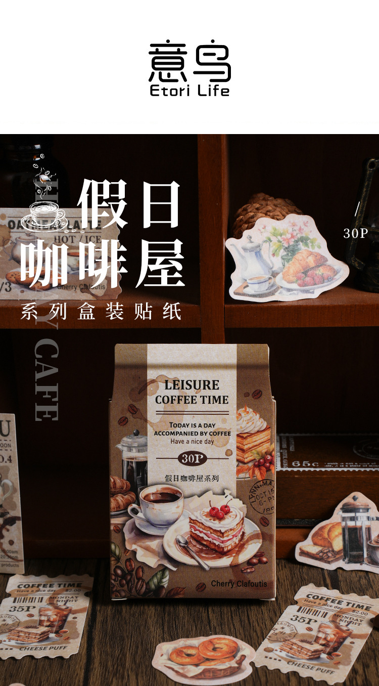 Yaniao papel en caja pegatinas vacaciones café serie vintage café decoración sellado pegatinas diario paisaje pegatinas