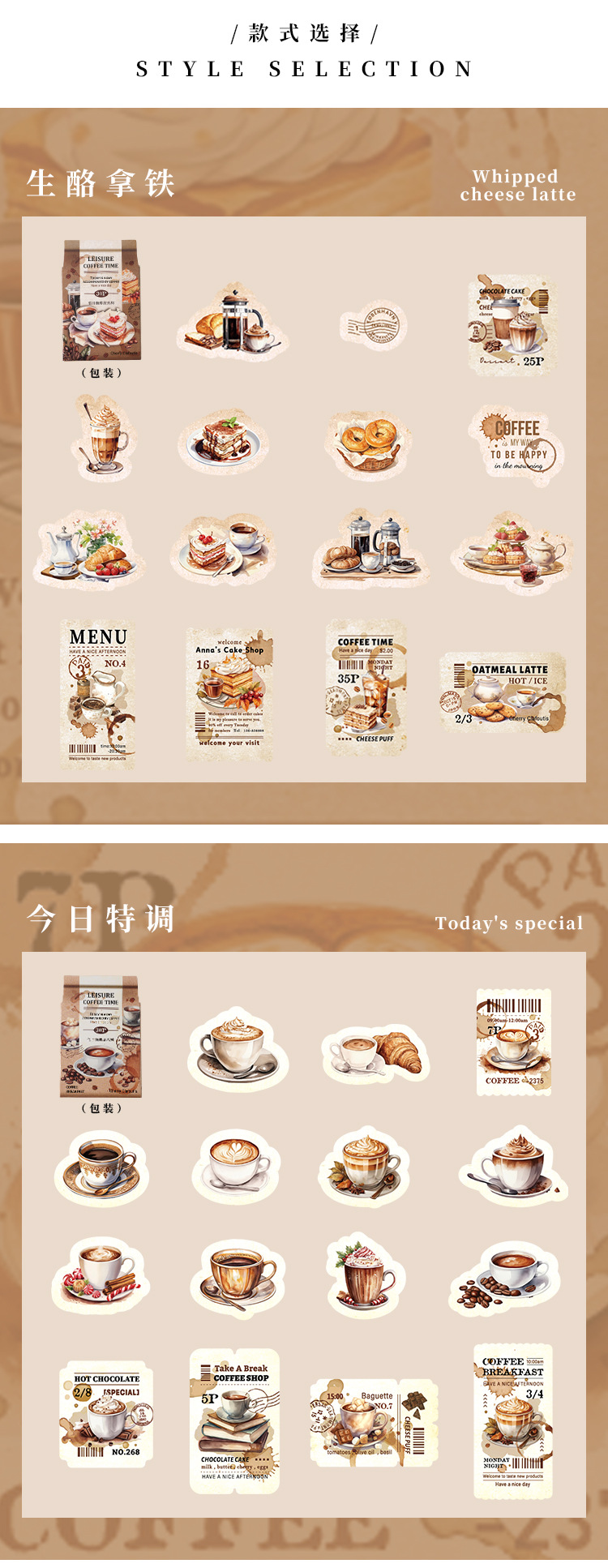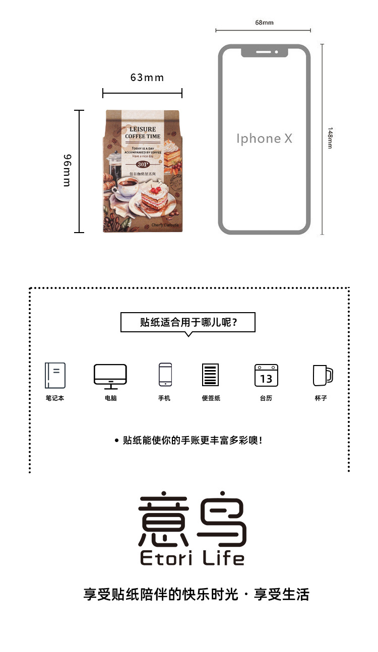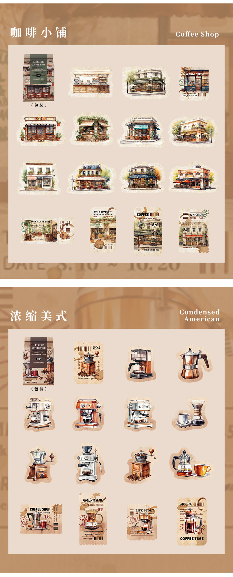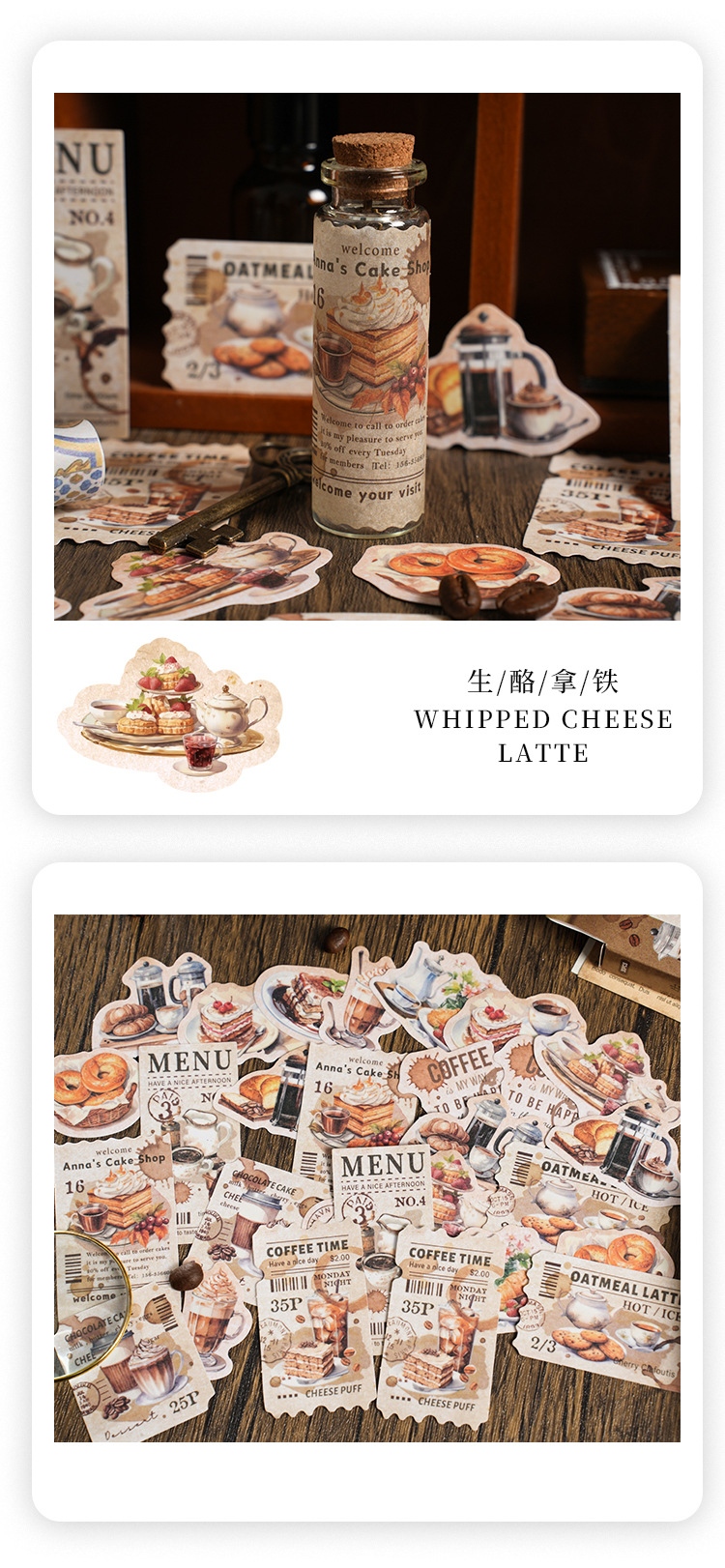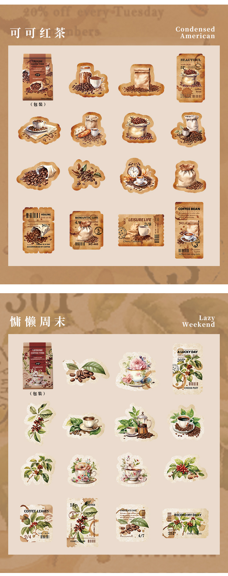Yaniao papel en caja pegatinas vacaciones café serie vintage café decoración sellado pegatinas diario paisaje pegatinas