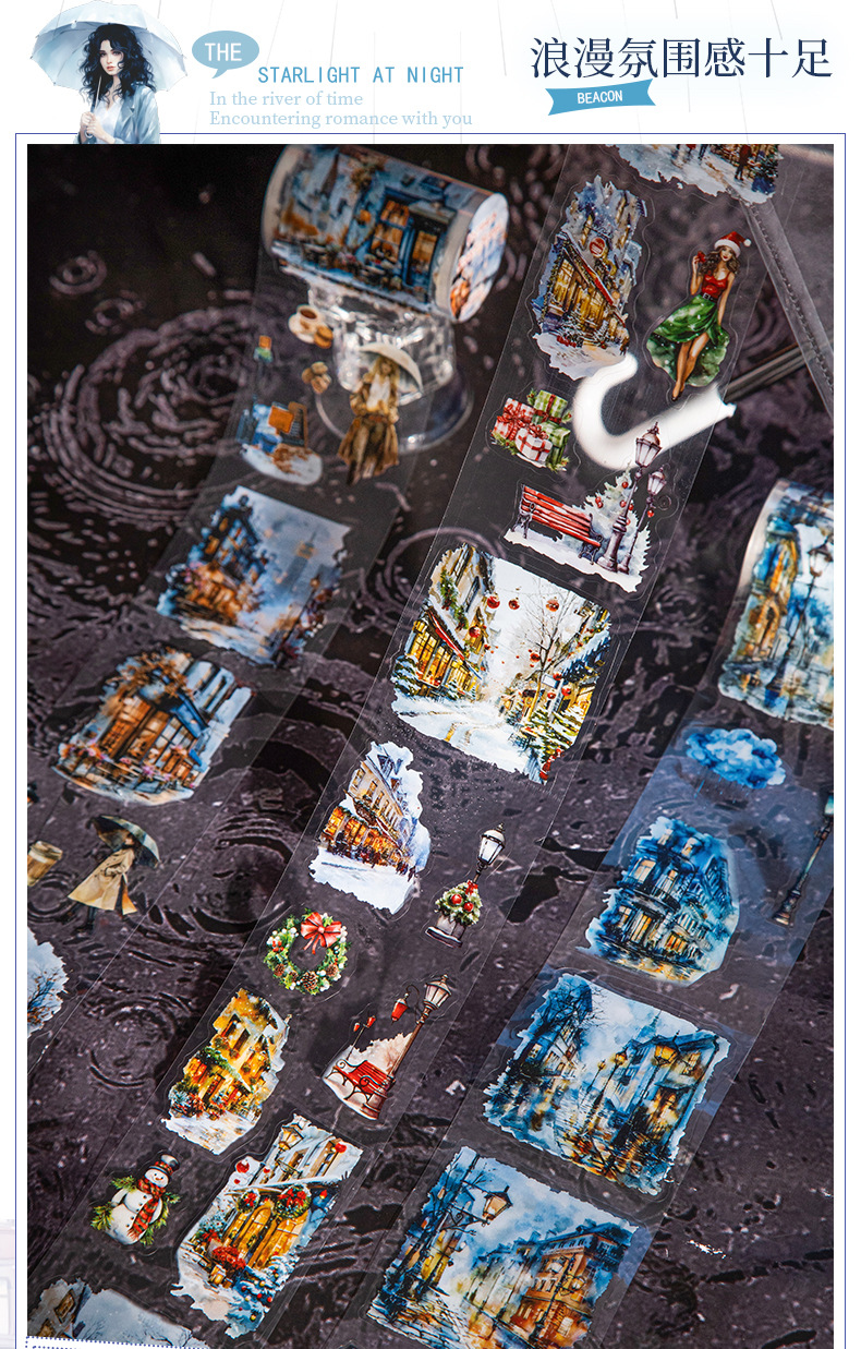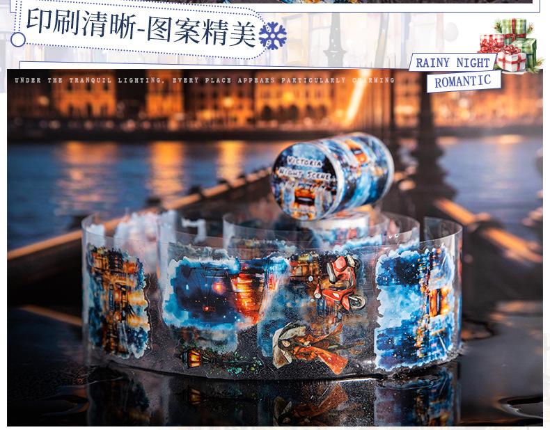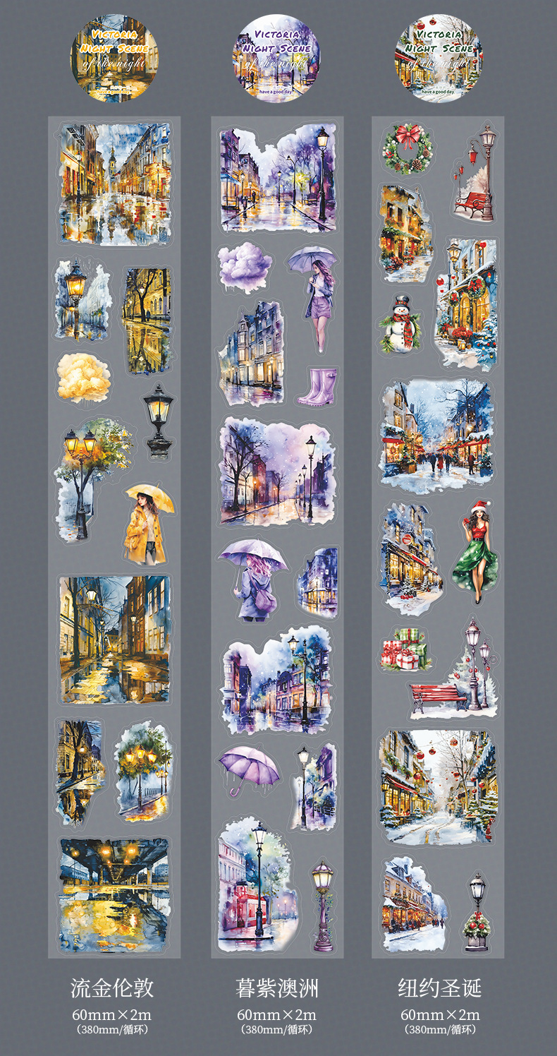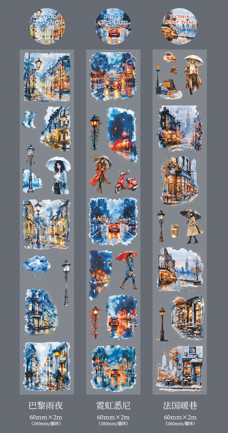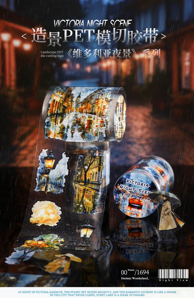 Hermoso día paisajismo PET cinta troquelada Victoria Night View Series Material de decoración de cuentas a mano pegatinas