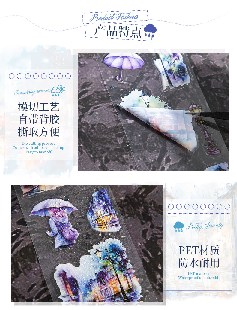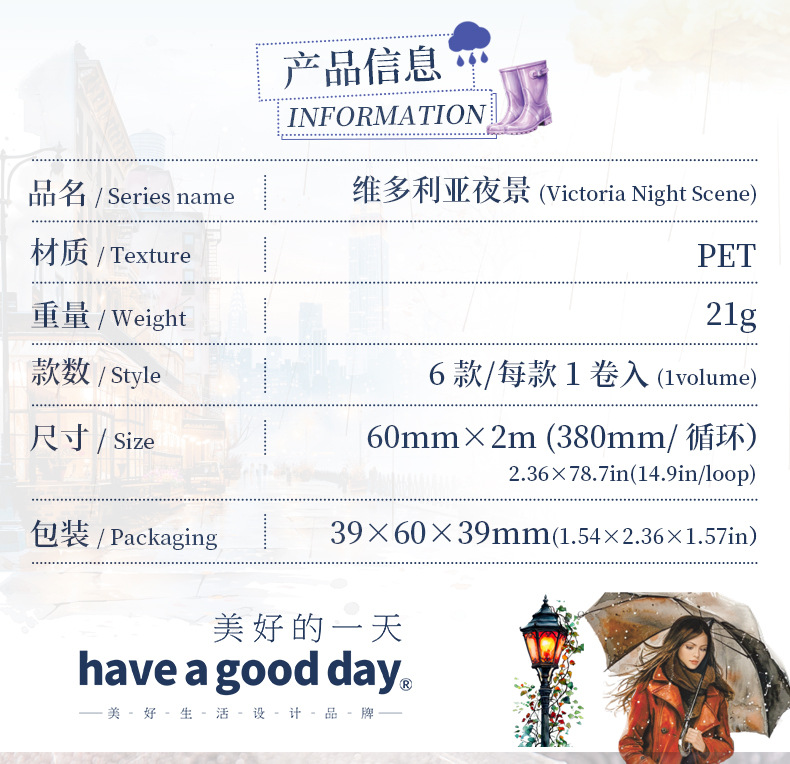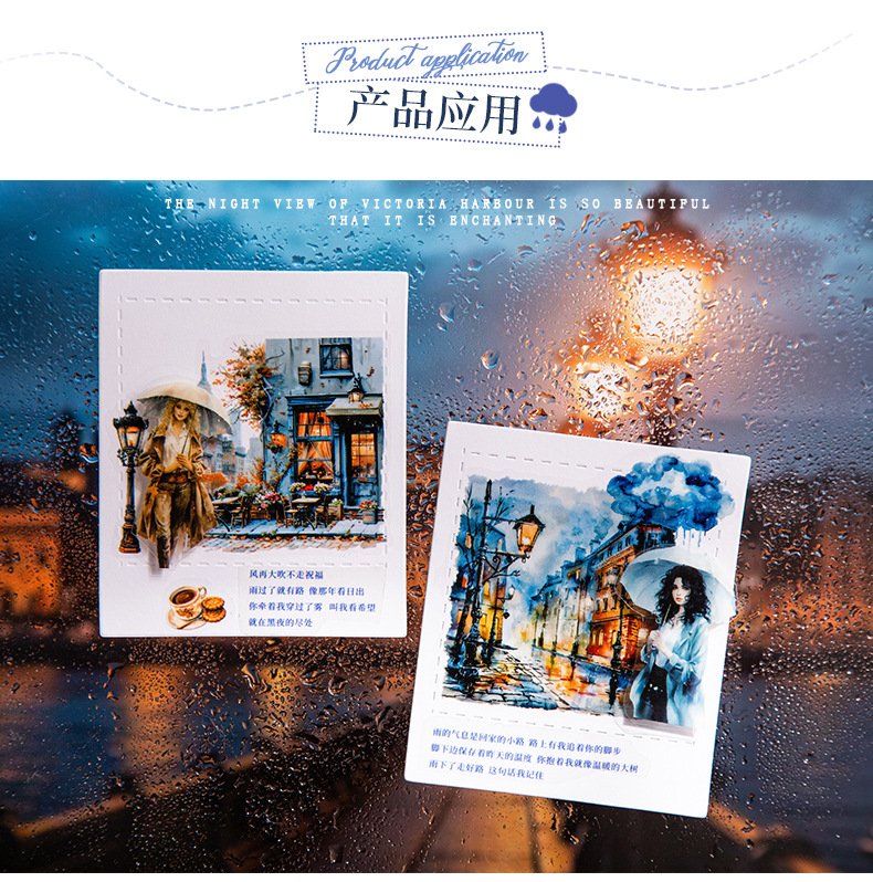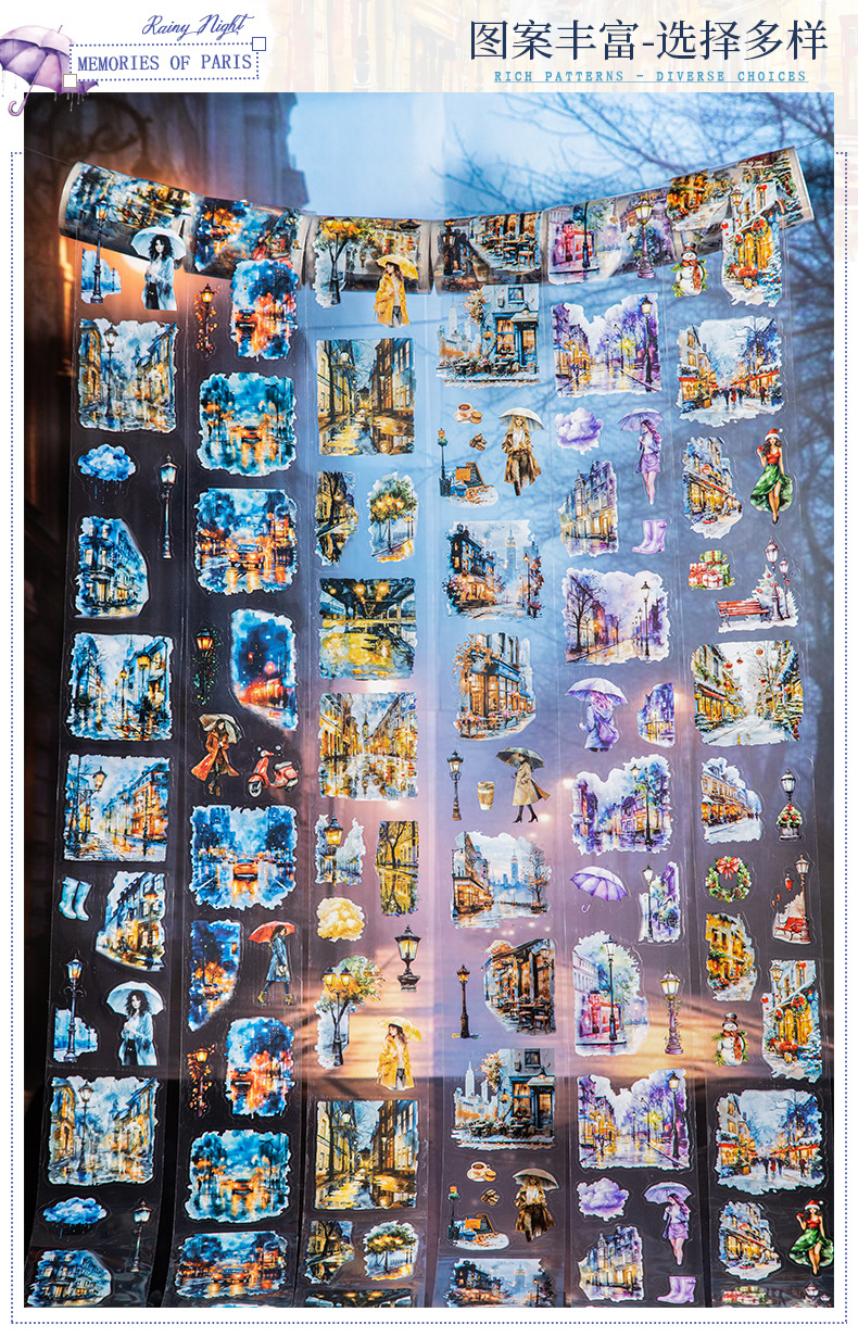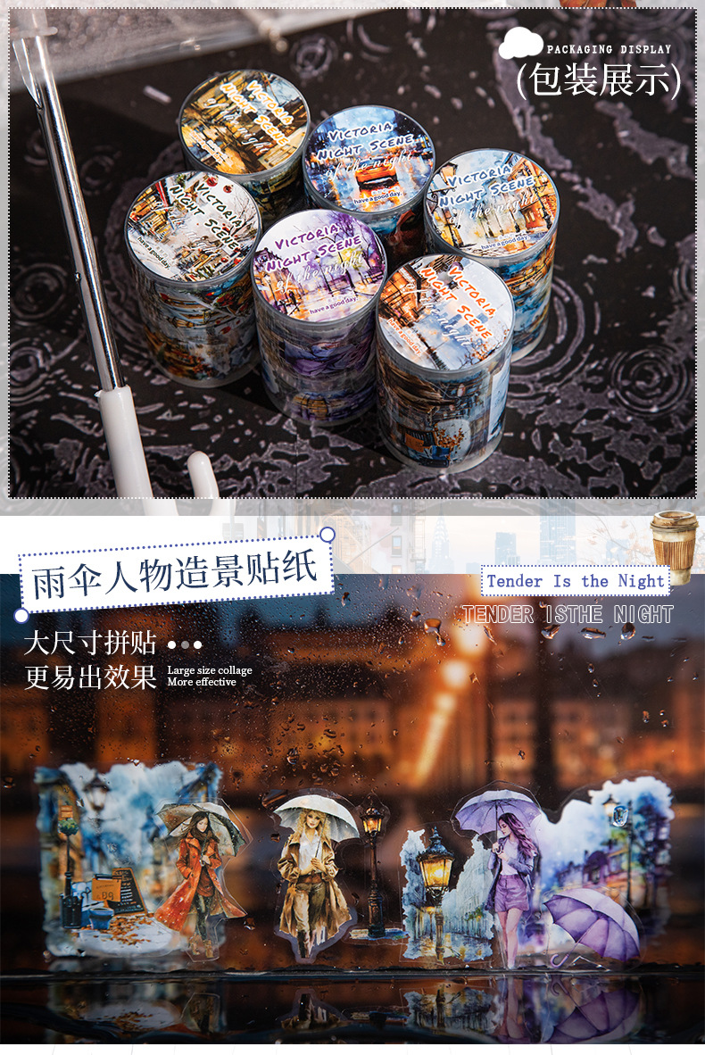Hermoso día paisajismo PET cinta troquelada Victoria Night View Series Material de decoración de cuentas a mano pegatinas