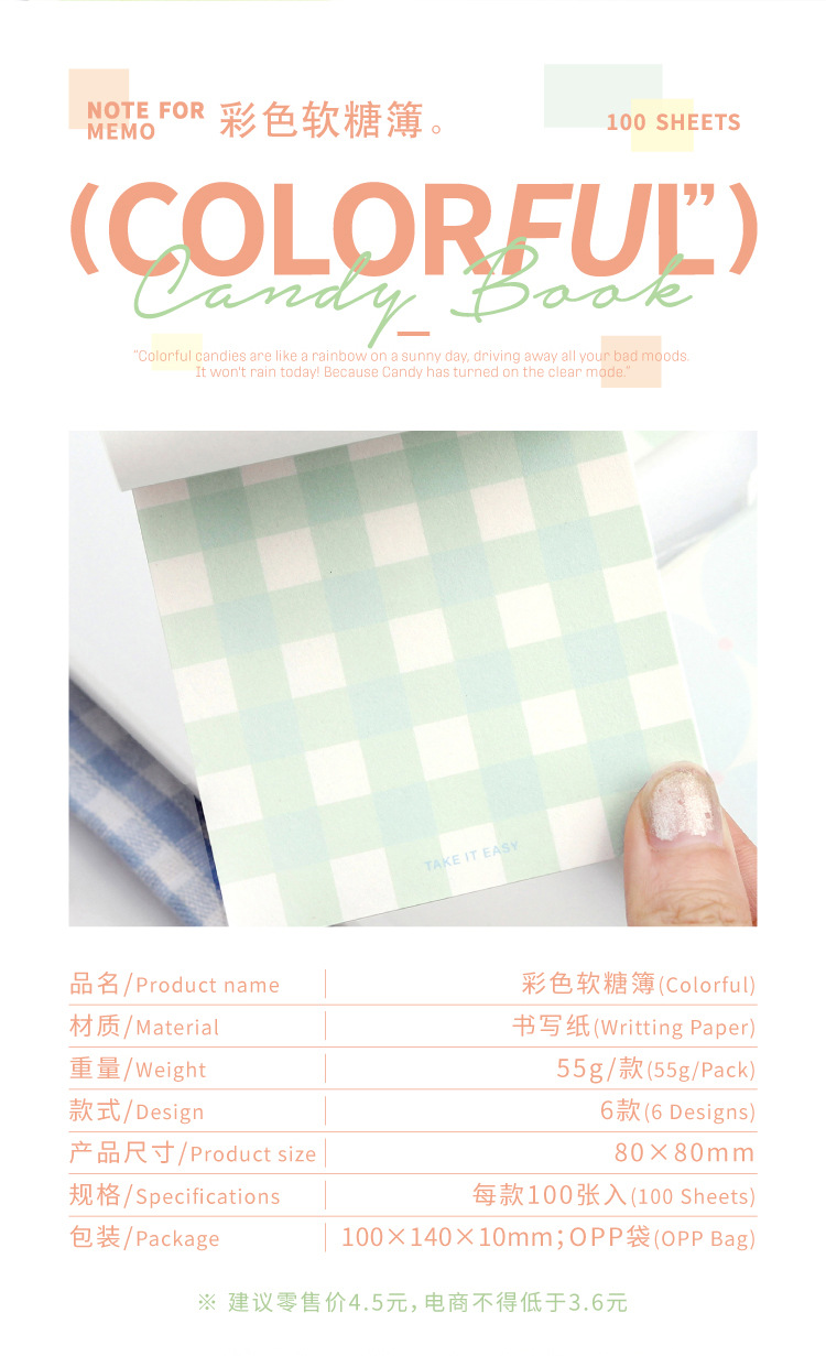 NOTE FOR100 bloc de notas, libro de dulces de colores, simple, pequeño y fresco, papel de mensaje