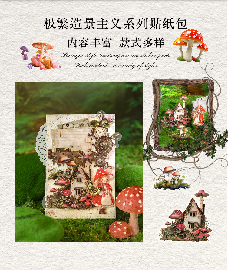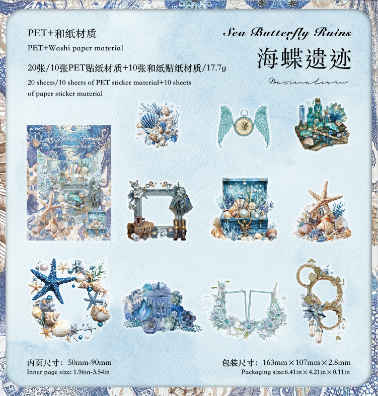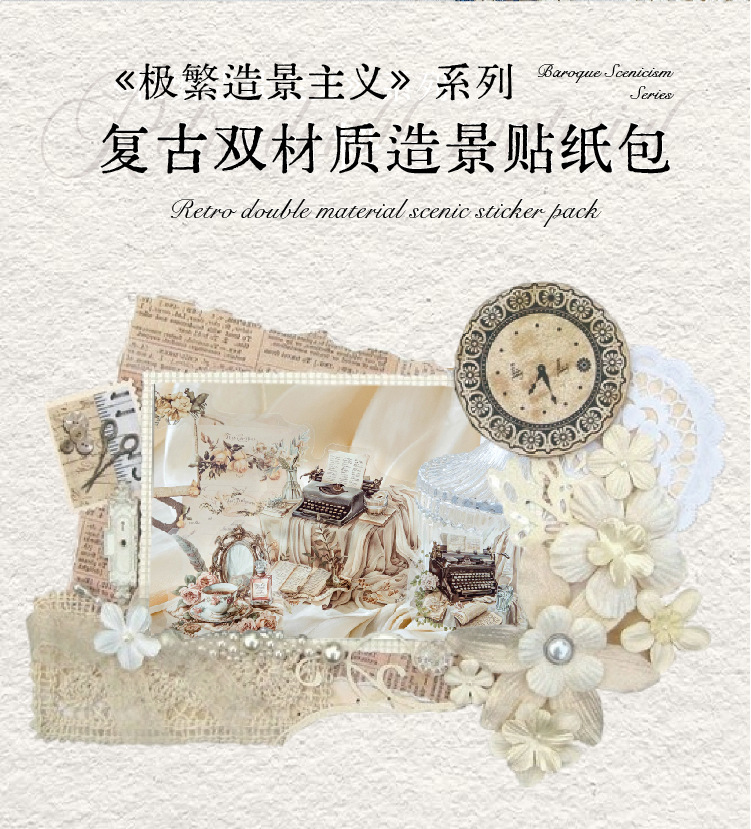 Bolsa de pegatinas de doble disfrute de Mo Mo, serie de paisajismo extremadamente compleja, bolsa de material de libro de bricolaje con tema de encaje de concha