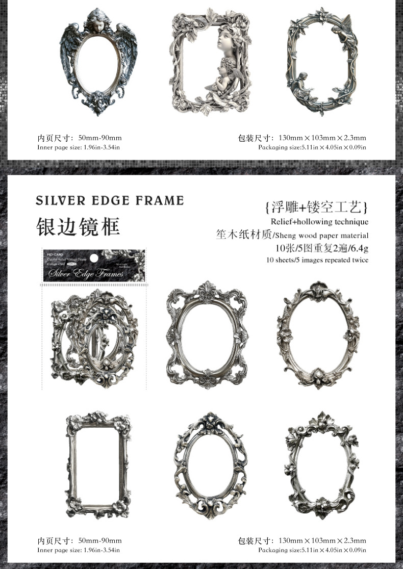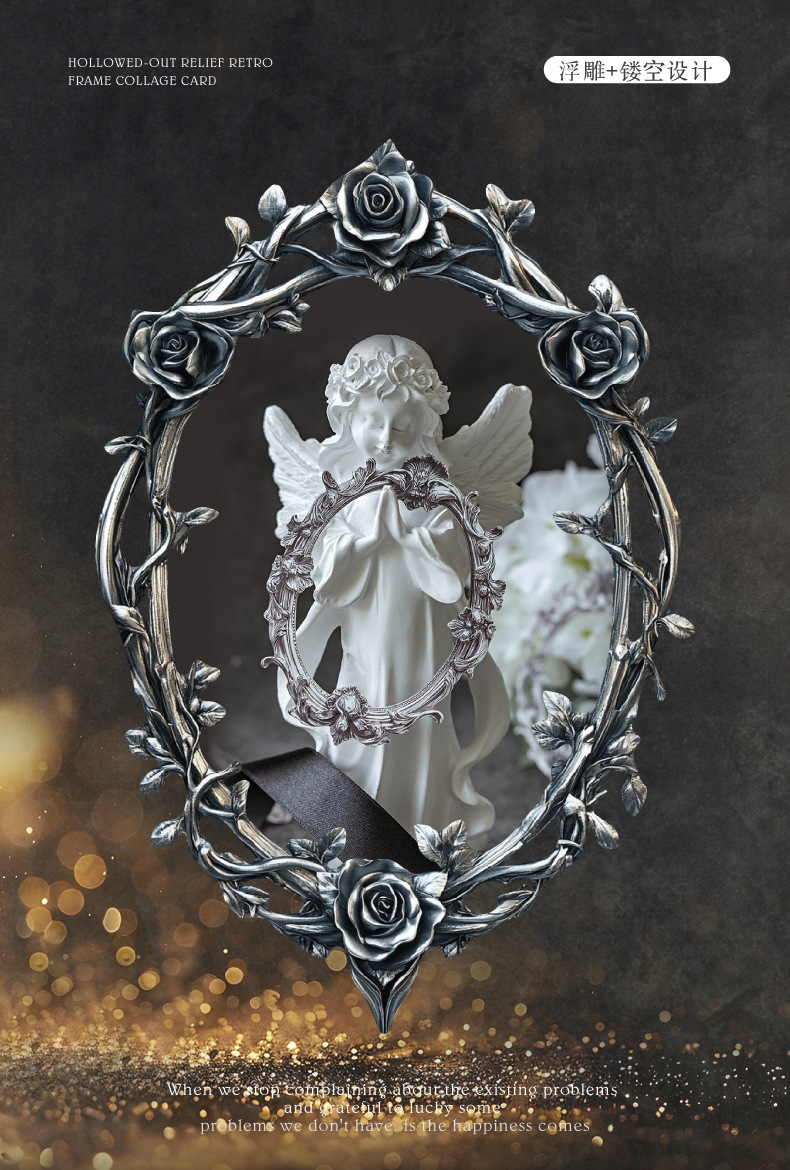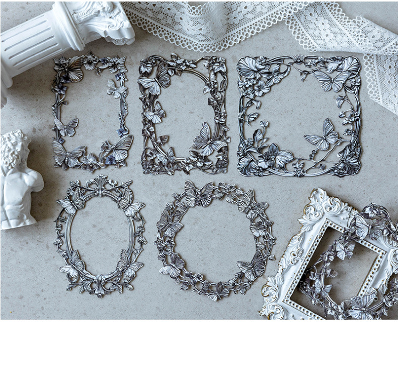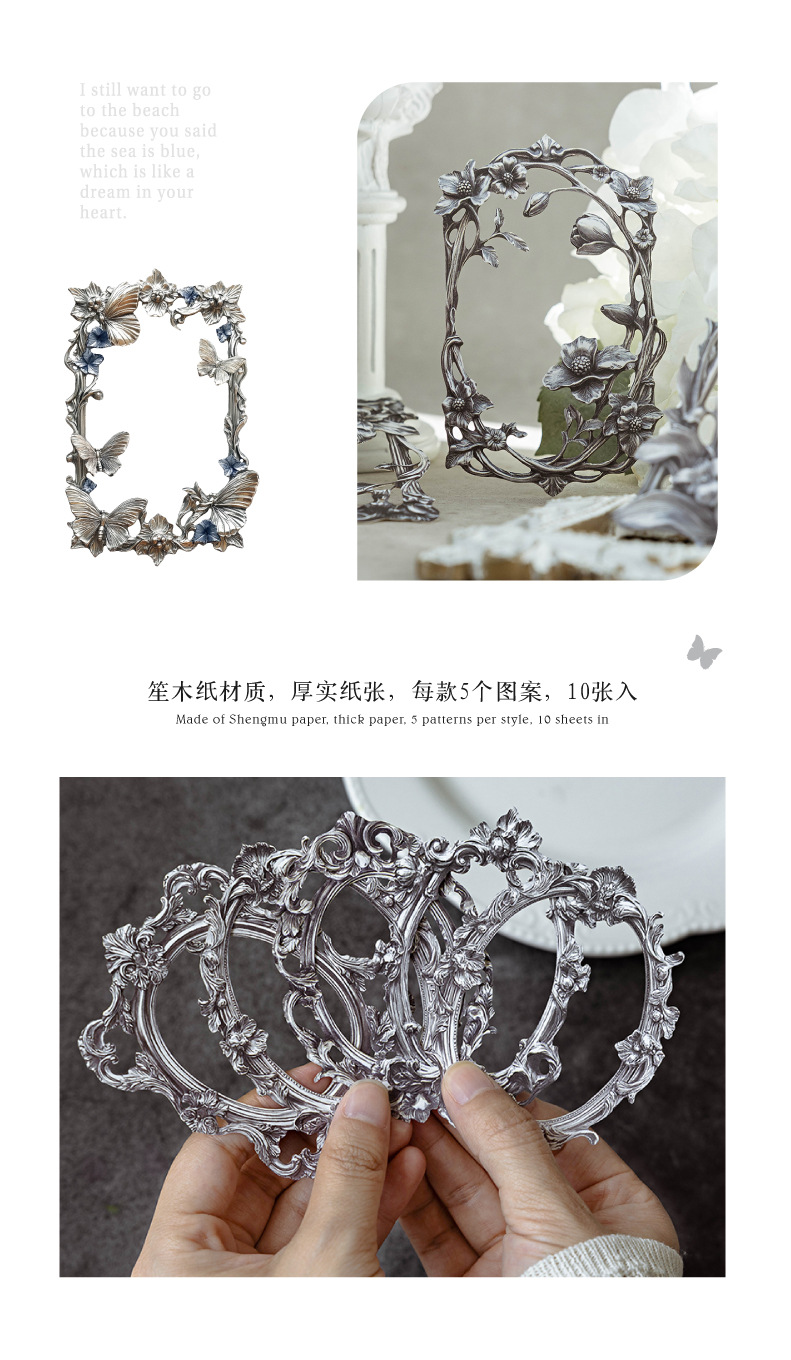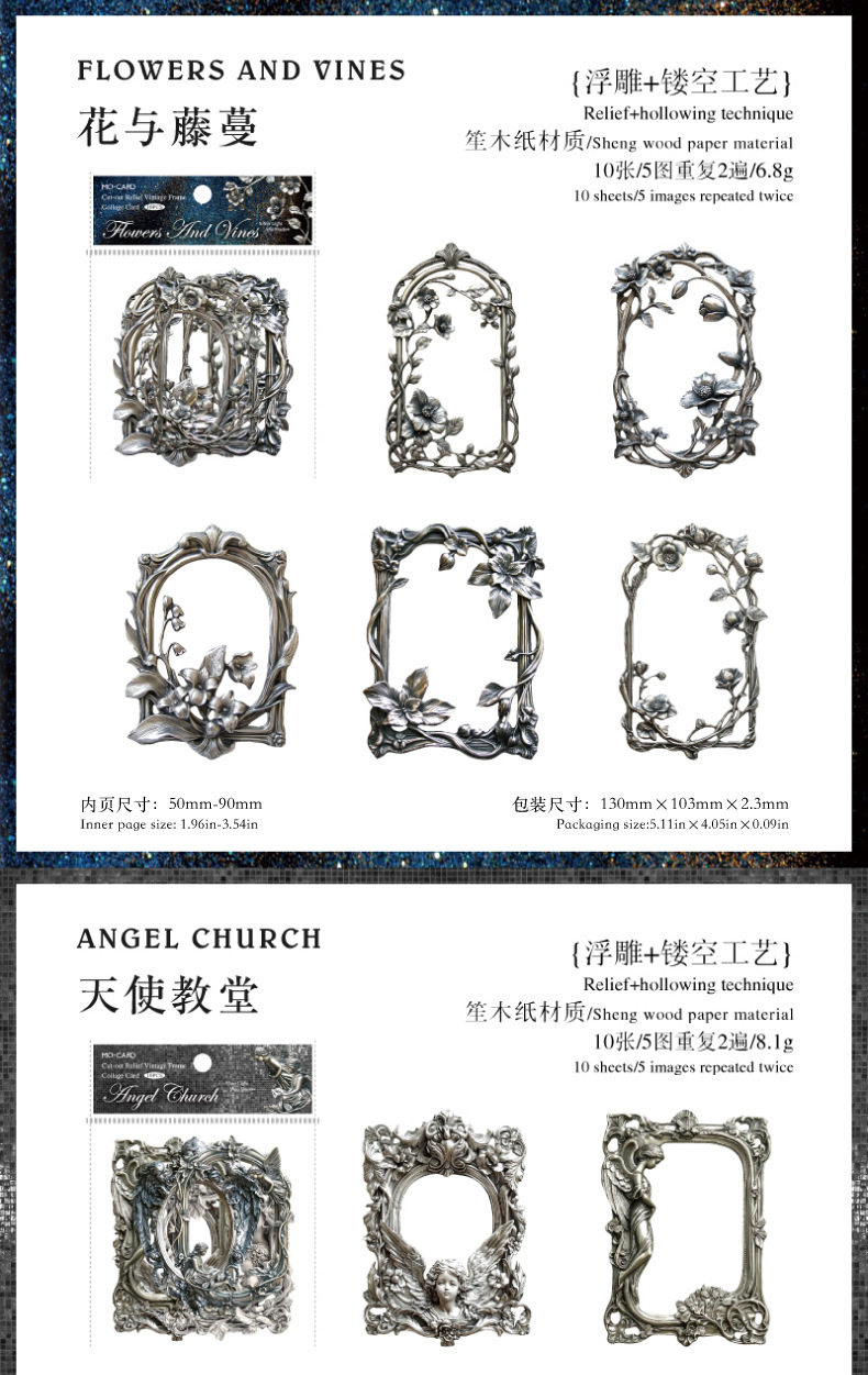 Tarjeta de collage en relieve hueca de papel de madera Mo Mo Sheng, serie de luces y sombras plateadas, bolsa de pegatinas de cuentas huecas retro Guka