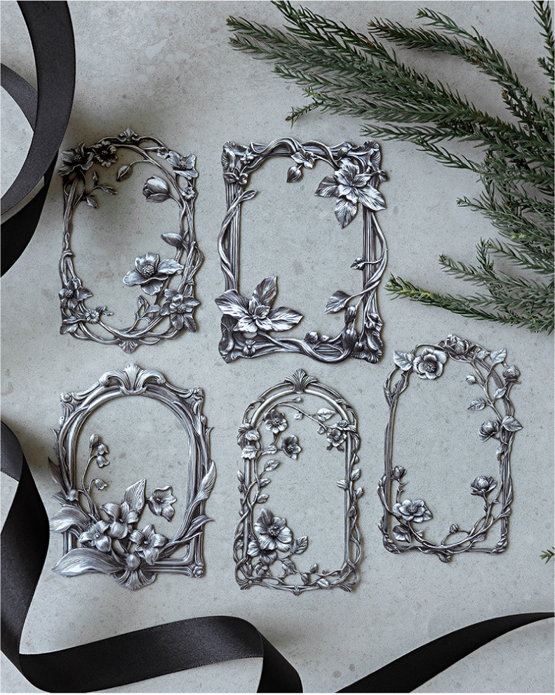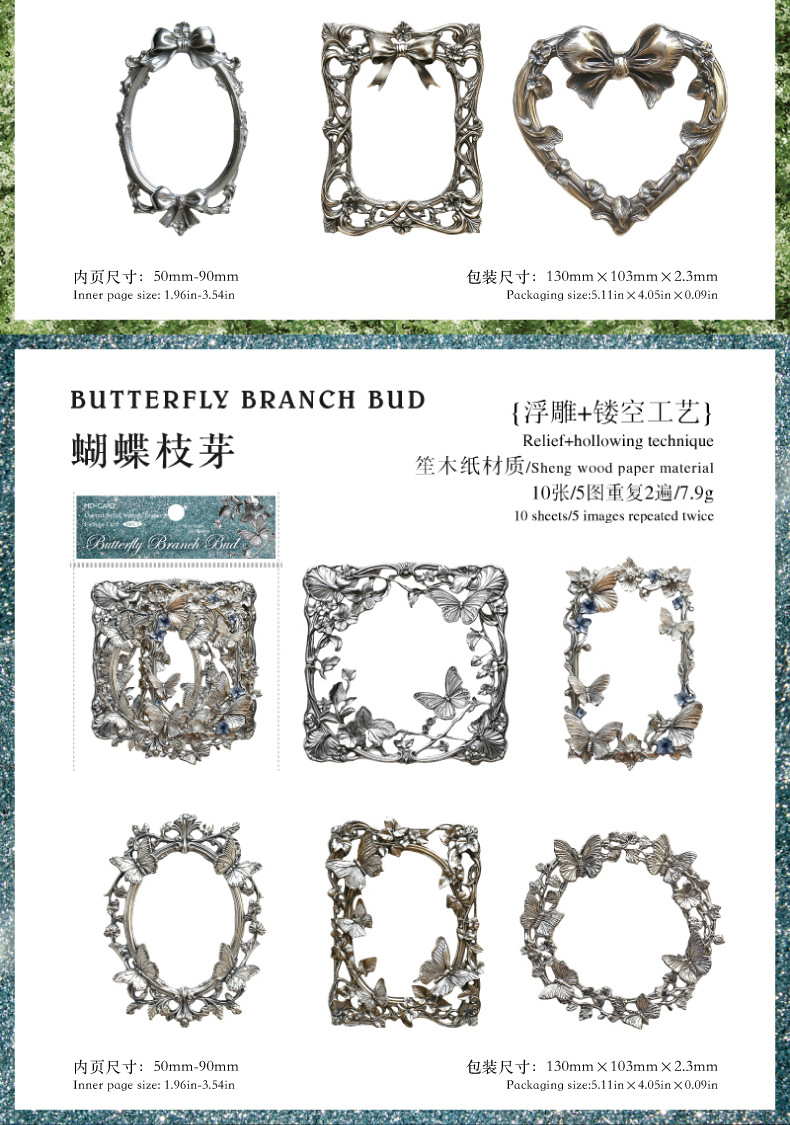 | Colores | Flores y enredaderas,Rosa de espinas,Brotes de ramas de mariposa,Iglesia de los Ángeles,Marco de lazo,Marco de borde plateado |