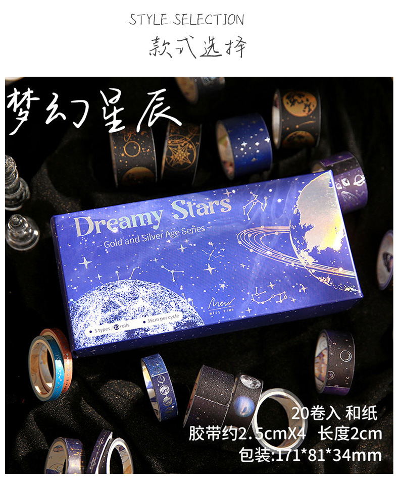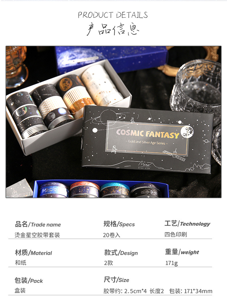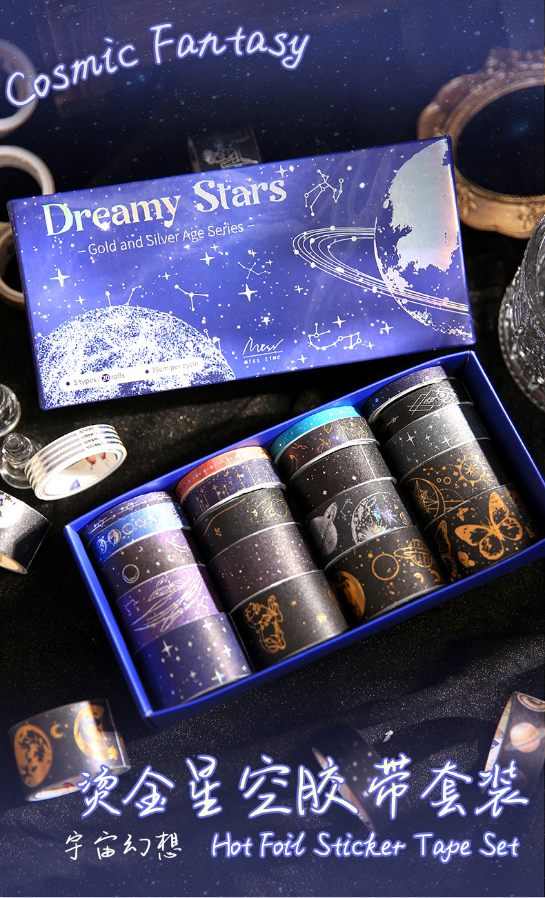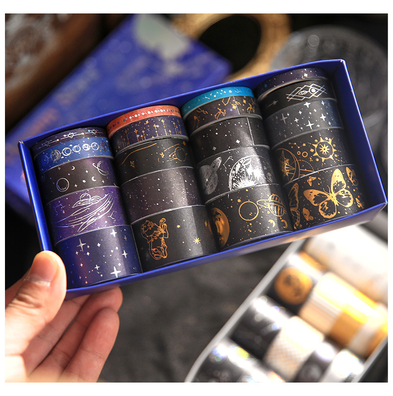 Diez conjuntos de cinta adhesiva estampada dorada estrella cosmológica fantasía retro decoración de material de paisaje cinta adhesiva 20 enrollamiento