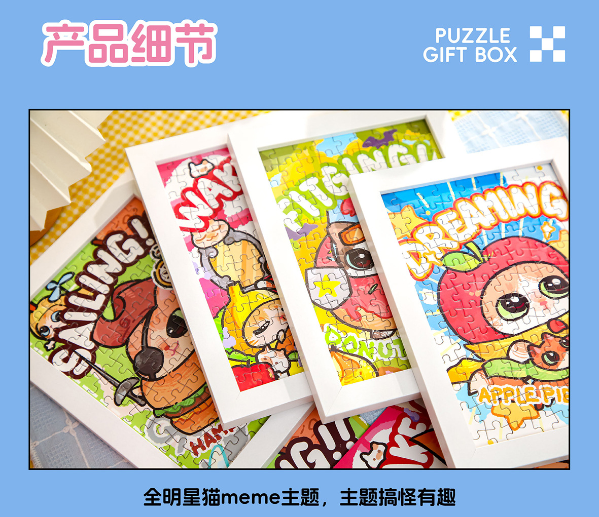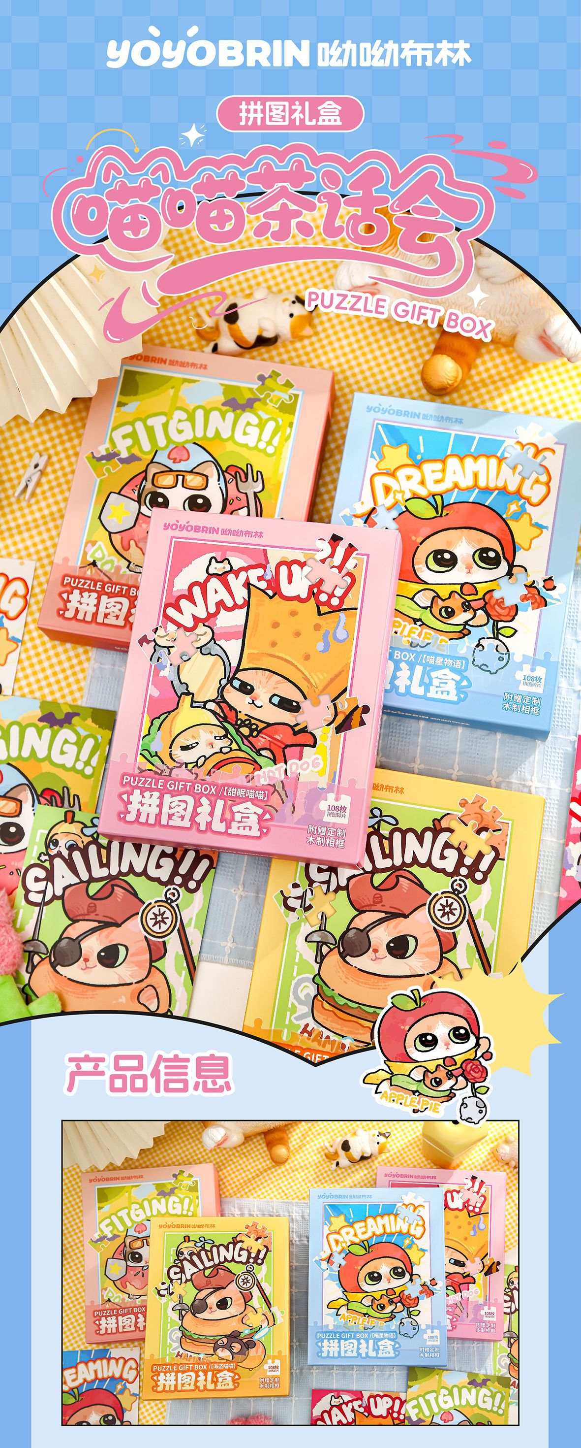 Youyou Brin Puzzle Caja de regalo Miau Miau Tea Party Departamento de estudiantes románticos de alto valor Diy Puzzles de escritorio Adornos