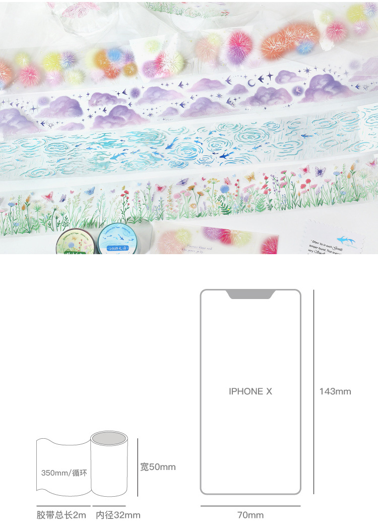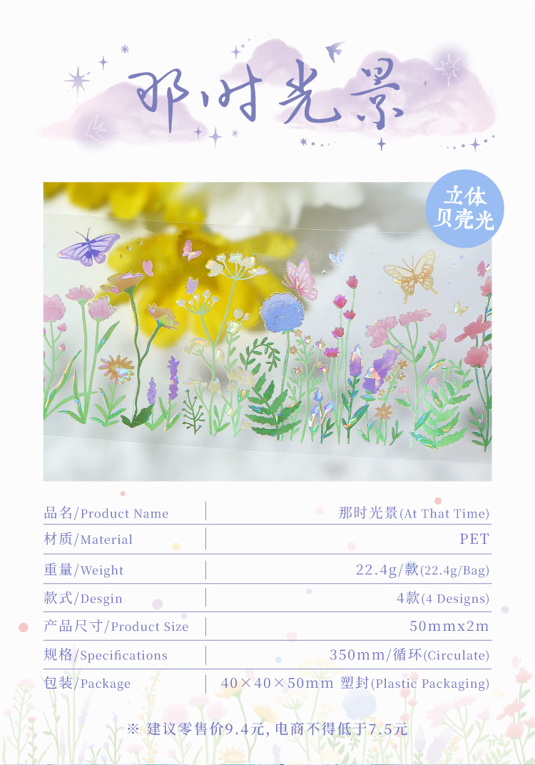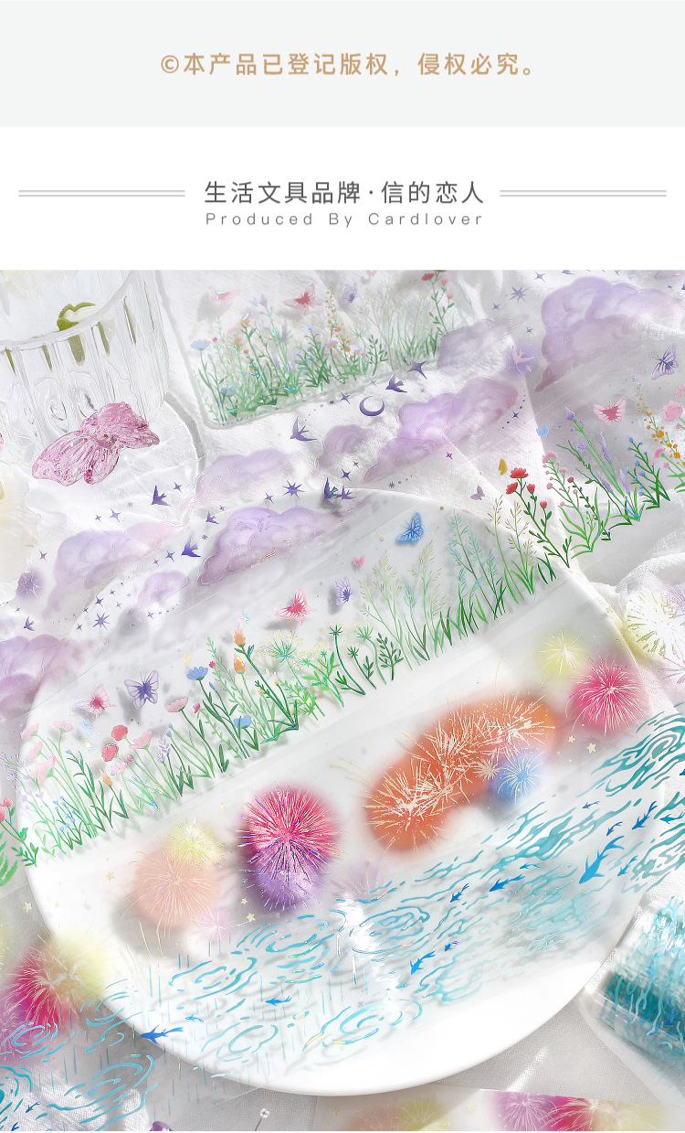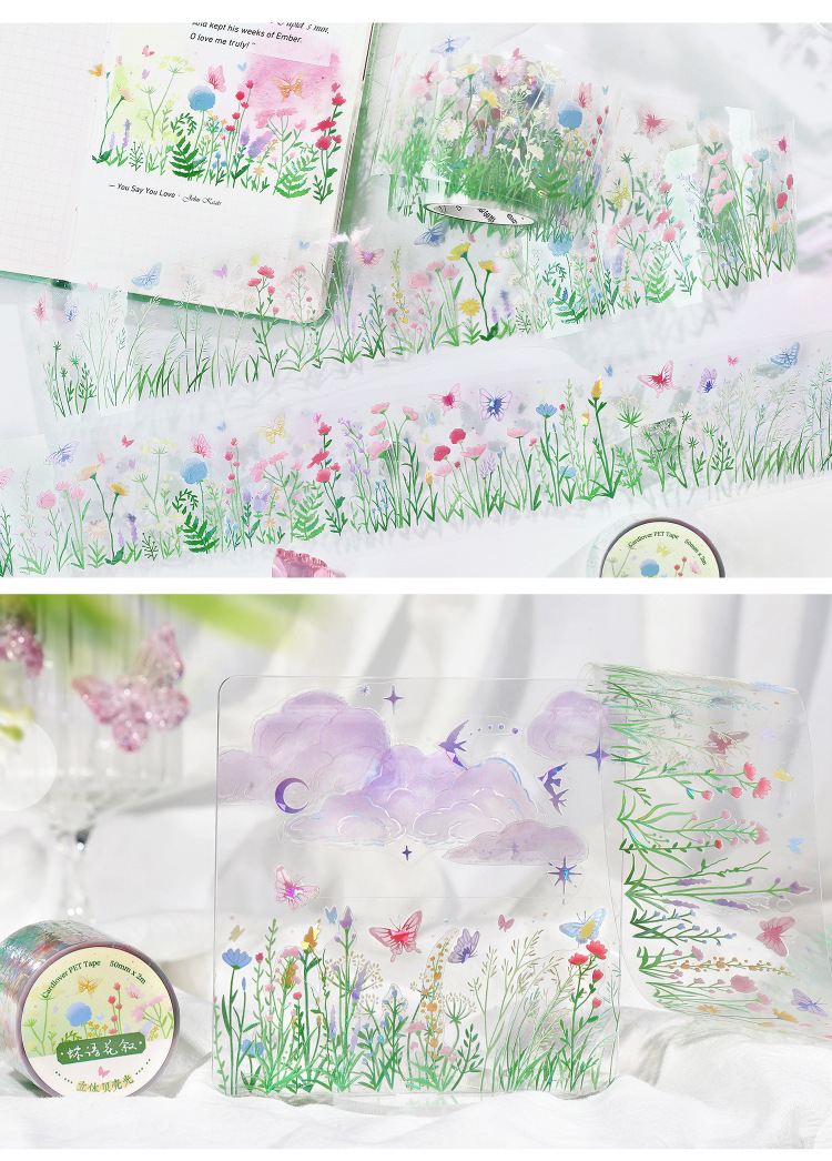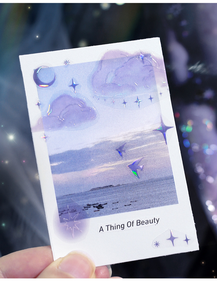 El amante de la carta Cinta PET de luz de concha tridimensional en ese momento, collage de paisajismo de bricolaje de la serie Guangjing