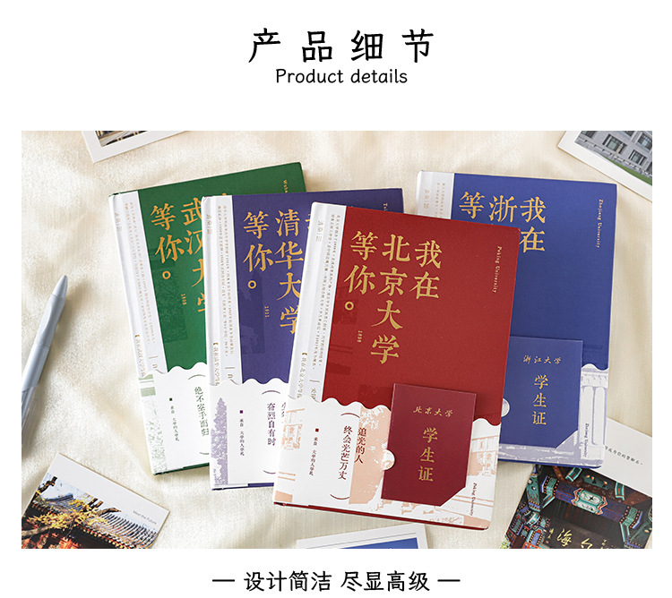 | Colores de la cubierta | Te espero en la Universidad de Pekín,Te espero en la Universidad de Tsinghua,Te espero en la Universidad de Wuhan,Te espero en la Universidad de Zhejiang |