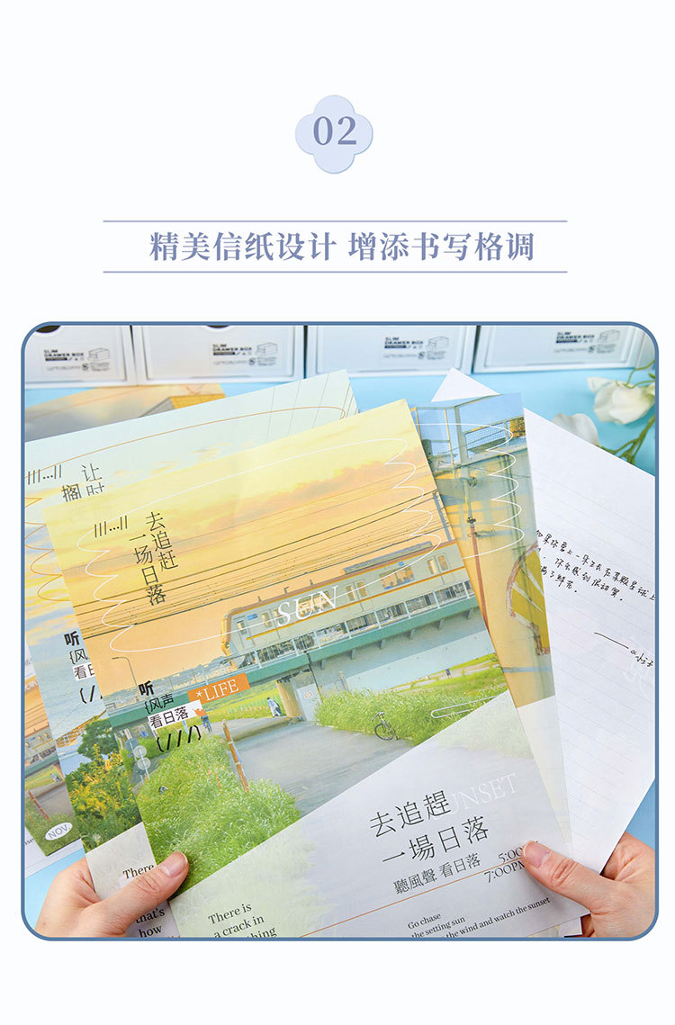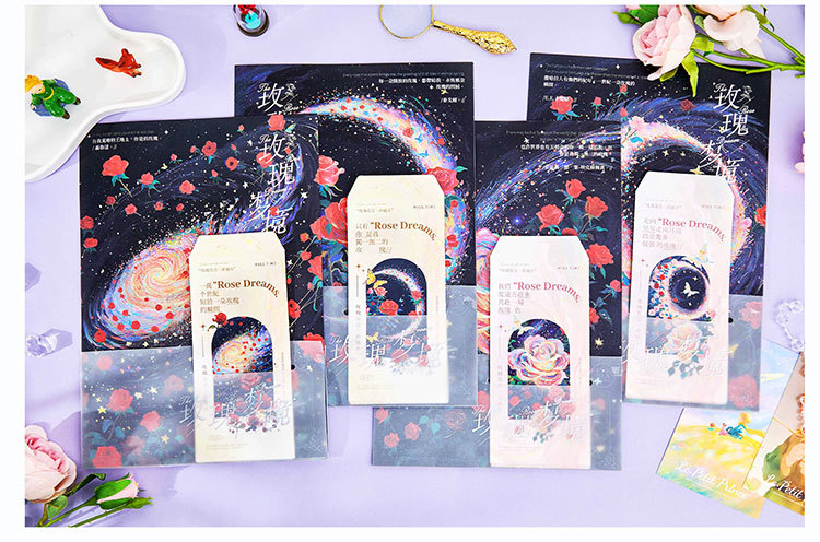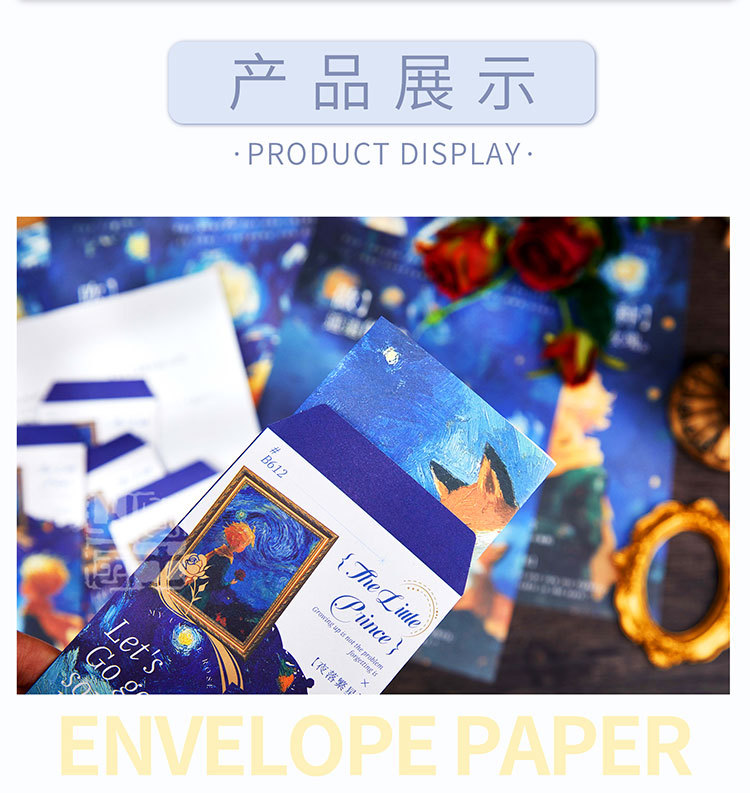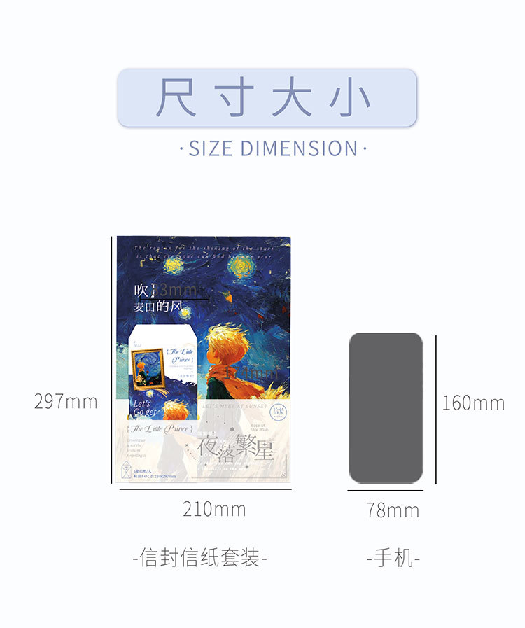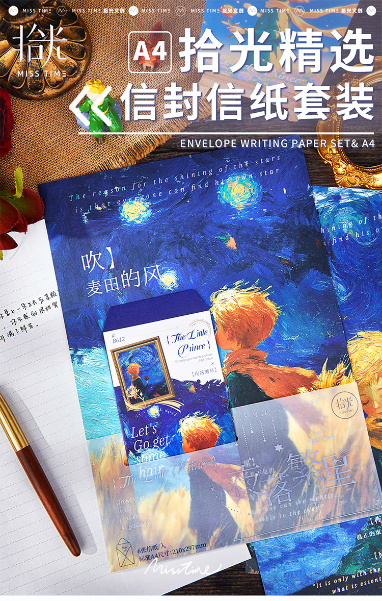 Recoger el juego de papel de carta de sobre A4, la noche que cae, la serie de estrellas, la ilustración original, el mensaje del estudiante, el sobre de papel de carta de bendición