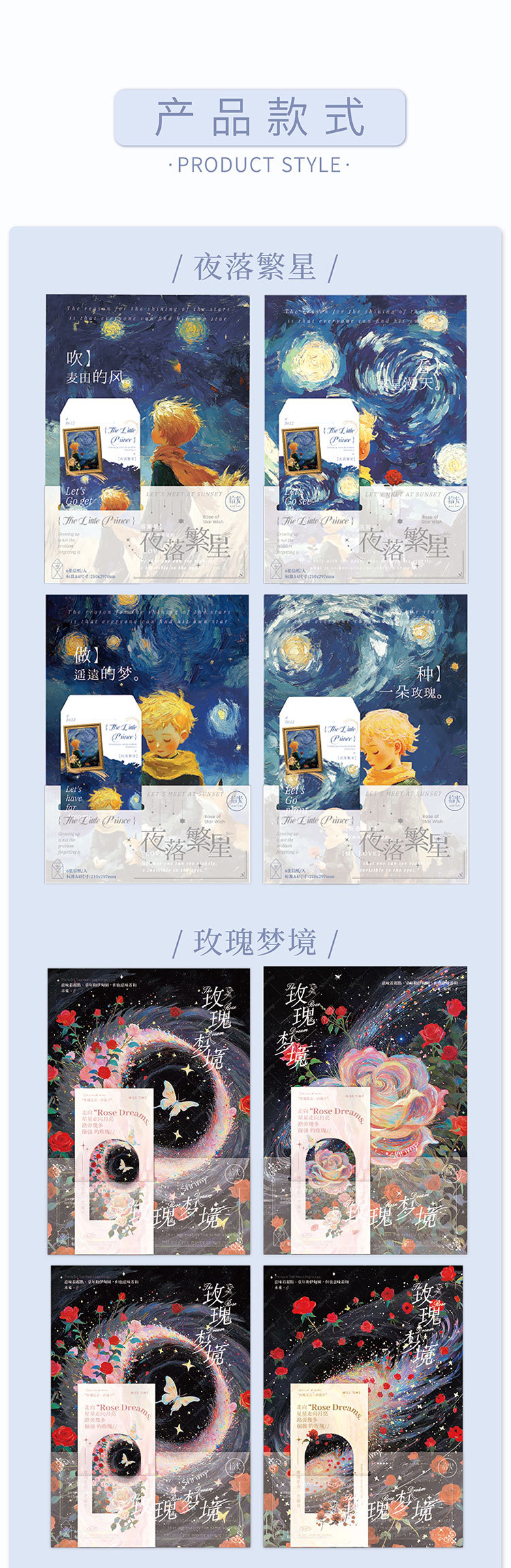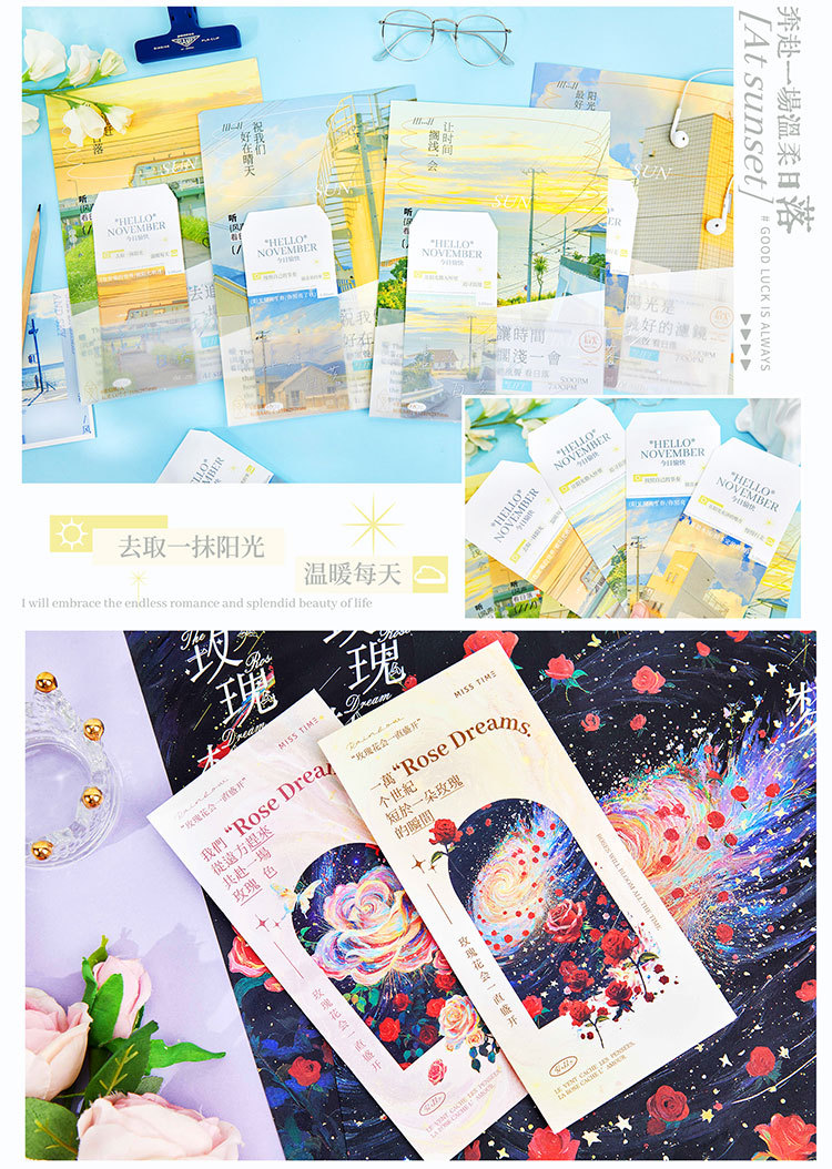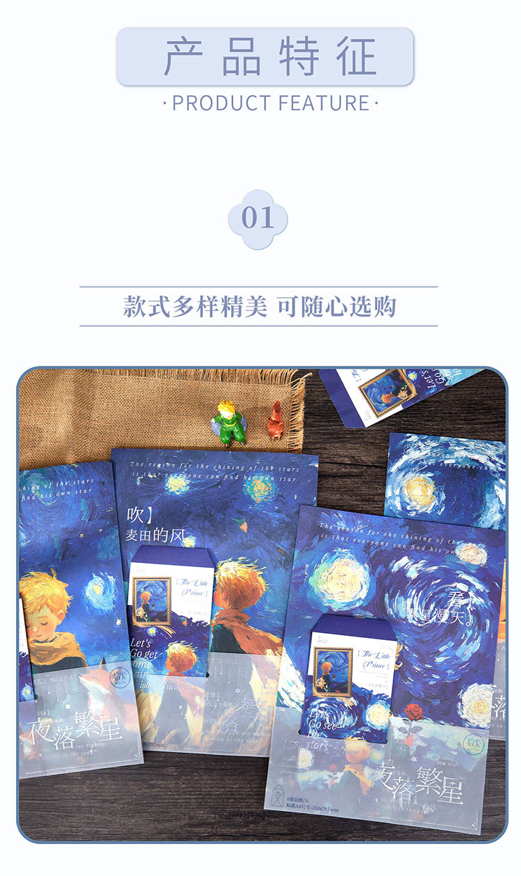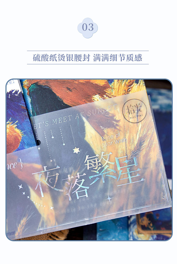 Recoger el juego de papel de carta de sobre A4, la noche que cae, la serie de estrellas, la ilustración original, el mensaje del estudiante, el sobre de papel de carta de bendición