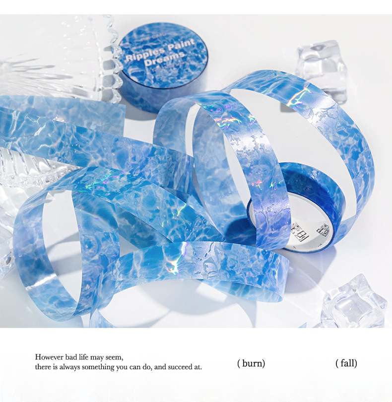 Mo tinta ondulada PET cinta adhesiva láser de plata Tide Heart de alta calidad material decorativo pegado cinta adhesiva base