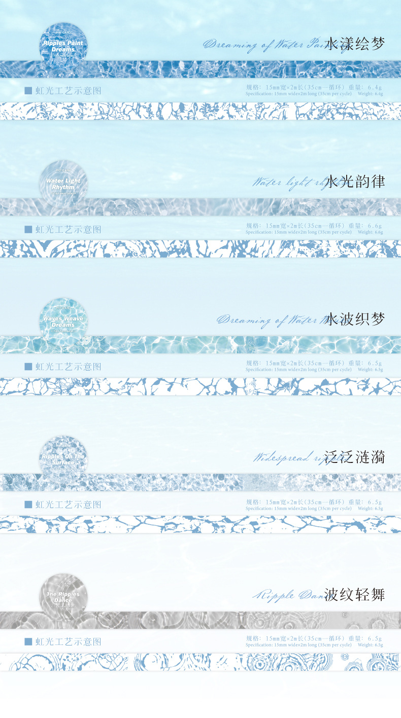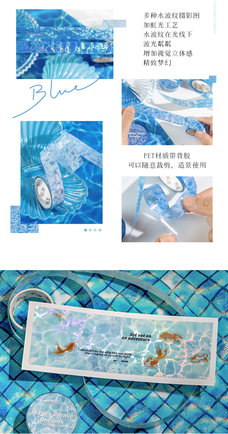 | Color | Las olas de agua son largas, las olas de agua pintan sueños, el ritmo de la luz del agua, las olas de agua tejen sueños, las ondas generales, las ondas ondulan y bailan suavemente. |