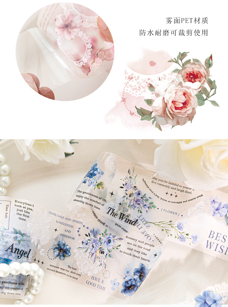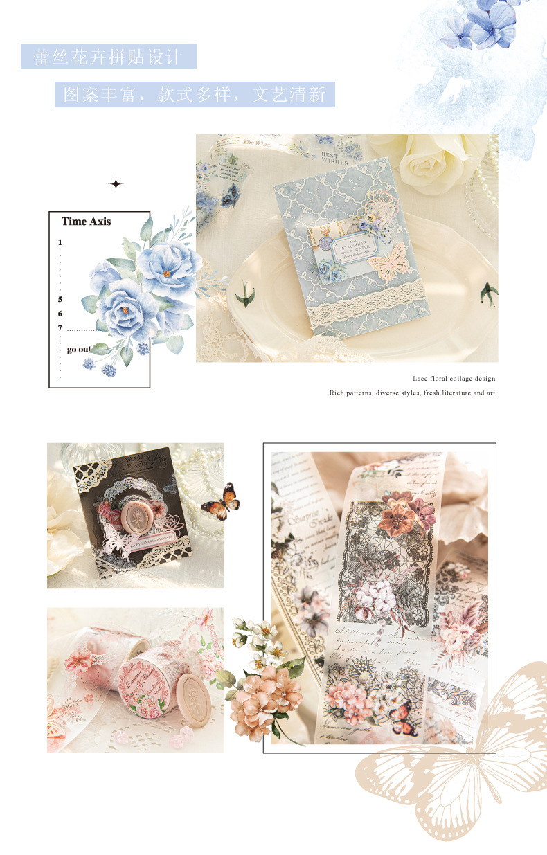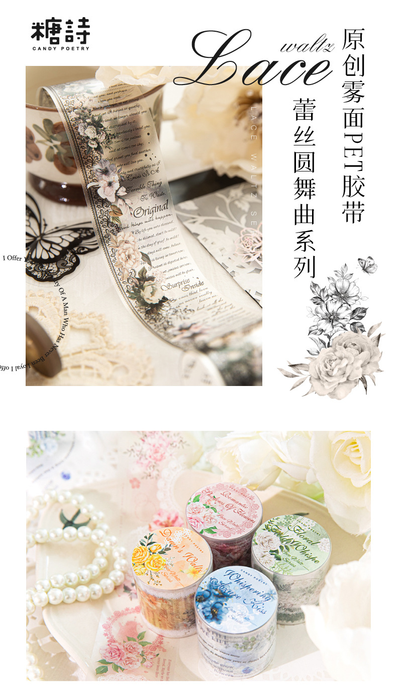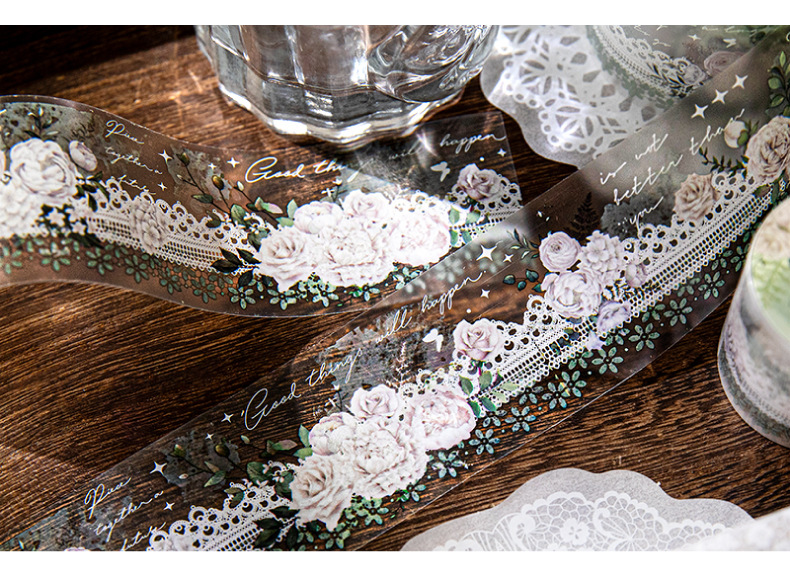 Azúcar poesía niebla PET tinta blanca encaje cinta de borde de la serie de danza de encaje tela de mano DIY cinta de decoración