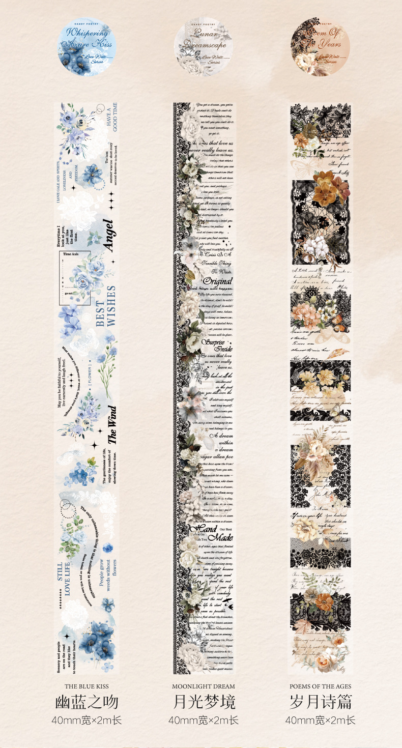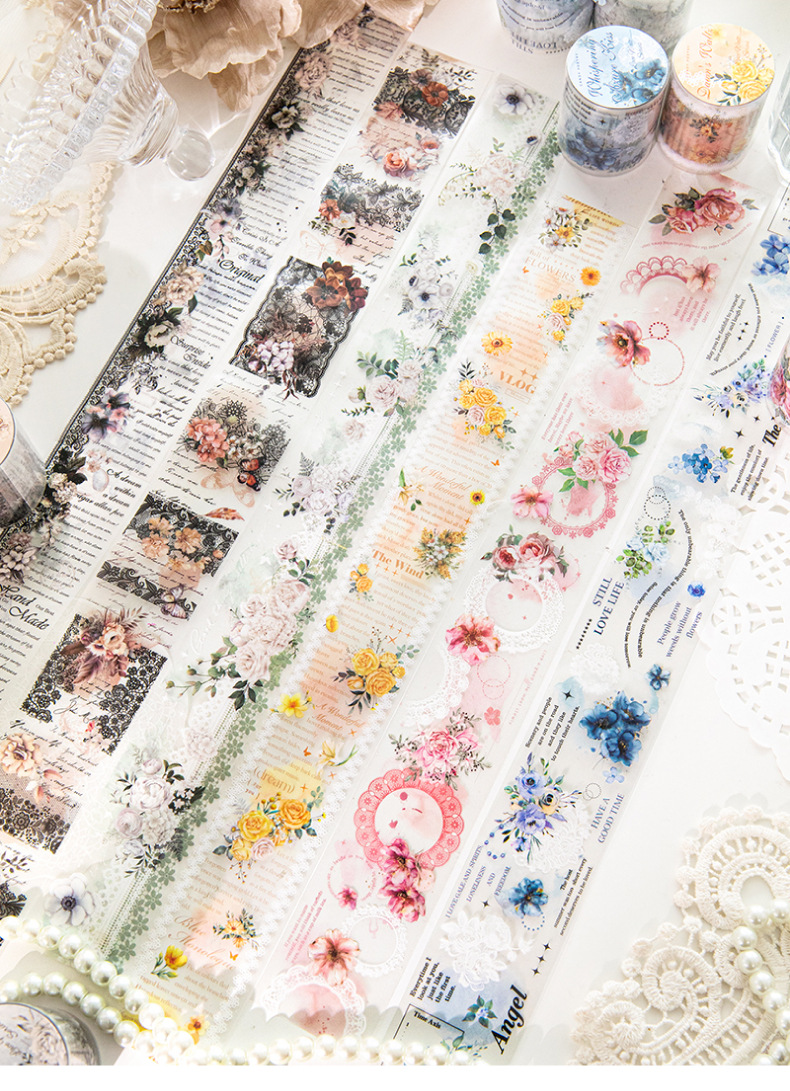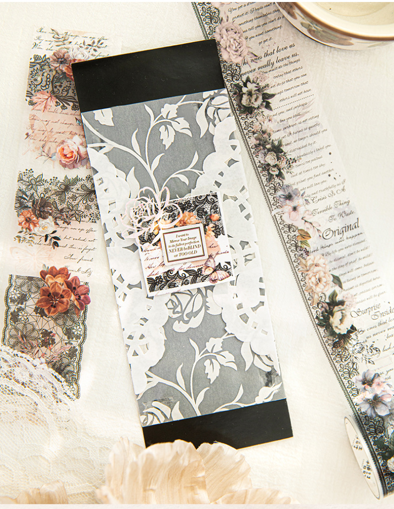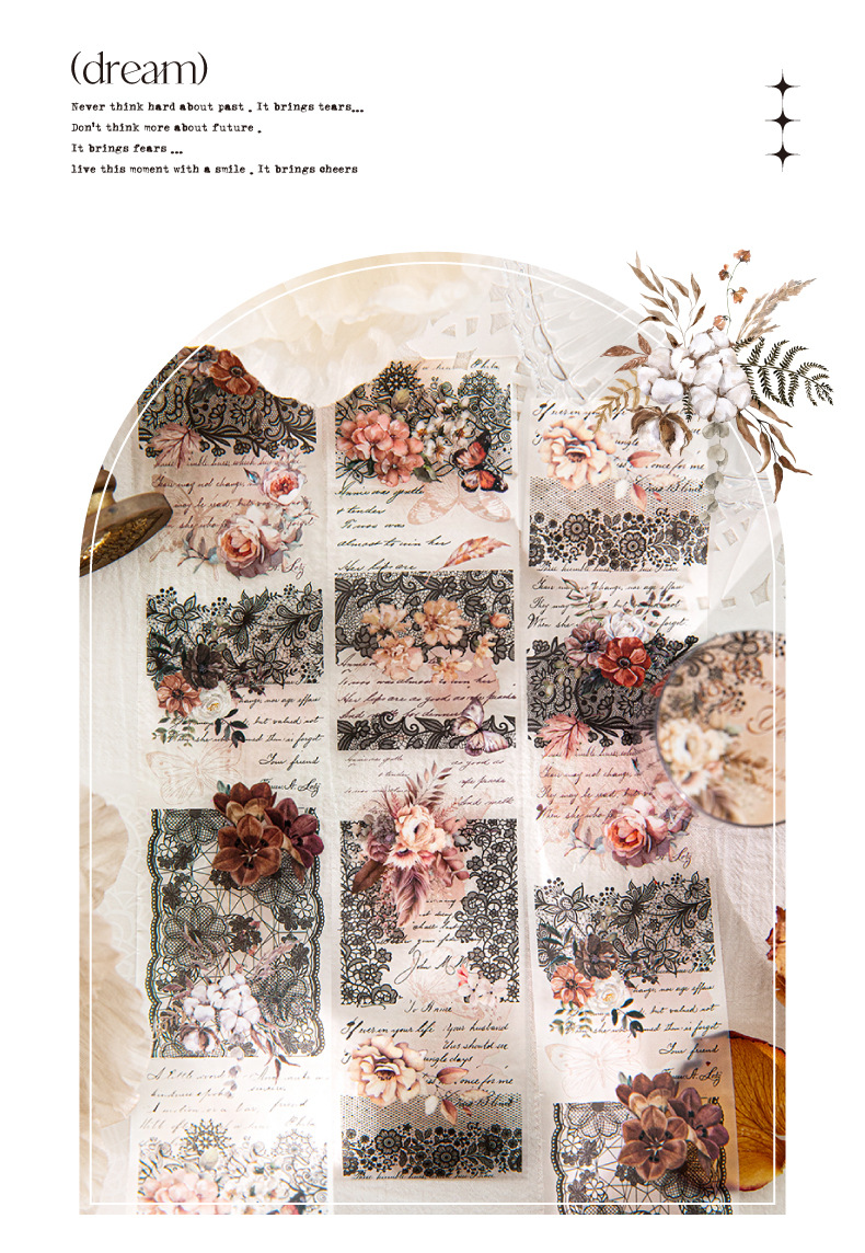 Azúcar poesía niebla PET tinta blanca encaje cinta de borde de la serie de danza de encaje tela de mano DIY cinta de decoración
