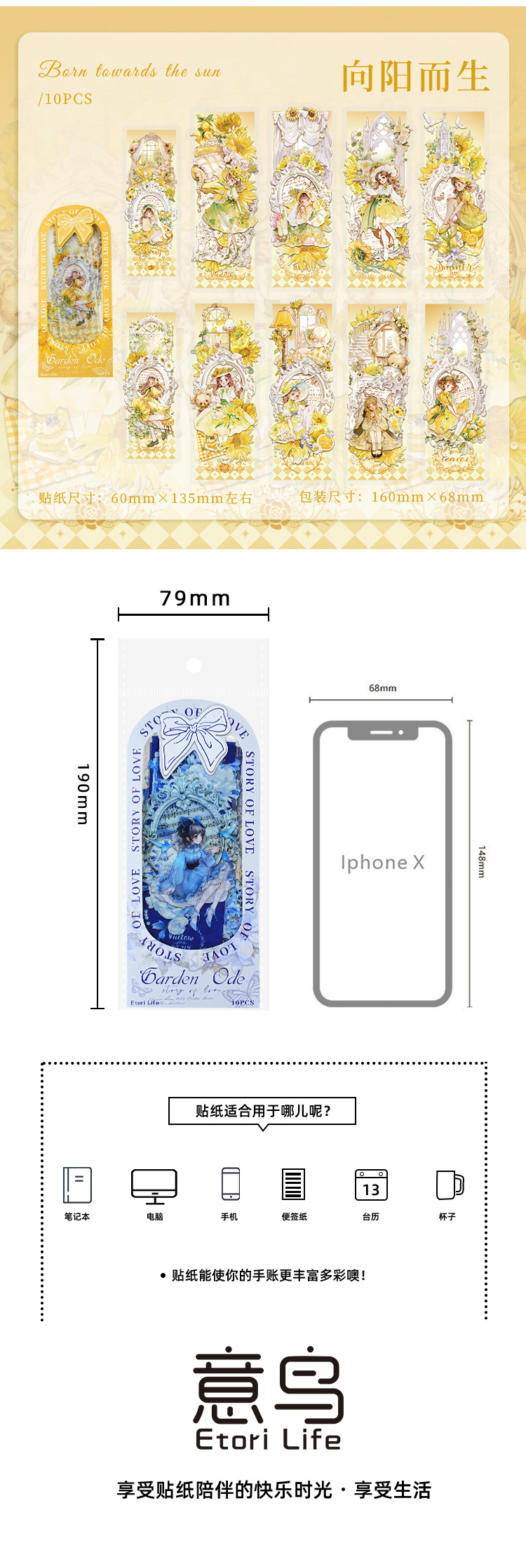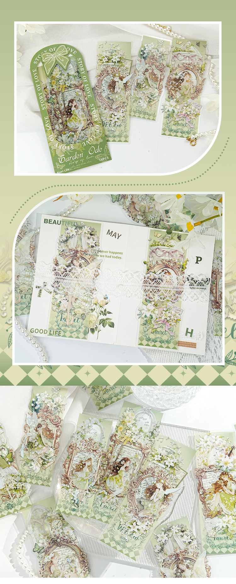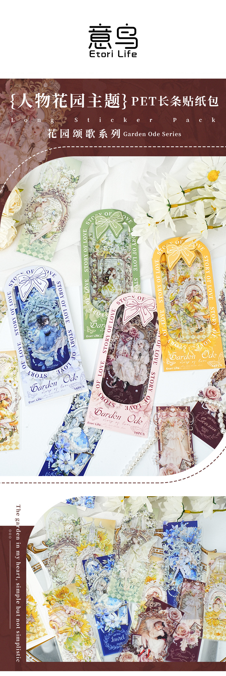 Paquete de pegatinas de pájaros italianos Garden Oda a las flores Anime Material de cuenta de mano Base Adhesivo decorativo Pet Paquete de pegatinas de película de corte