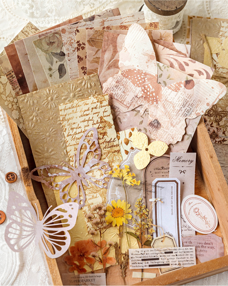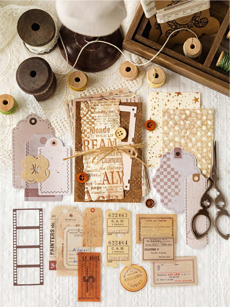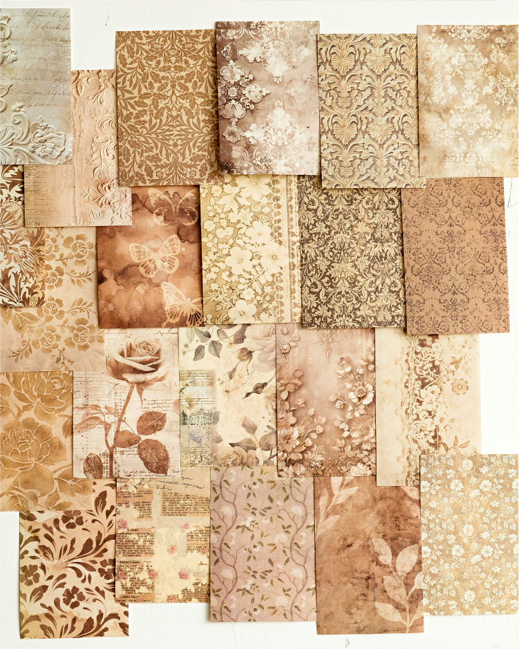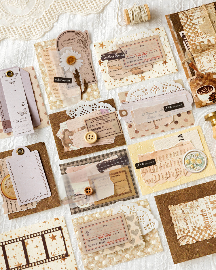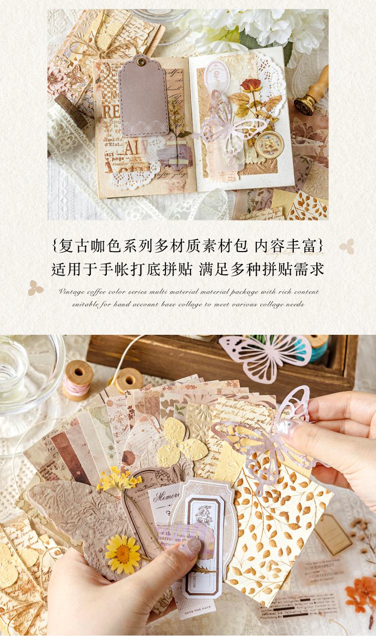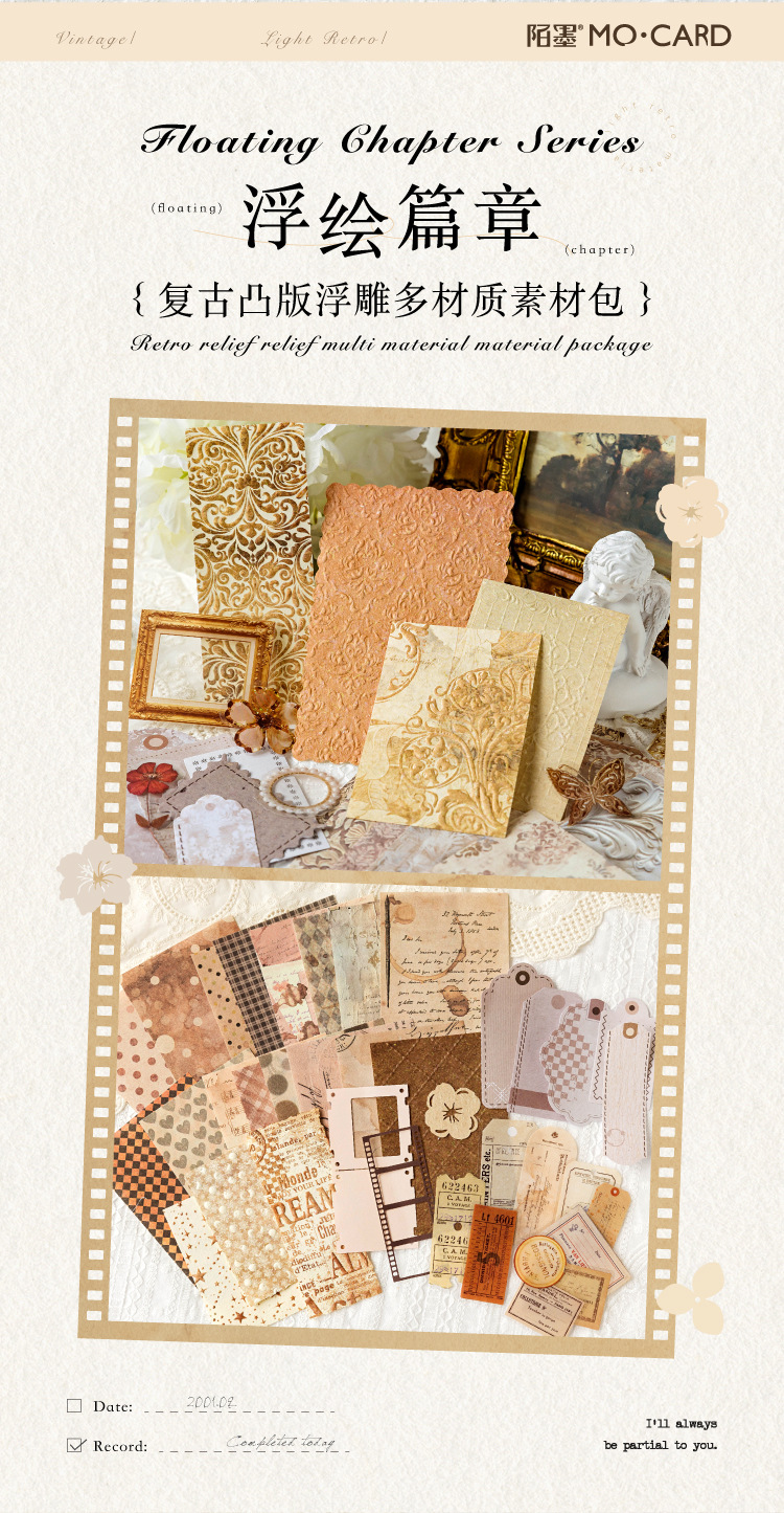 Bolso de material tipográfico Mo Mo, capítulo de pintura flotante, papel de material de collage decorativo en relieve en color café retro
