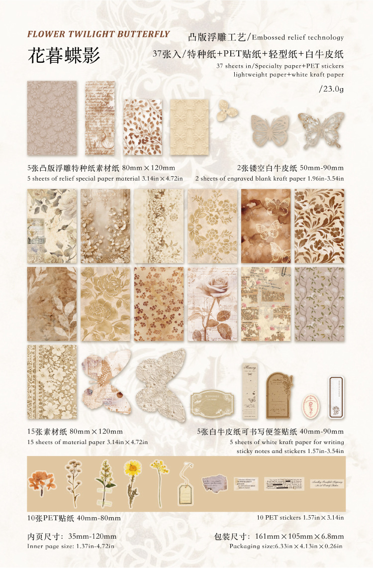 | Colores | Flor crepúsculo sombra de mariposa,Hora del café,Crepúsculo en relieve,Carta de flores de encaje |