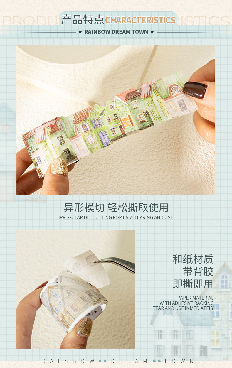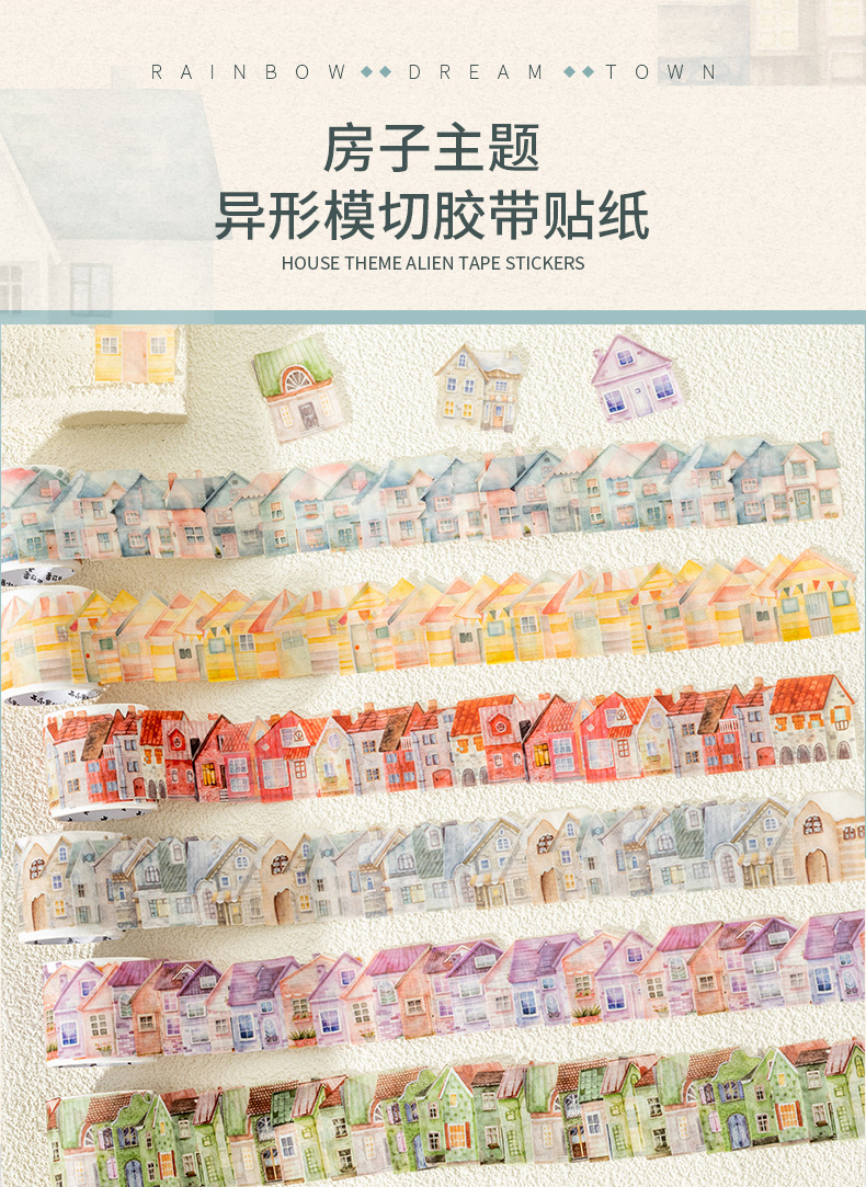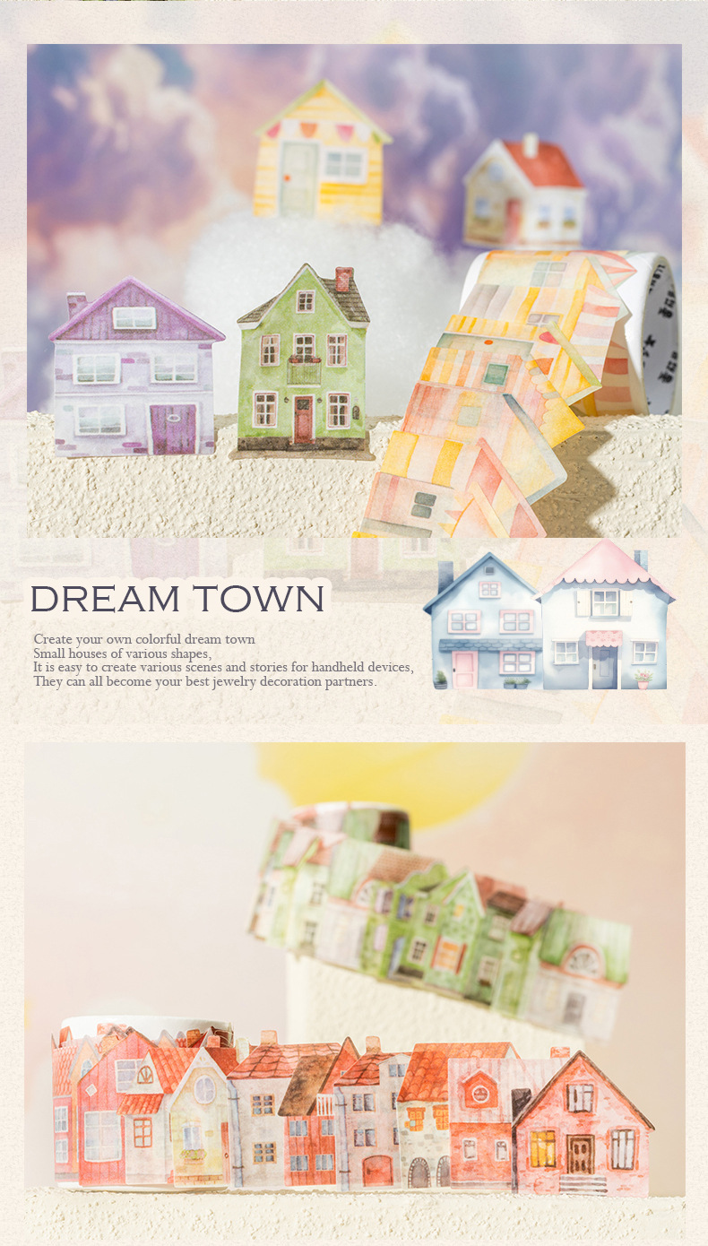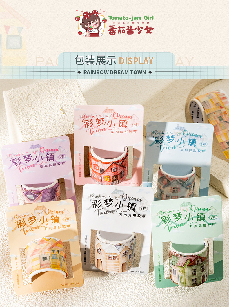 Ketchup Girl Extraordinario y cinta adhesiva de papel Dream Village serie de casa retrógrada tema de mano cinta adhesiva de paisaje