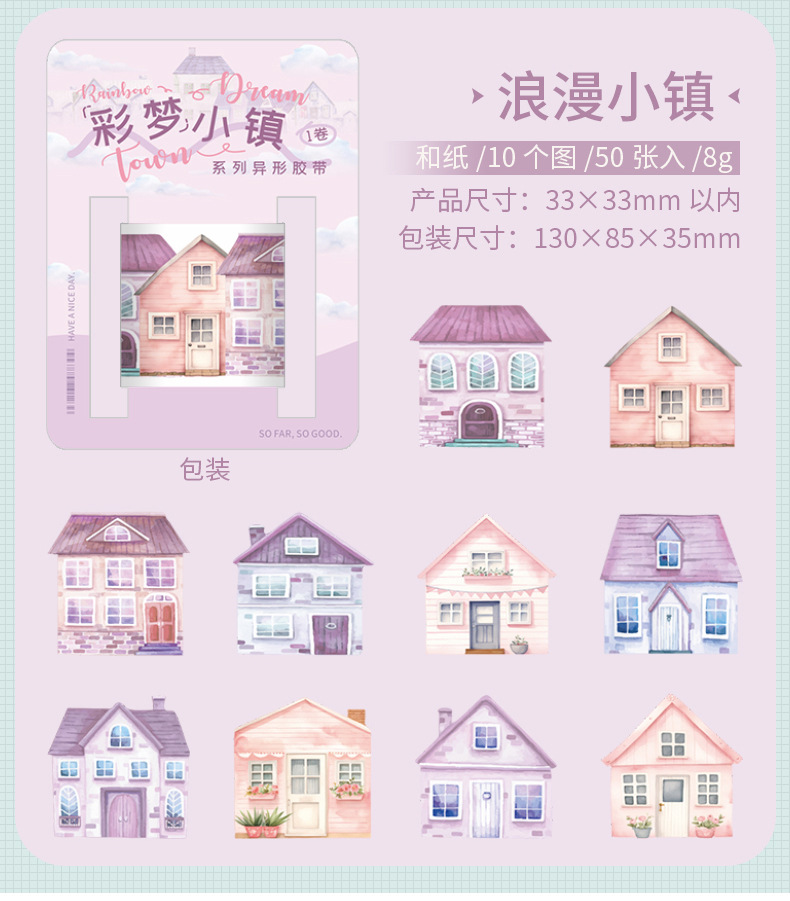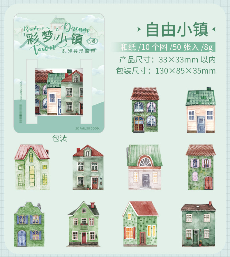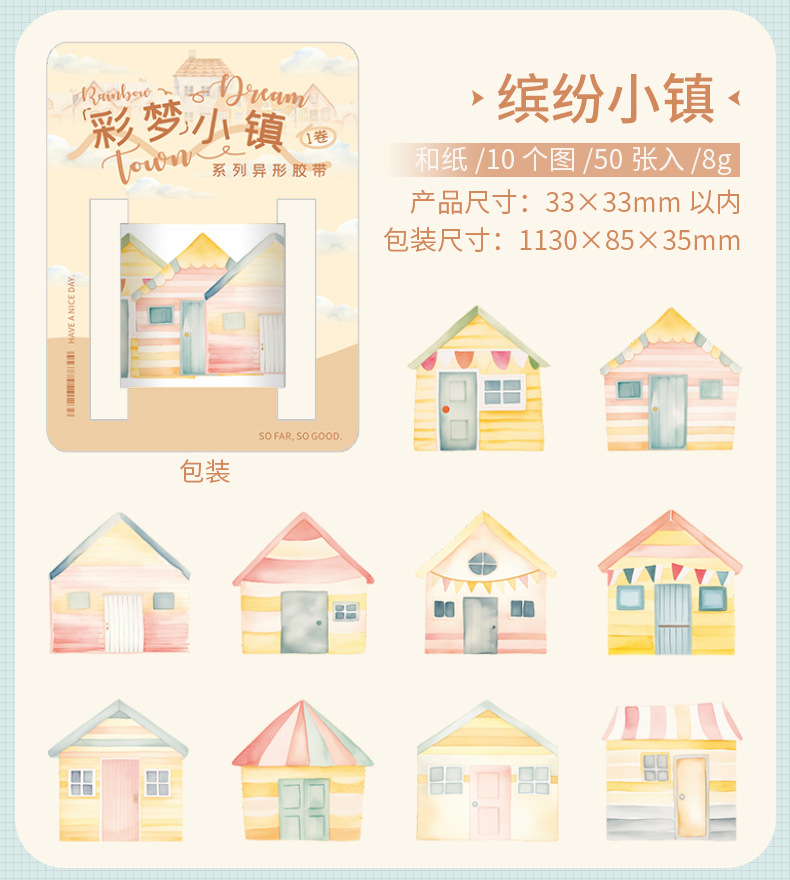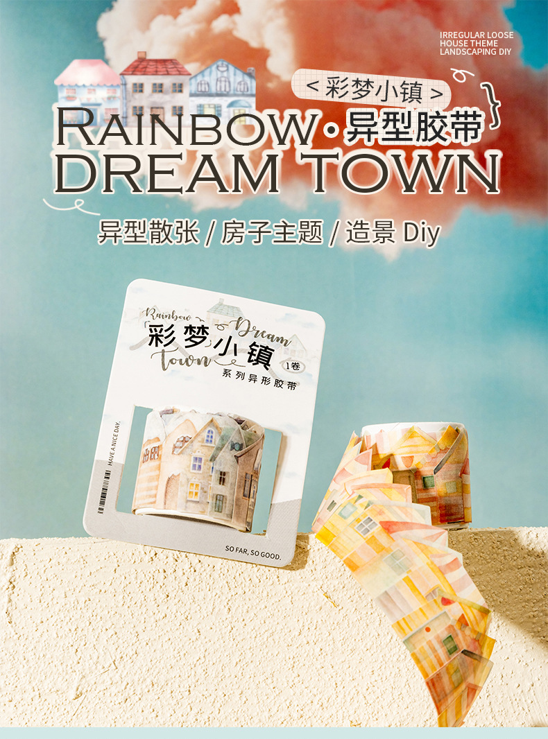 Ketchup Girl Extraordinario y cinta adhesiva de papel Dream Village serie de casa retrógrada tema de mano cinta adhesiva de paisaje