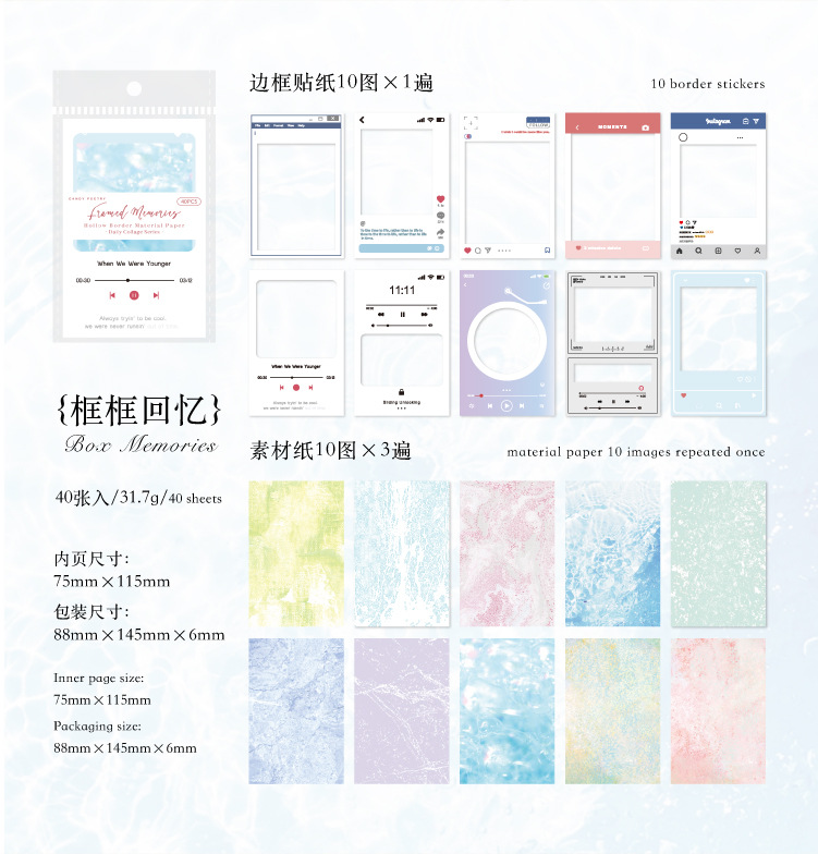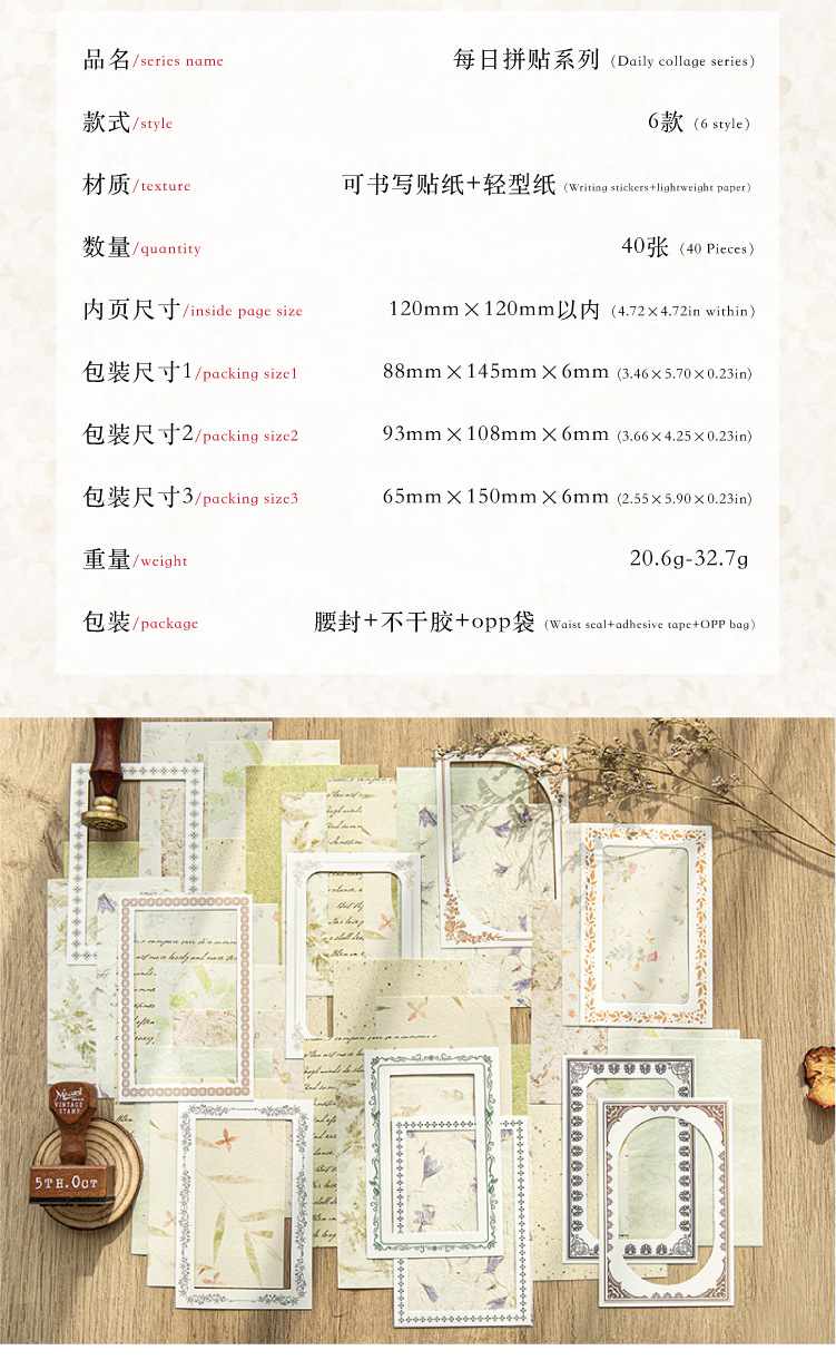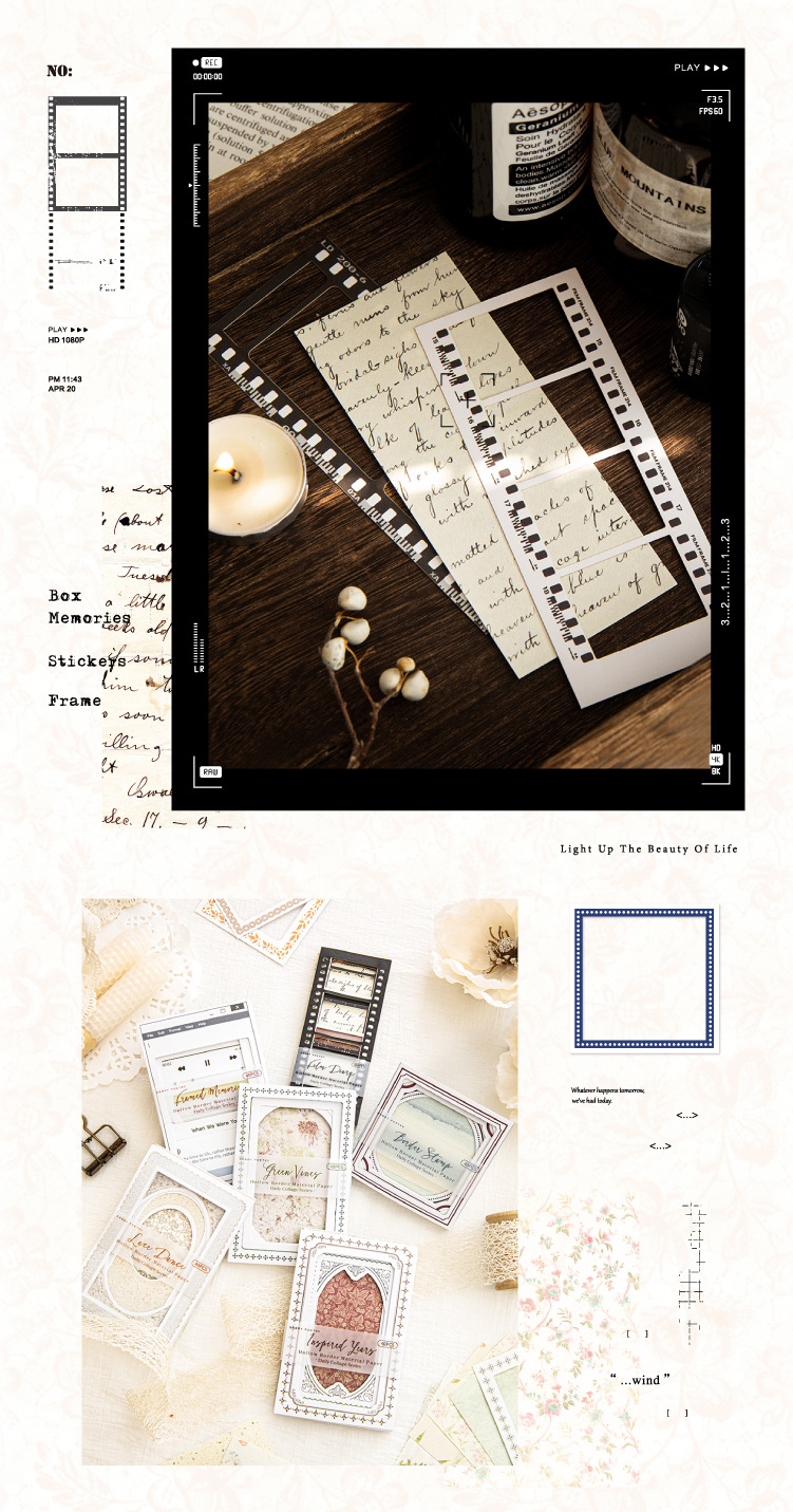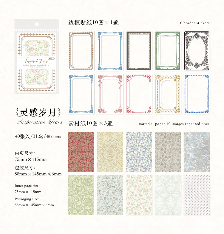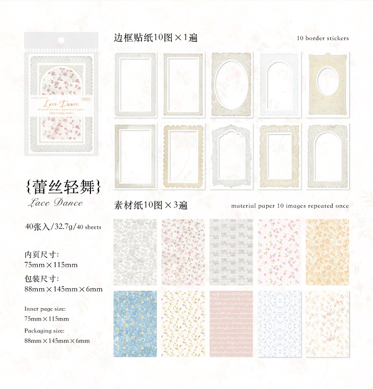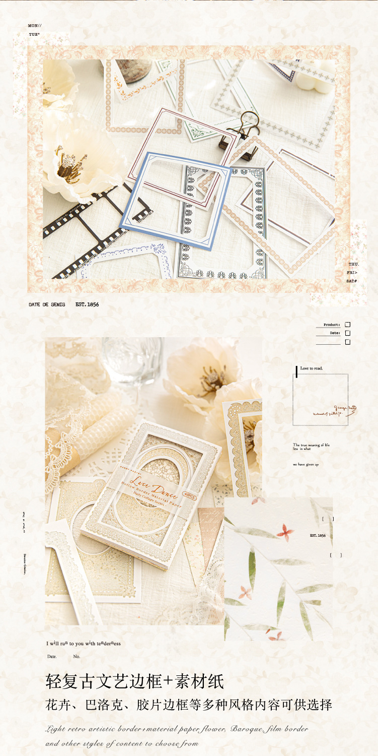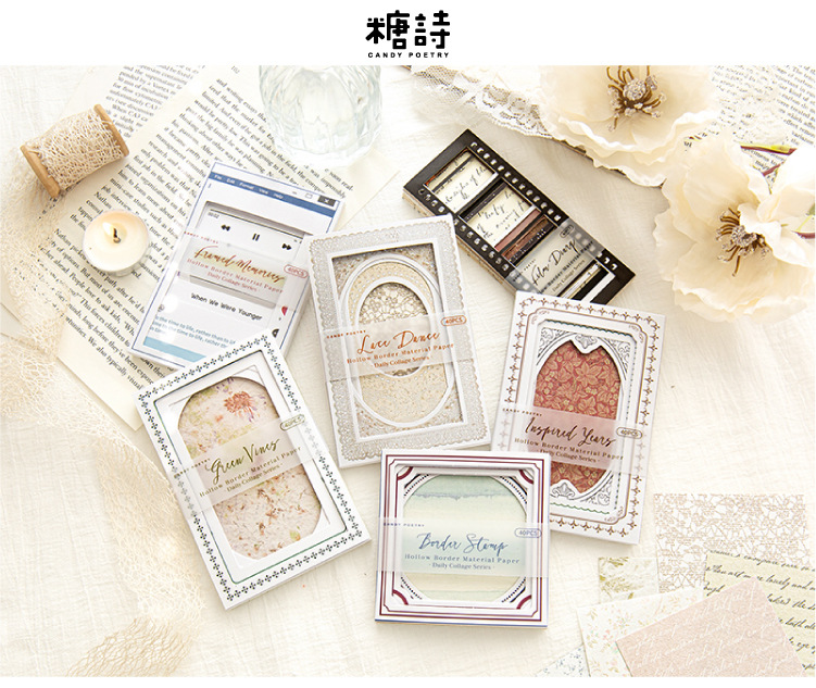 Azúcar poesía doble paquete de material de borde hueco collage diario serie de decoración de papel de base papel de material